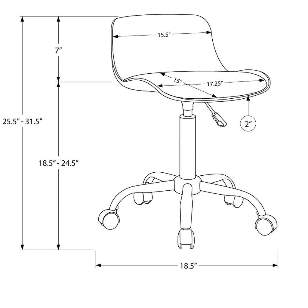 This black low-back chair pairs a kid-sized, extra-wide curved backrest with soft seat padding for cloud-like comfort during homework or gaming. The 360° swivel, smooth-rolling hooded casters, and easy-touch height lever let kids glide from desk to bookshelf and dial in the perfect fit year after year. Quick assembly with illustrated instructions and included hardware means the only thing left to add is imagination.