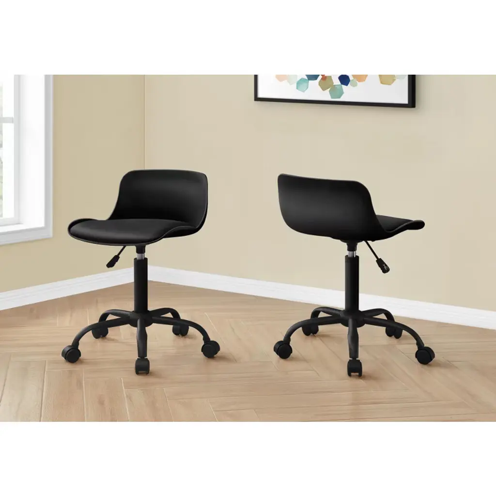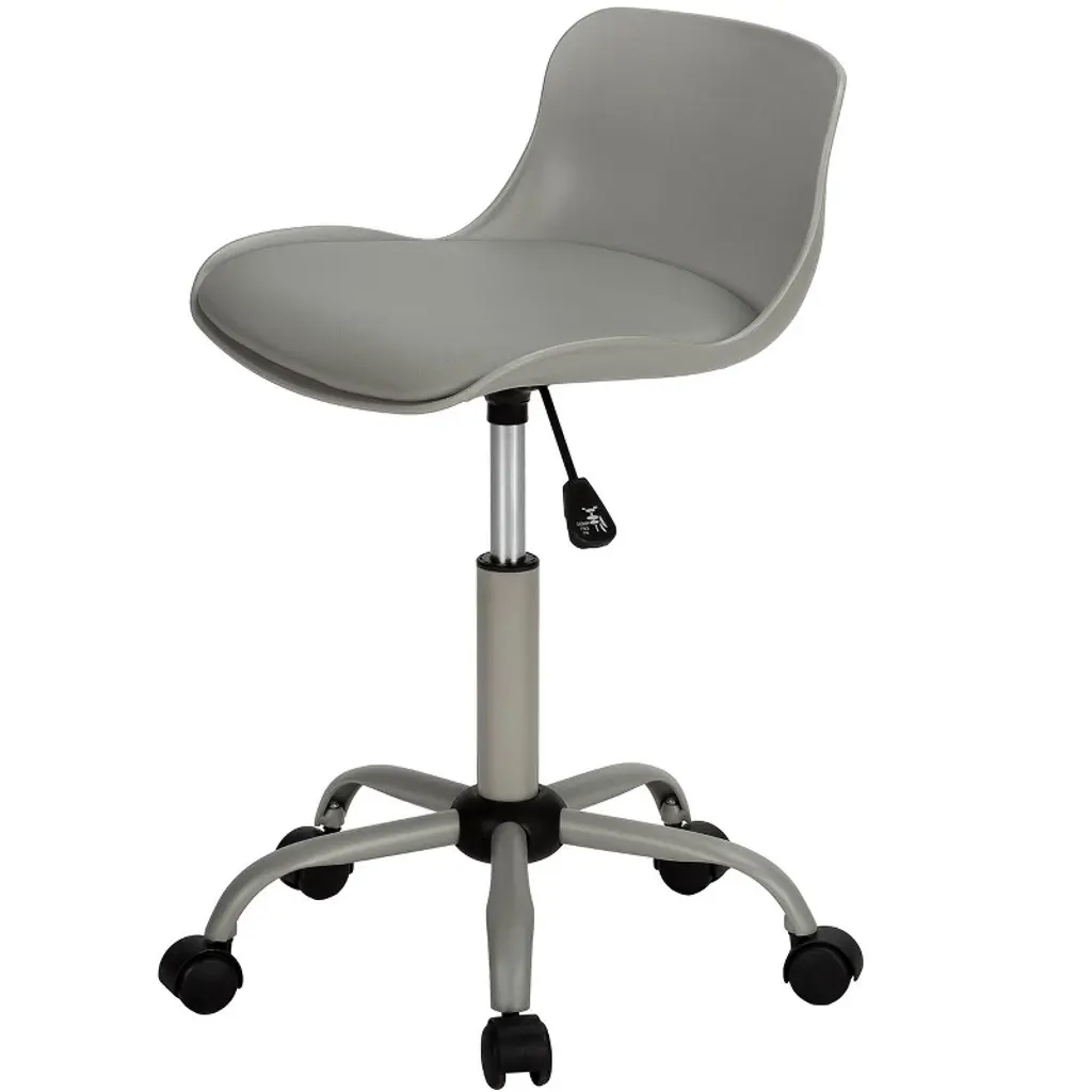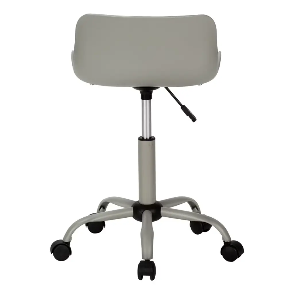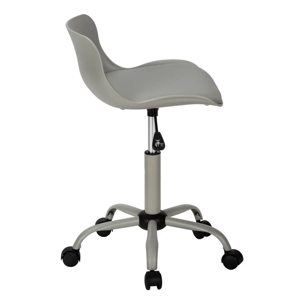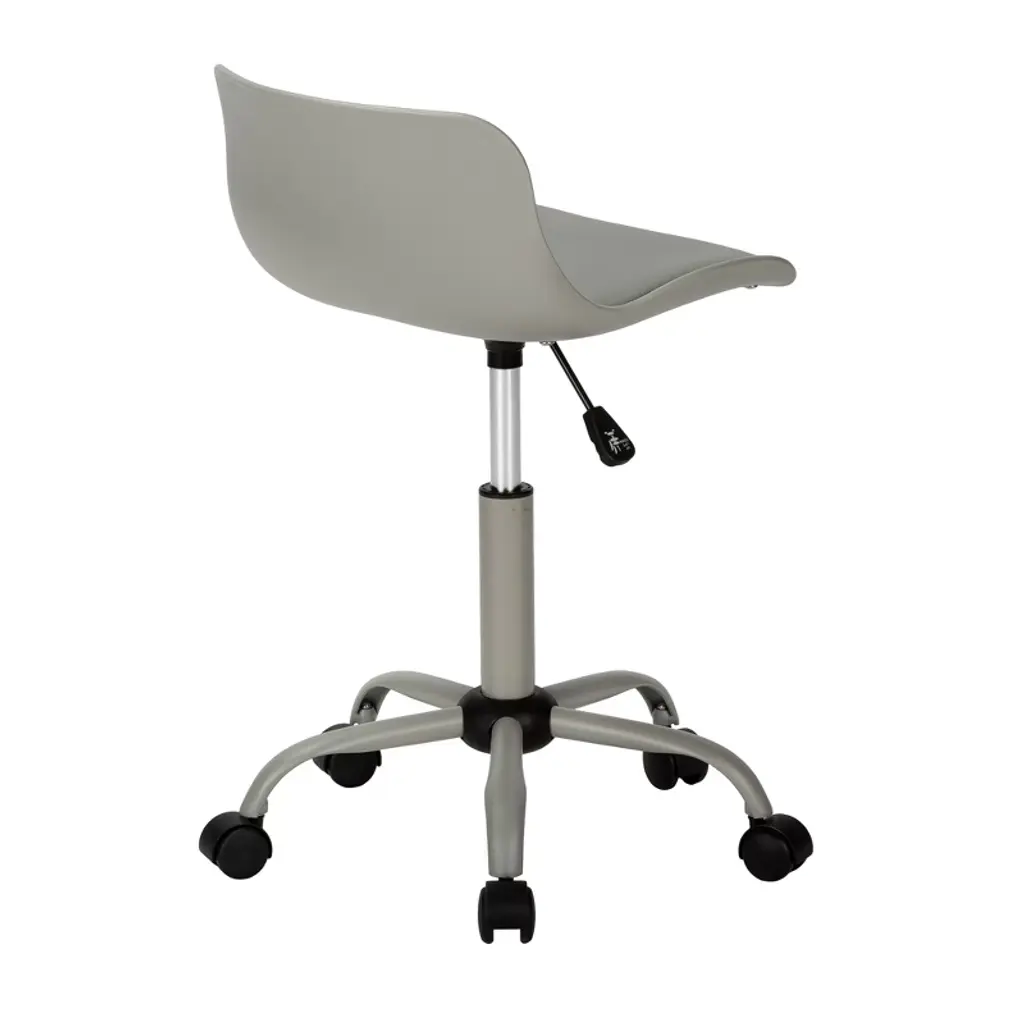 This gray low-back chair pairs a kid-sized, extra-wide curved backrest with soft seat padding for cloud-like comfort during homework or gaming. The 360° swivel, smooth-rolling hooded casters, and easy-touch height lever let kids glide from desk to bookshelf and dial in the perfect fit year after year. Quick assembly with illustrated instructions and included hardware means the only thing left to add is imagination.