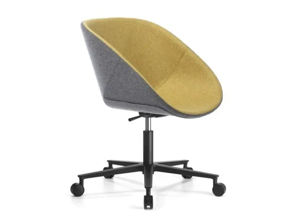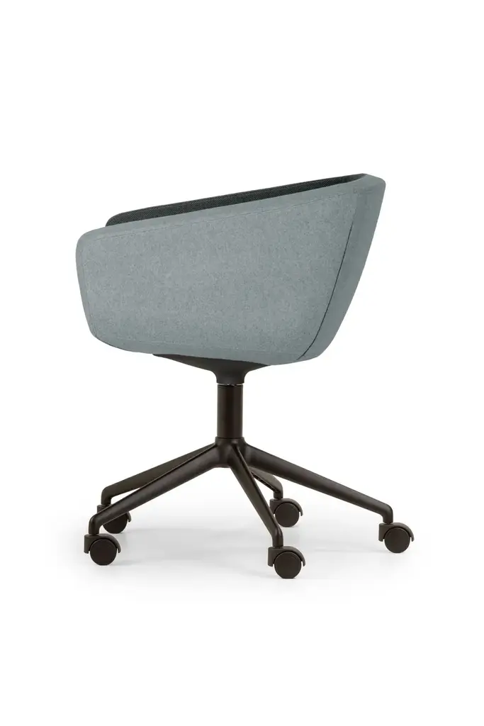 Arca Mini is a swivel office chair upholstered and covered in fabric with a trestle base on wheels.Coming from Studio Orlandini’s inspiration, Arca defines a new concept of armchairs and chairs for lounges and waiting areas.It is available in 3 declinations, which can be combined to many base typologies. The family consists of lounge, small and mini versions to meet all the needs of seats for different types of environments, from the fast waiting room to the relaxation area, from the informal meeting area to the conference table, while maintaining stylistic consistency between the environments. The ability to play with colours thanks to the two-tone coating is the peculiarity shared by all the models in the collection, and combined with the numerous types of bases allows a great opportunity for customization.