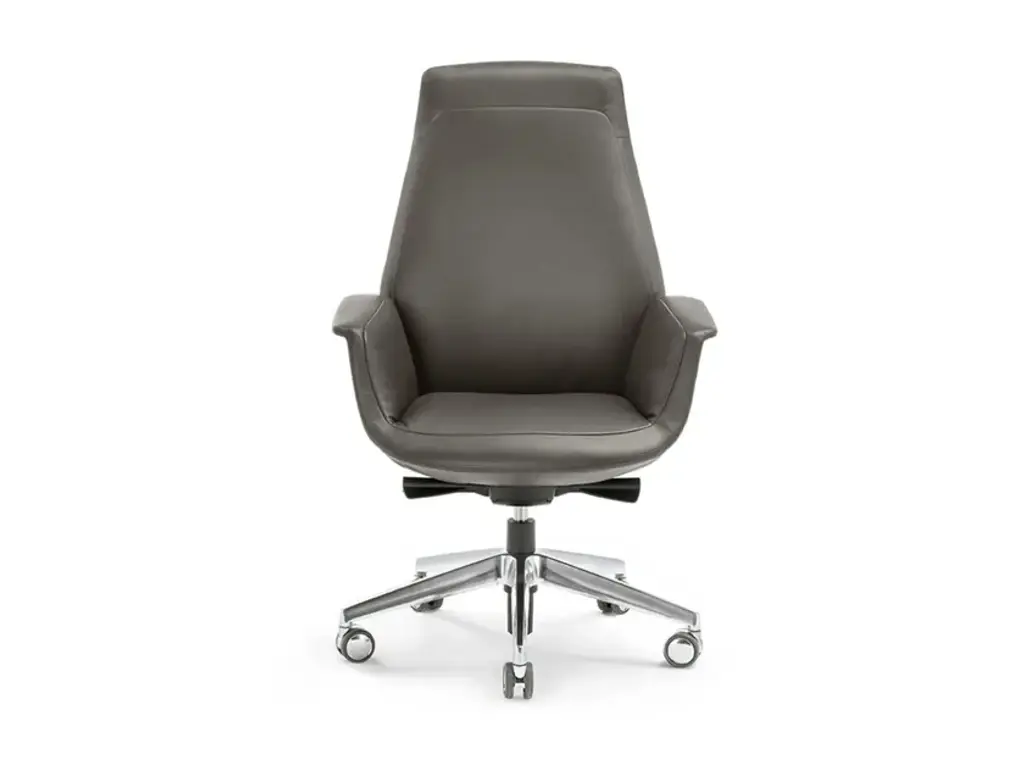 The new Archibald Task Chair seats bring a touch of contemporary elegance to the world of home offices. The result of signifi cant ergonomic research, both the Archibald Managerial and the Archibald Executive are designed to accompany the body in all its movements and provide proper support when at the desk or computer.Archibald Task has an aluminium base with a swivel mechanism, which can be fitted with different types of castors or swivel slides, and is available in several finishes. The Executive version features a higher backrest for greater comfort. Upholstery is in Pelle Frau® leather or fabric.The office chair is equipped with: seat height adjustment by means of a gas spring; tilt and sway adjustment of the backrest and seat, with the possibility of partial adjustment of the swaying force to follow the body's movements; 360° rotation around its own vertical axis.