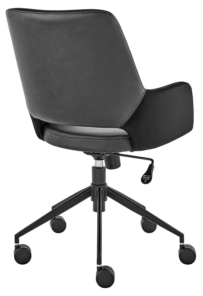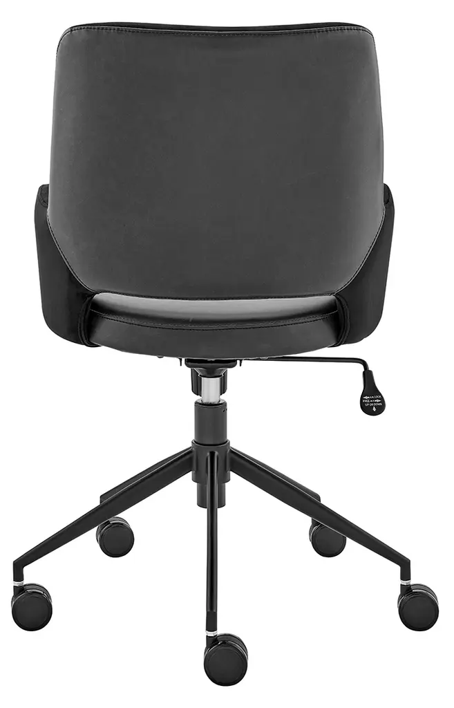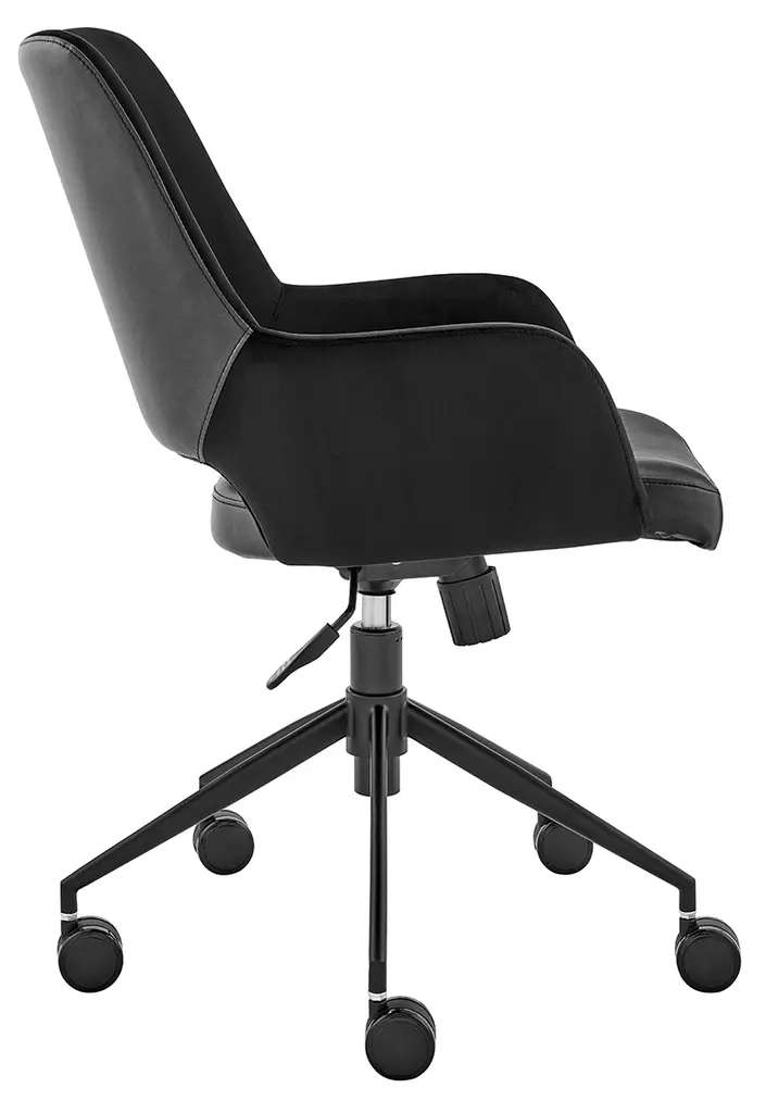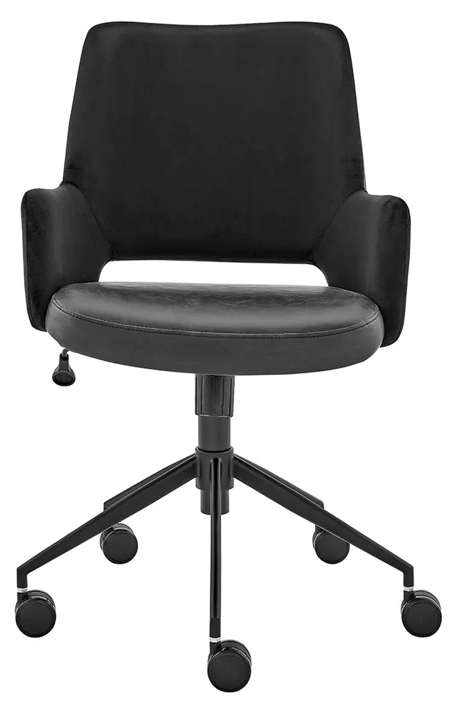 As handsome as it is practical and comfortable, this amply cushioned desk chair pairs a faux leather seat with velvet arms and back. The seat height is adjustable, and casters make the chair easy to move without damaging your floors.