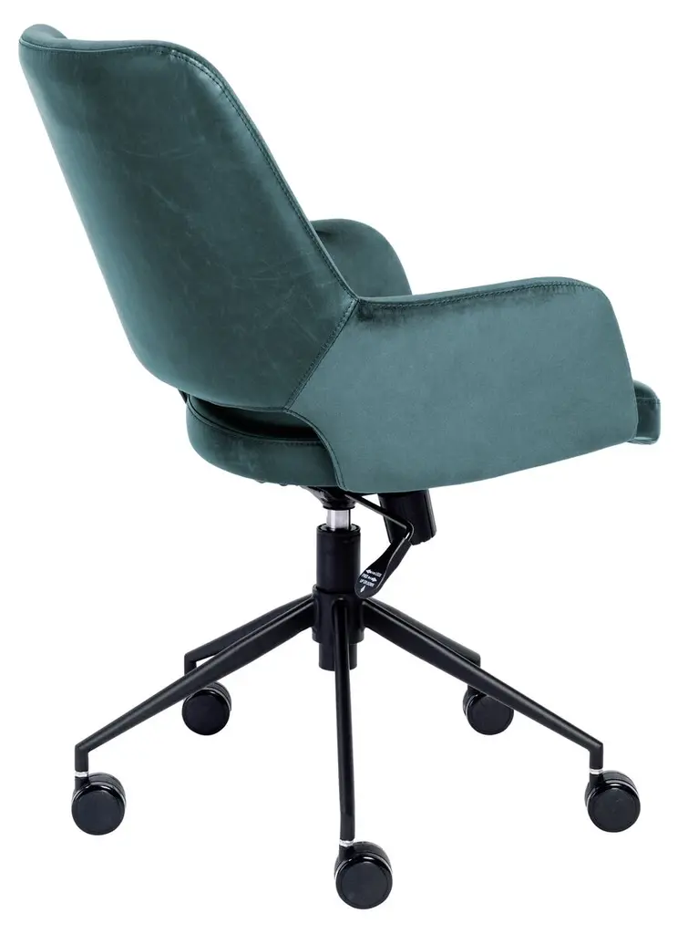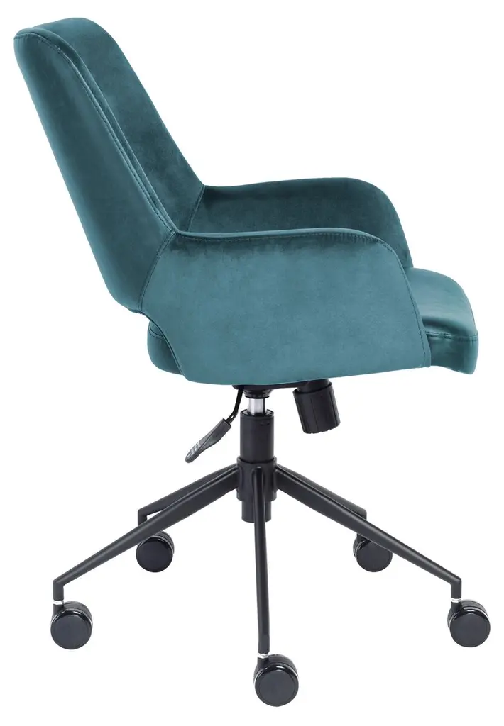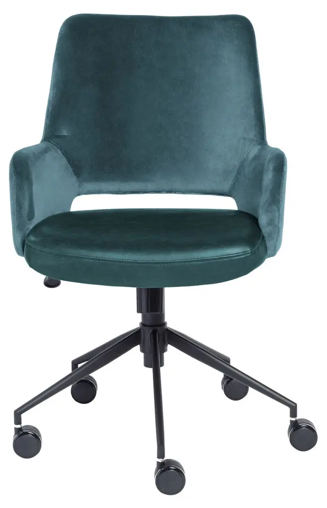 As handsome as it is practical and comfortable, this amply cushioned desk chair pairs a faux leather seat with velvet arms and back. The seat height is adjustable, and casters make the chair easy to move without damaging your floors.