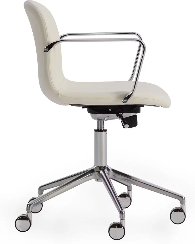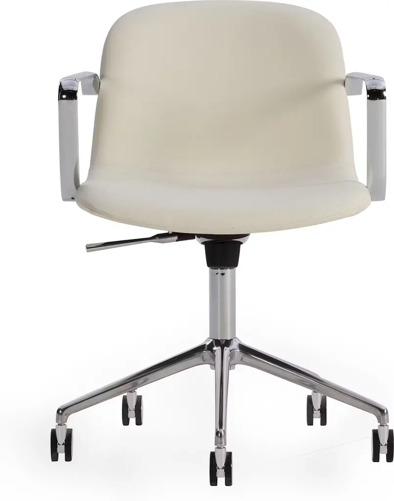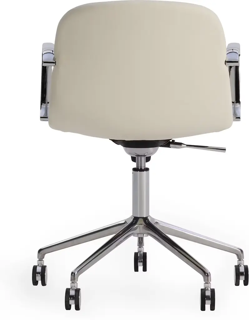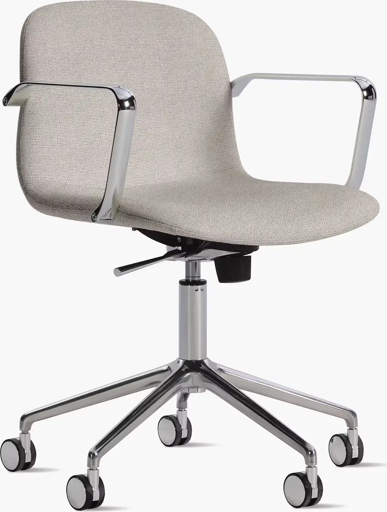 With its comfortable, 3-D molded silhouette and height-adjustable swivel base, the elegant Bacco Task Chair (2022) is equally at home in a workspace or dining area. Part of our popular Bacco Collection, this inviting desk chair has a wide, gently curved seat, low back, and sleek armrests. Generous padding adds coziness and comfort for productive workdays or leisurely dinners. “This is a multipurpose, modern chair," says designer Omar De Biaggio, “with soft lines and a cozy shape." Made in Italy.