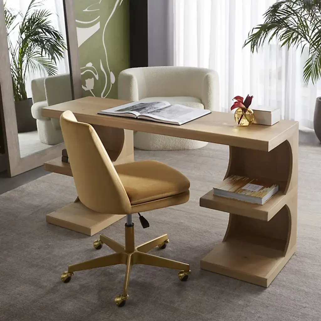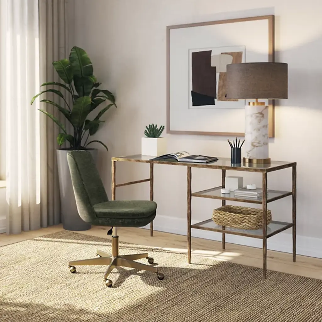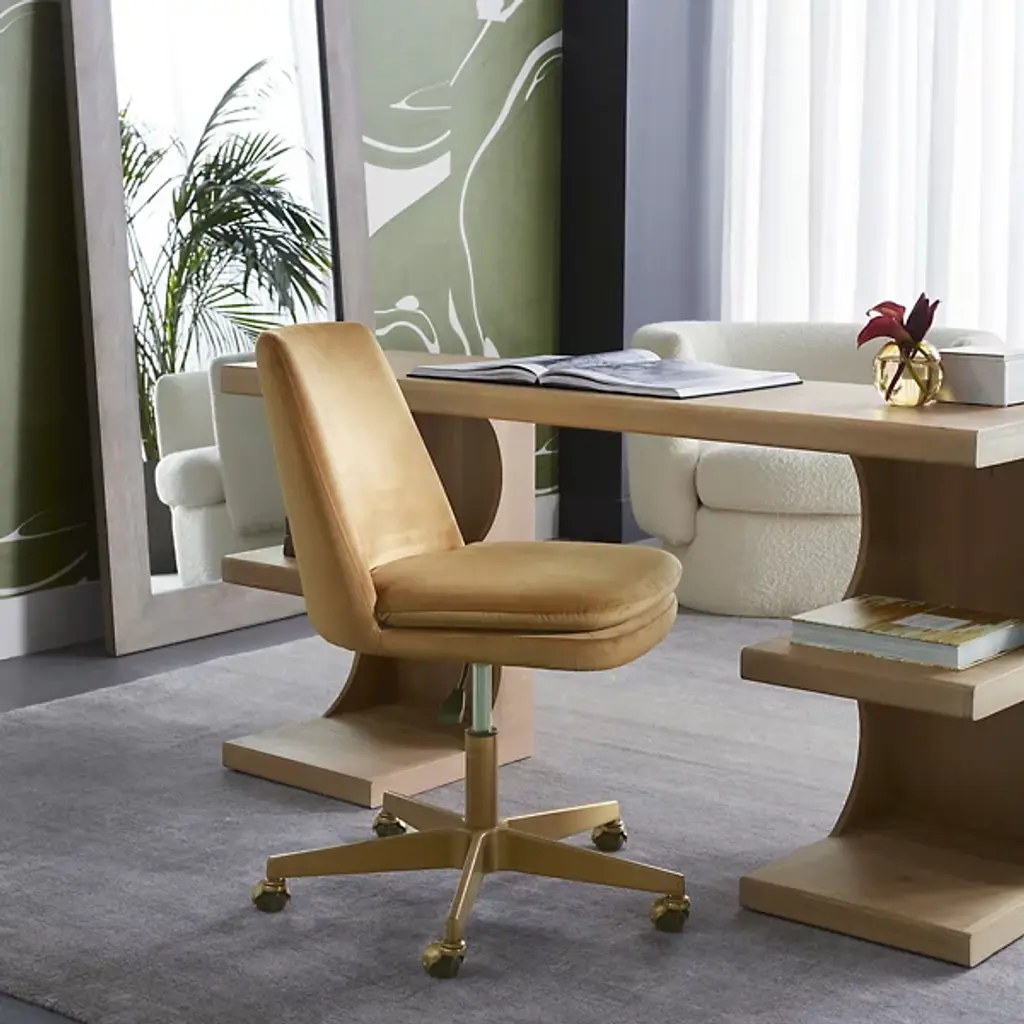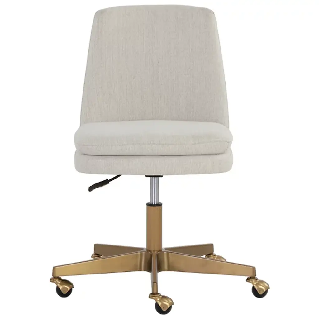 Add comfort and refined appeal to your workspace with the Berget Office Chair from Sunpan, a fabulous blend of glamour and modern functionality. Upholstered in luxurious fabric, this chair is set on a matte stainless steel star base. Its stylish design and smooth wheels add comfort while ensuring effortless mobility. Perfect for a transitional office, the chair combines elegance with practicality for a welcome touch of comfort in your work environment.