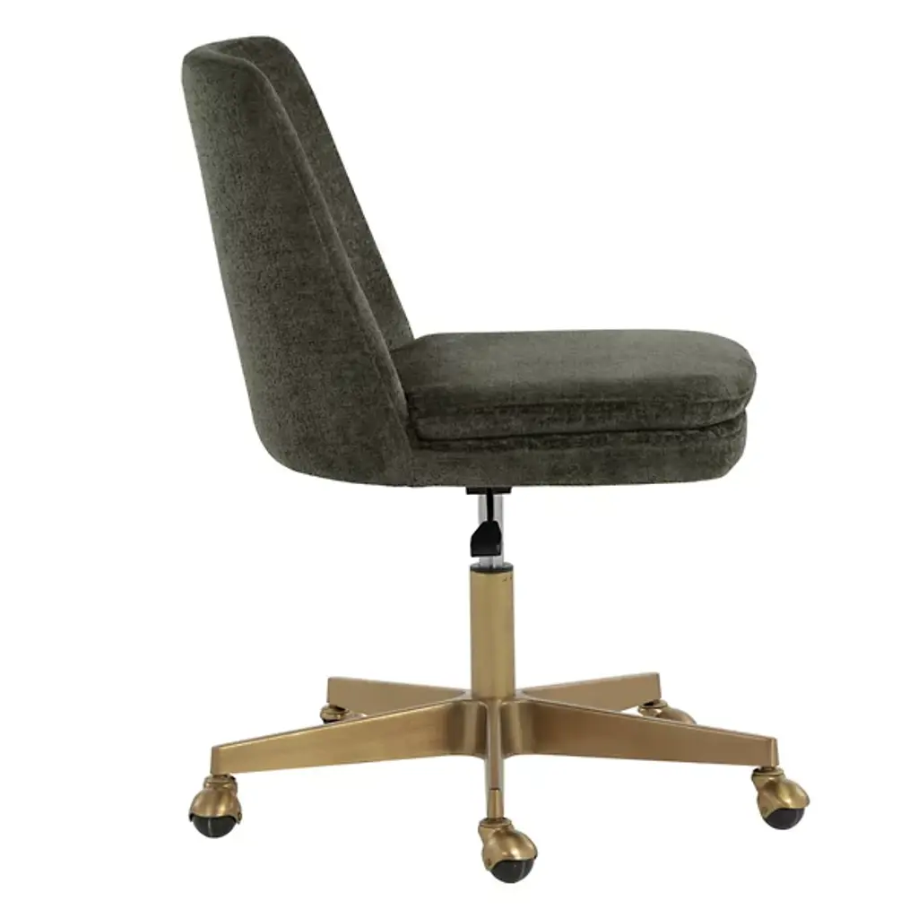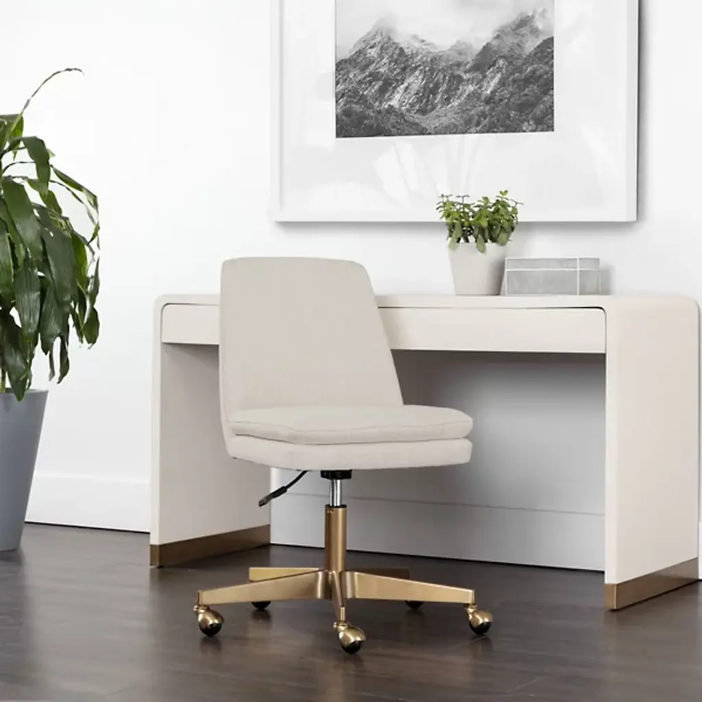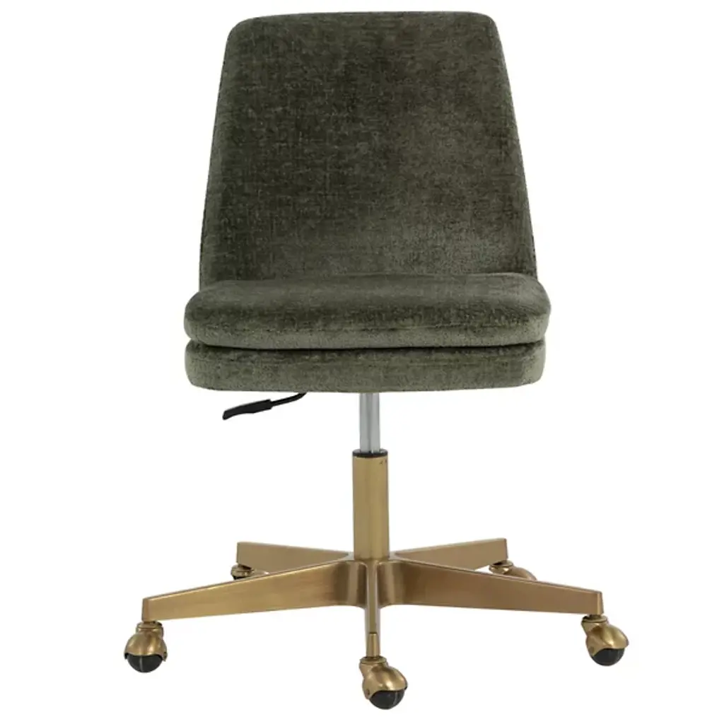 Add comfort and refined appeal to your workspace with the Berget Office Chair from Sunpan, a fabulous blend of glamour and modern functionality. Upholstered in luxurious fabric, this chair is set on a matte stainless steel star base. Its stylish design and smooth wheels add comfort while ensuring effortless mobility. Perfect for a transitional office, the chair combines elegance with practicality for a welcome touch of comfort in your work environment.