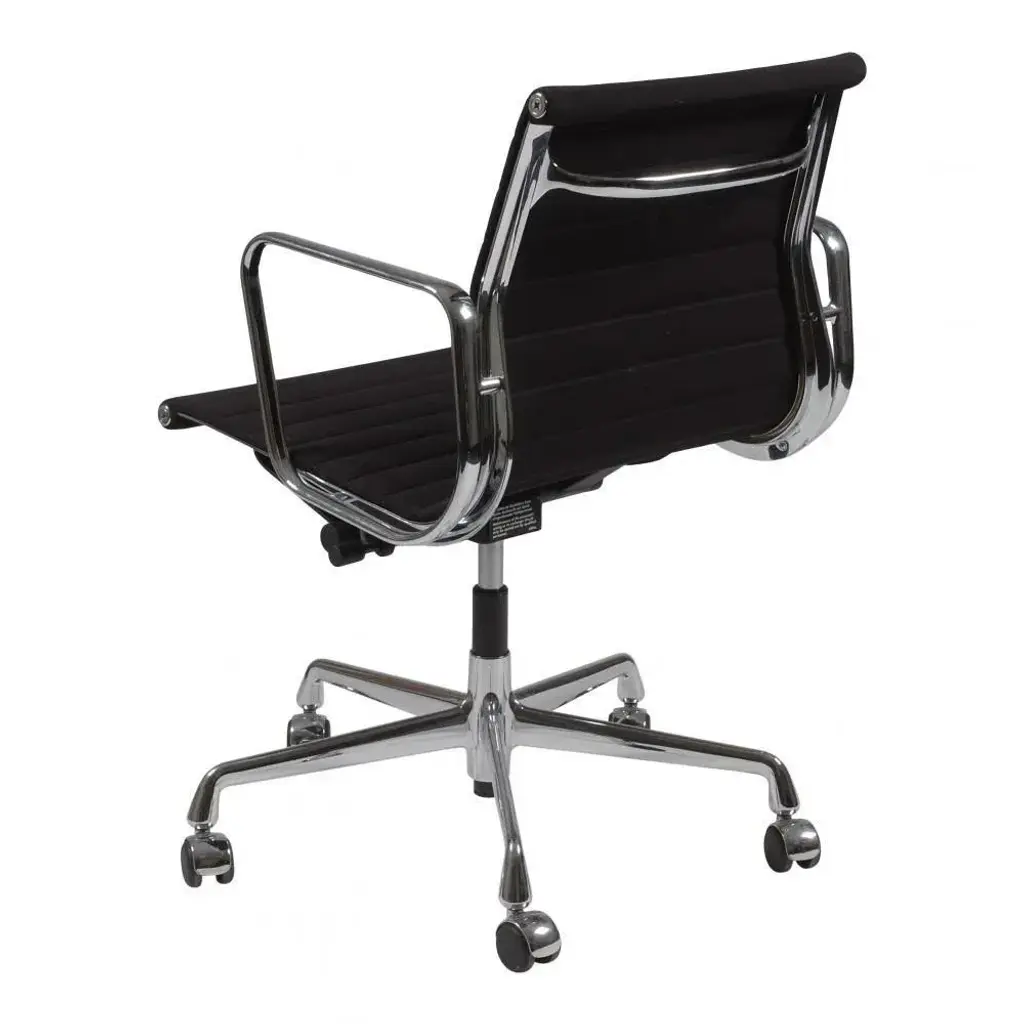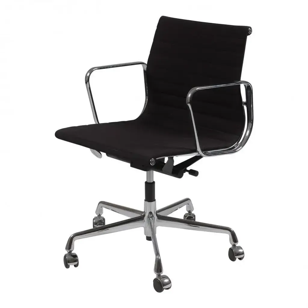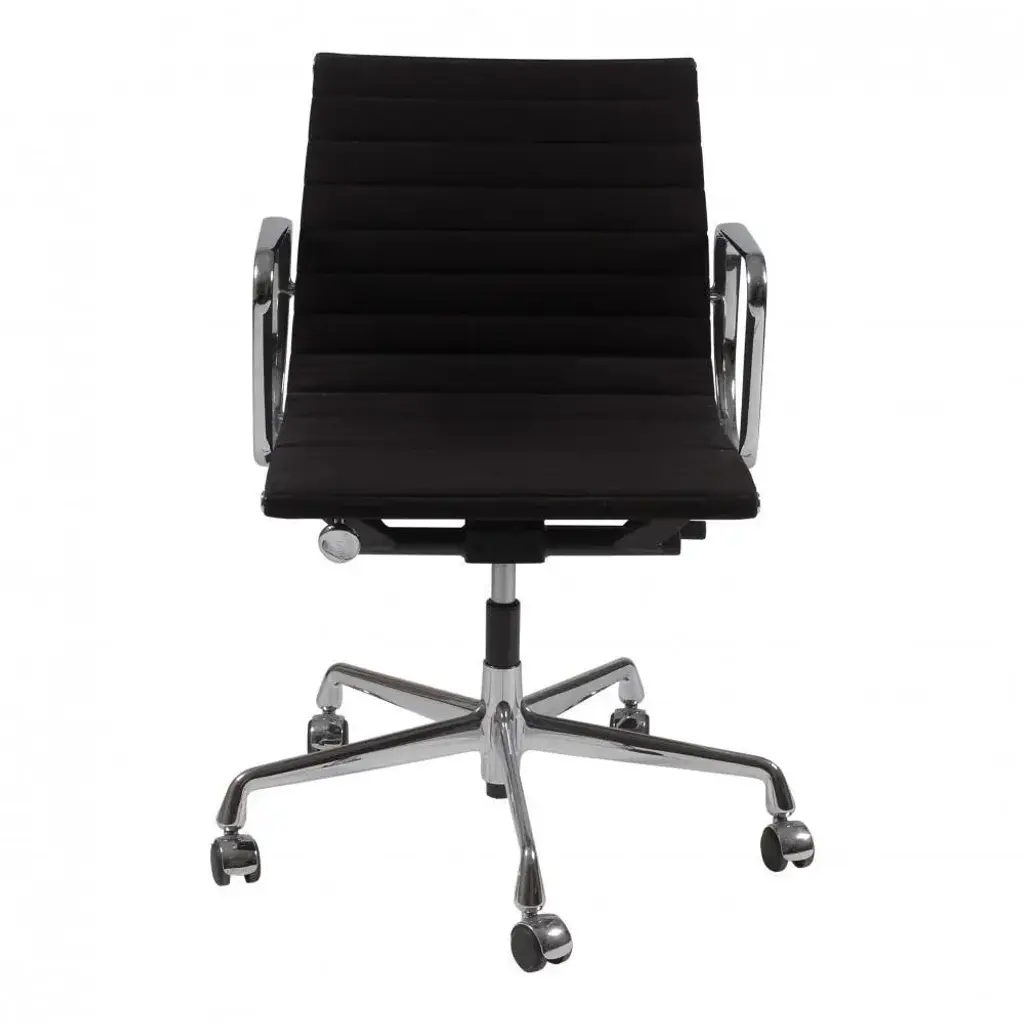 Designer: charles eames. Manufacturer: vitra. Model: ea-117. Measurements: h: 81,5-92,5 x w: 58 x d: 57 / sh: 38,5 - 50 cm. Materials: black hopsak fabric. Functions: tilt and height adjustment. Soft wheels. Condition: minimal wear and no defects