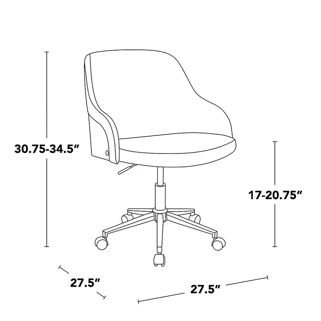 Heritage coolness meets modern versatility in the faux leather Bryta Desk Chair. Featuring an adjustable five-star base and a barrel-style curved wood back that transitions into subtle arm rests, effortlessly adding functional style to your home. Customer assembly required.