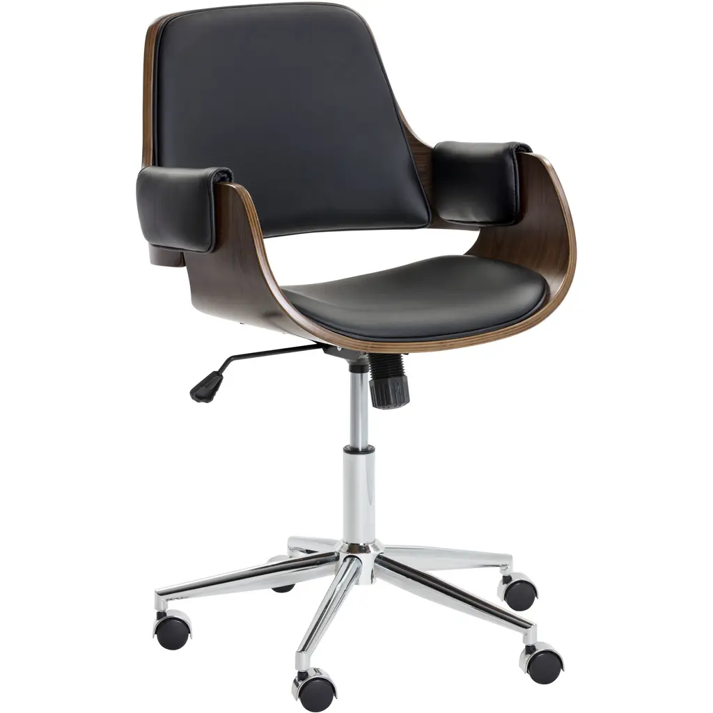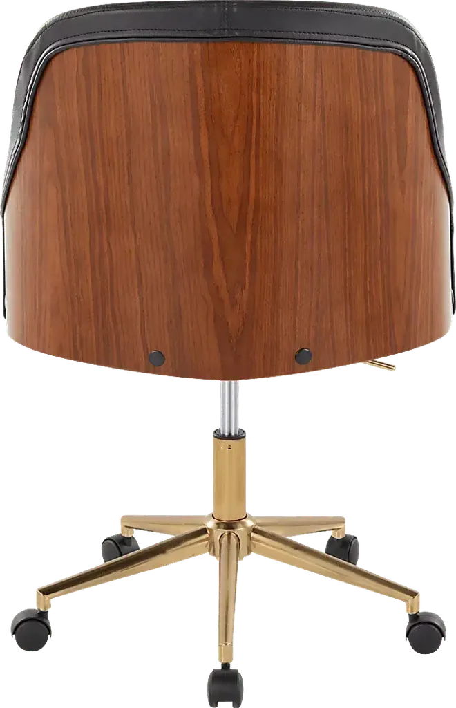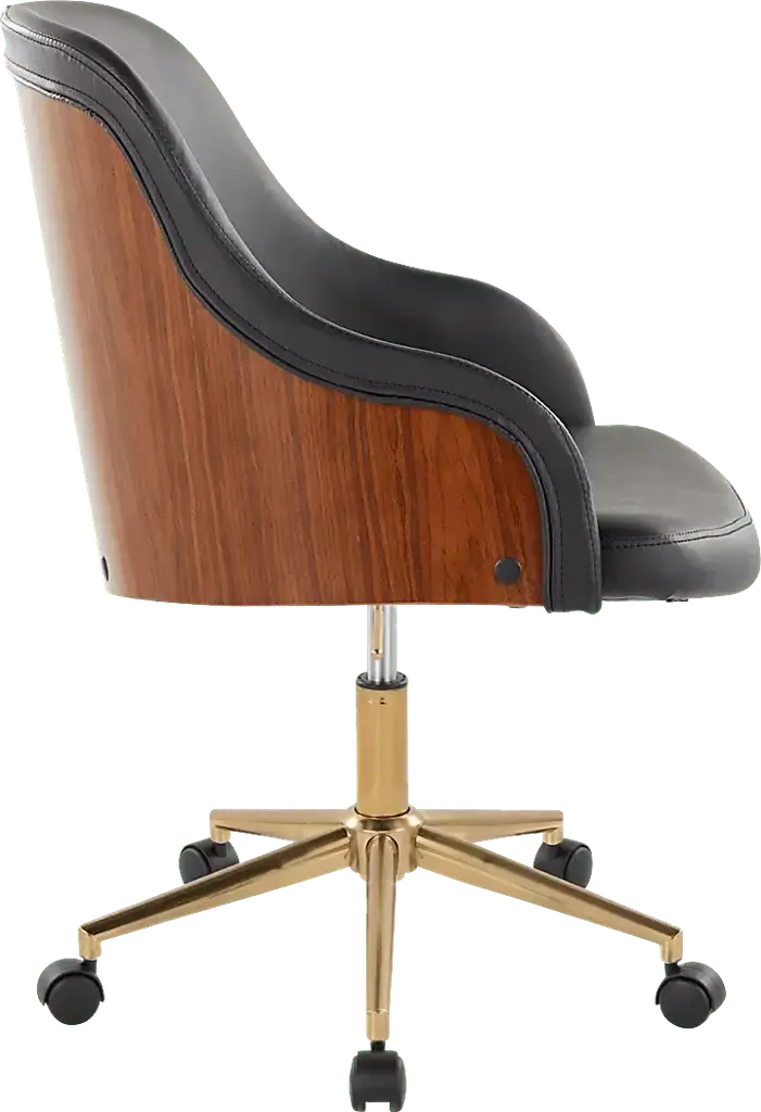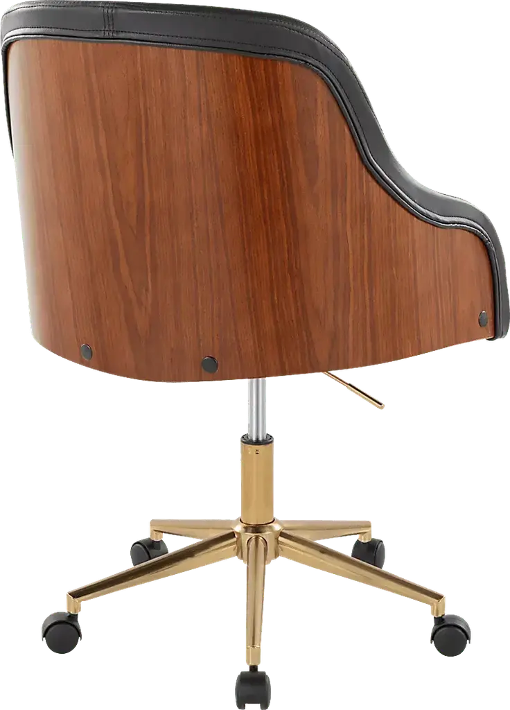 Heritage coolness meets modern versatility in the fabric Bryta desk chair. Featuring an adjustable five-star base and a barrel-style curved wood back that transitions into subtle arm rests, effortlessly adding functional style to your home. Customer assembly required.