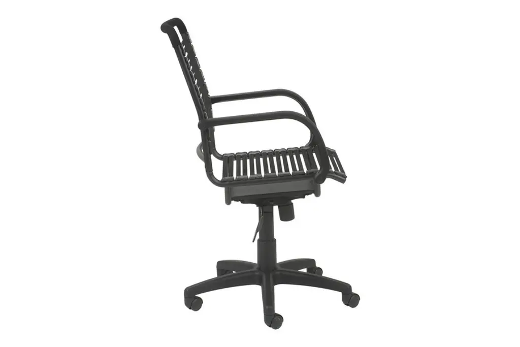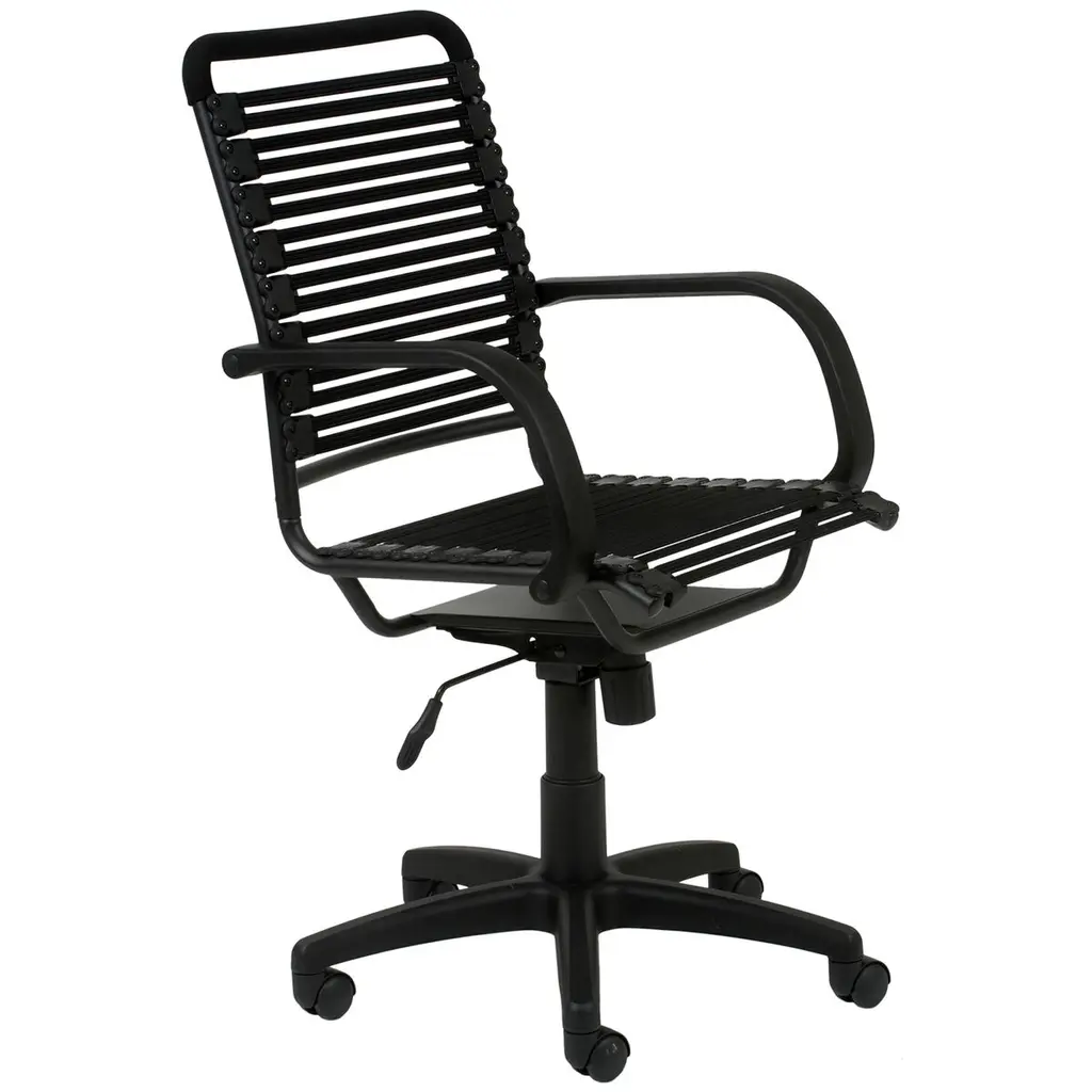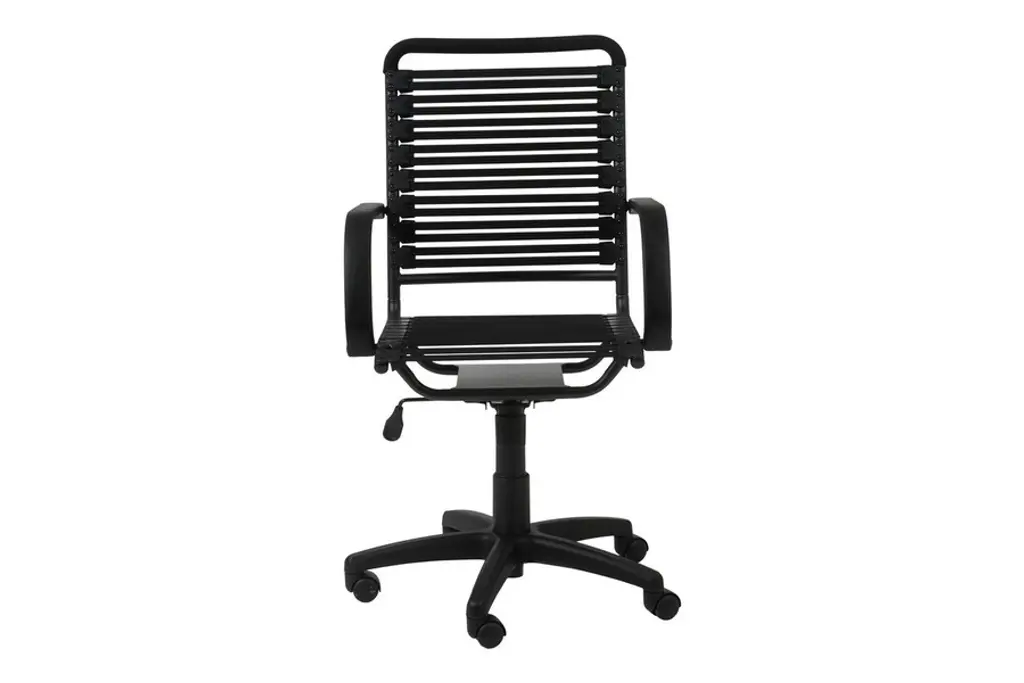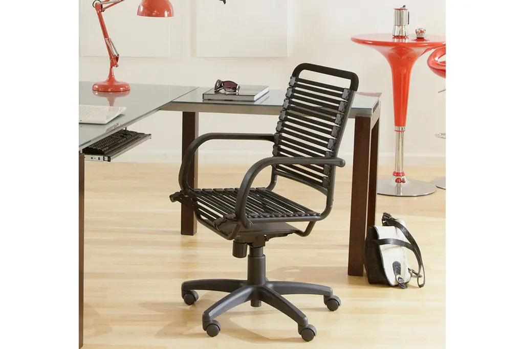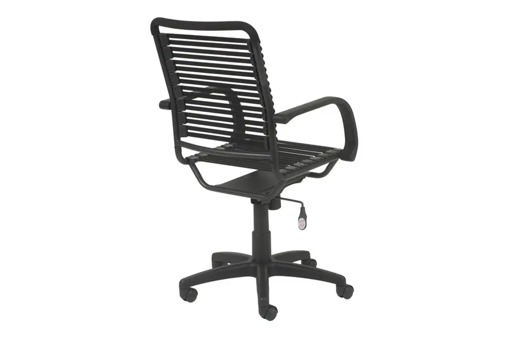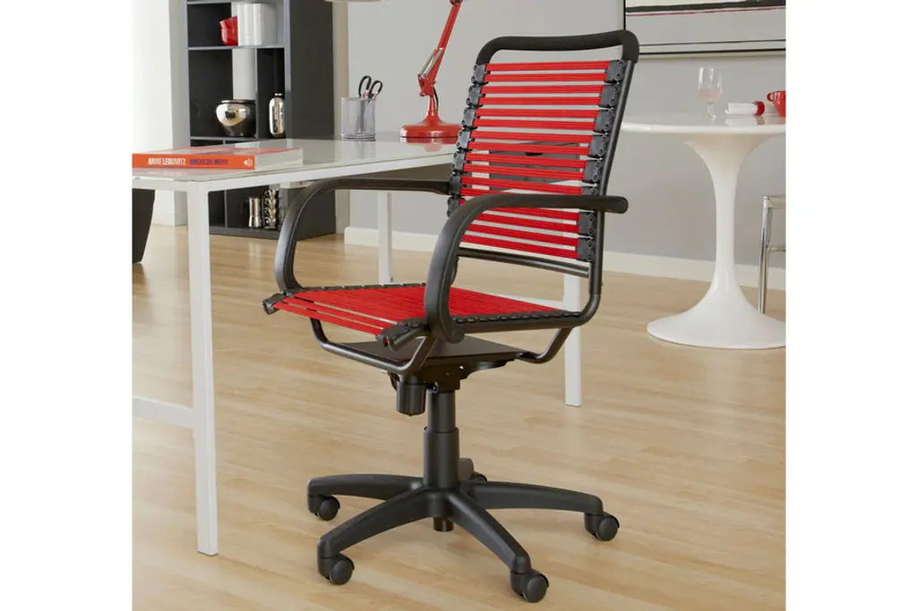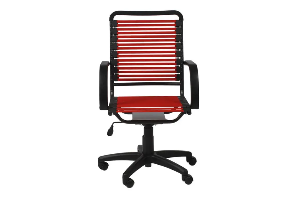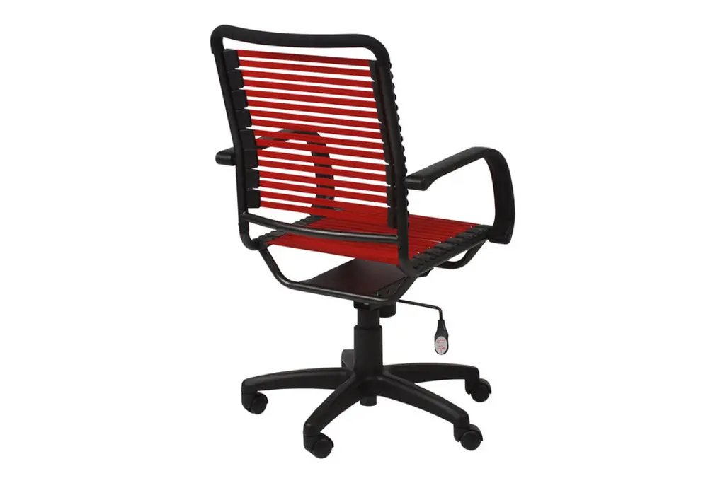 Energize your office with this modern office chair. Bungie cords conjure up images of daring jumps and bouncing thrills. Now apply that to type of vitality to your office space and youve a one-of-a-kind seating solution. With flat bungie cords looping across its strong steel frame, high backrest and seat, this adjustable office chair tilts, swivels and adjusts up and down with the light touch of its gas lift; so in spite of its built-in mojo, this chair provides design elegance too.