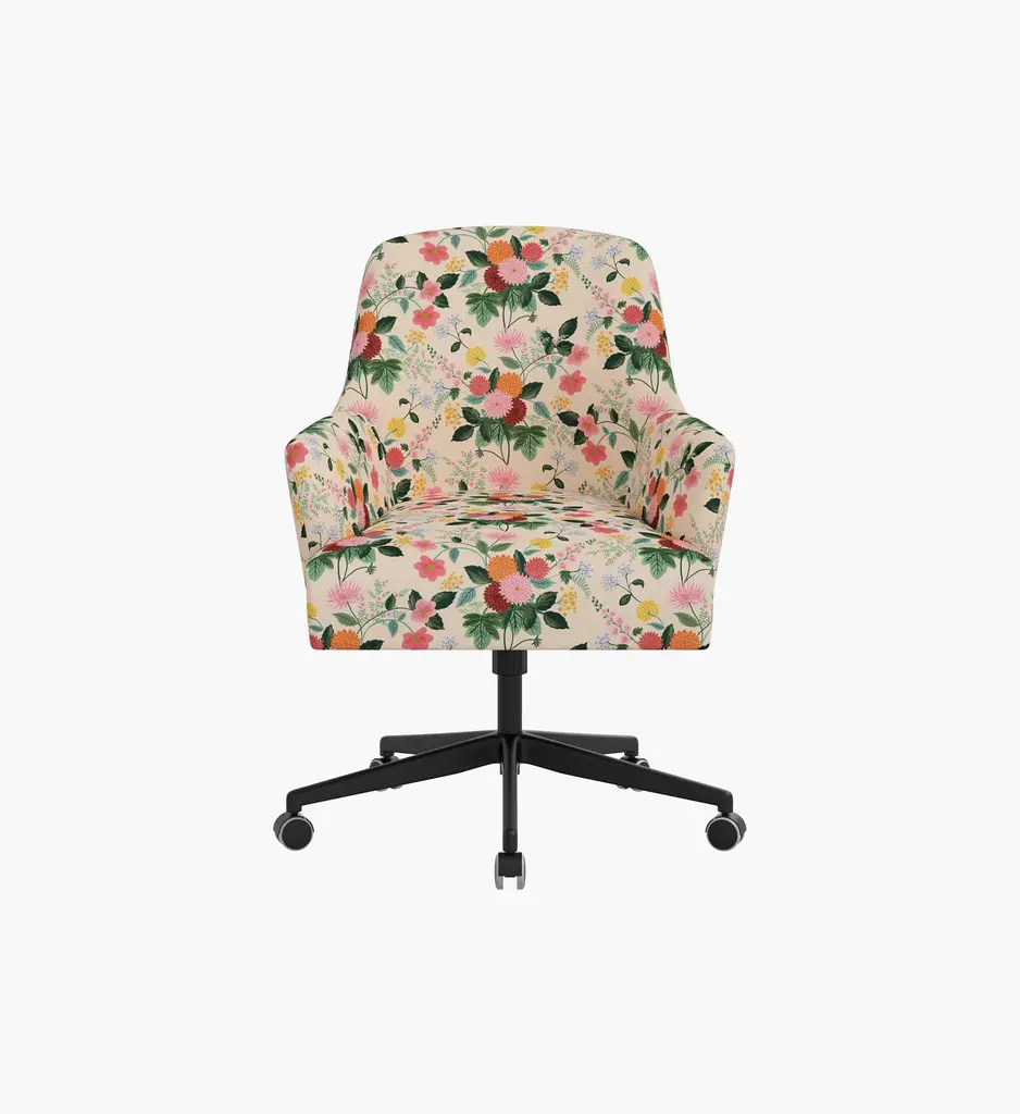 With low sloping arms for extra support, the Cambridge Desk Chair is as stylish as it is functional. Select from 17 illustrated fabrics and two base colors for your made-to-order piece, crafted in Chicago by Cloth & Company.