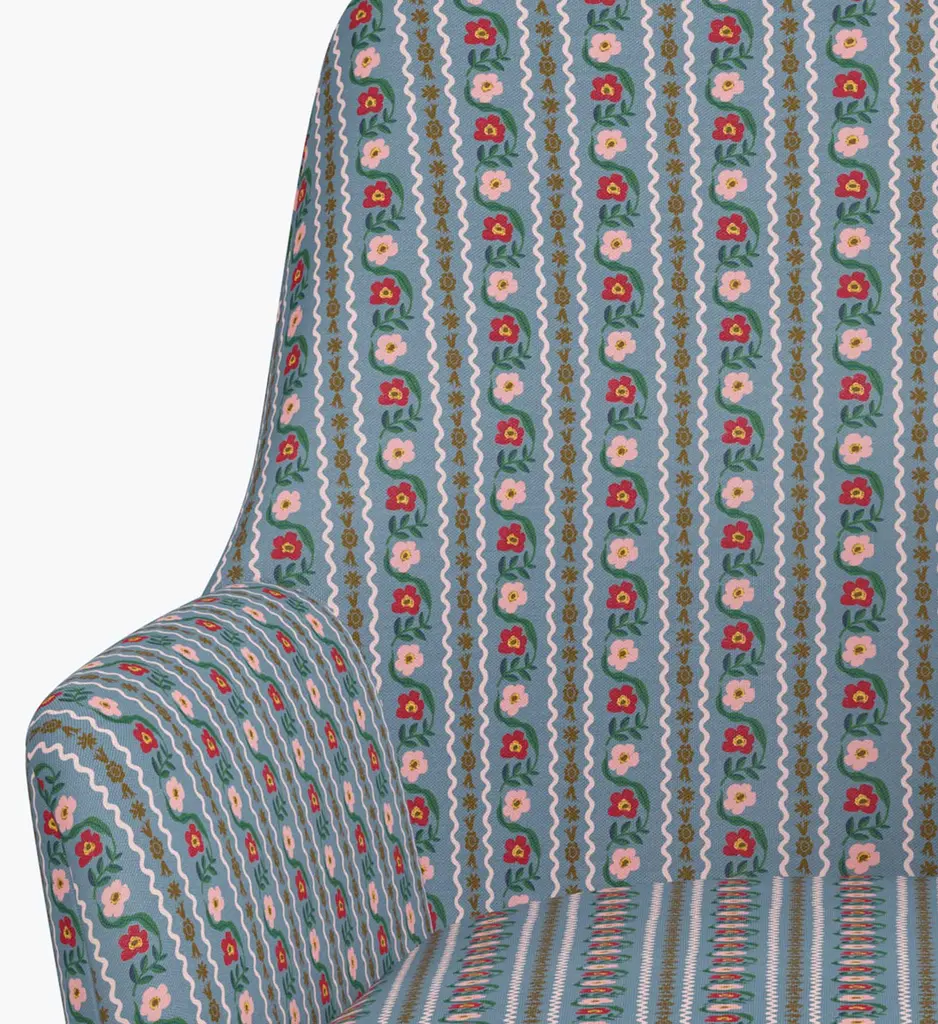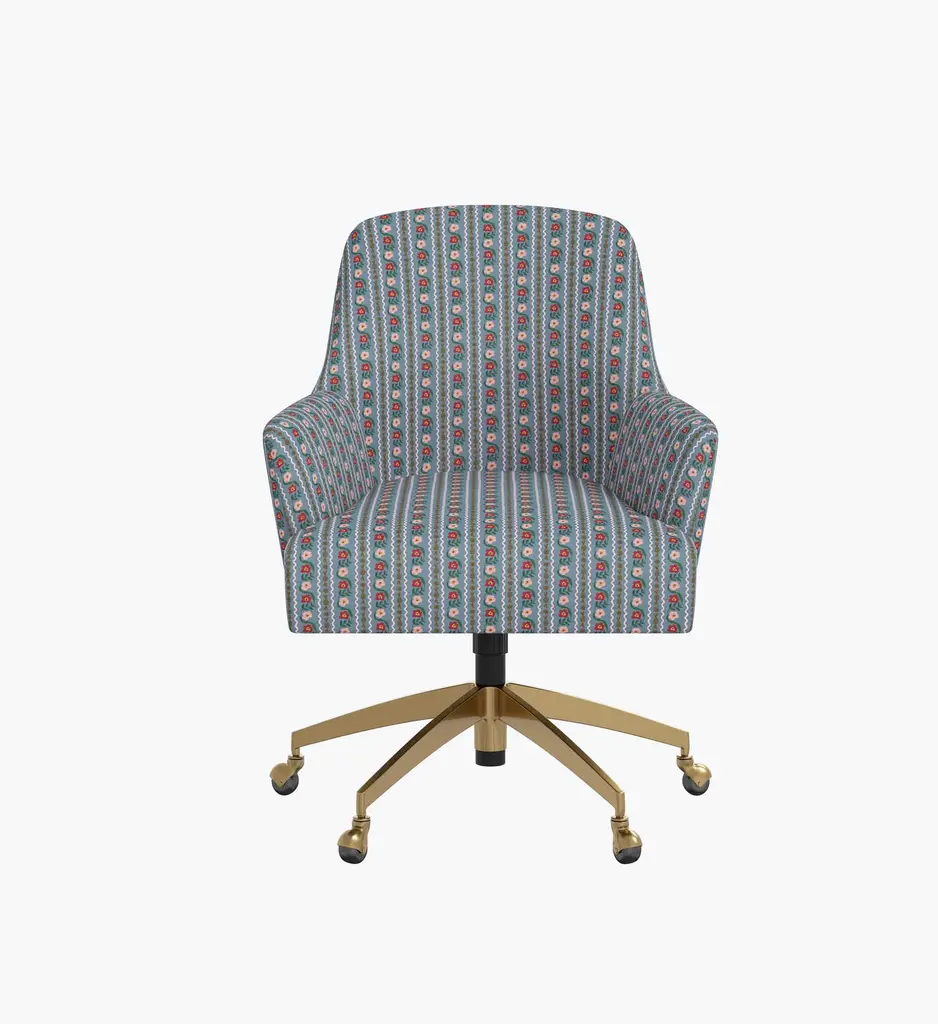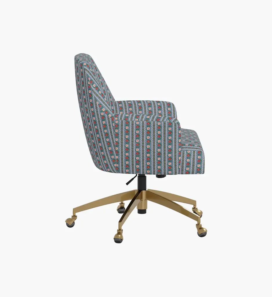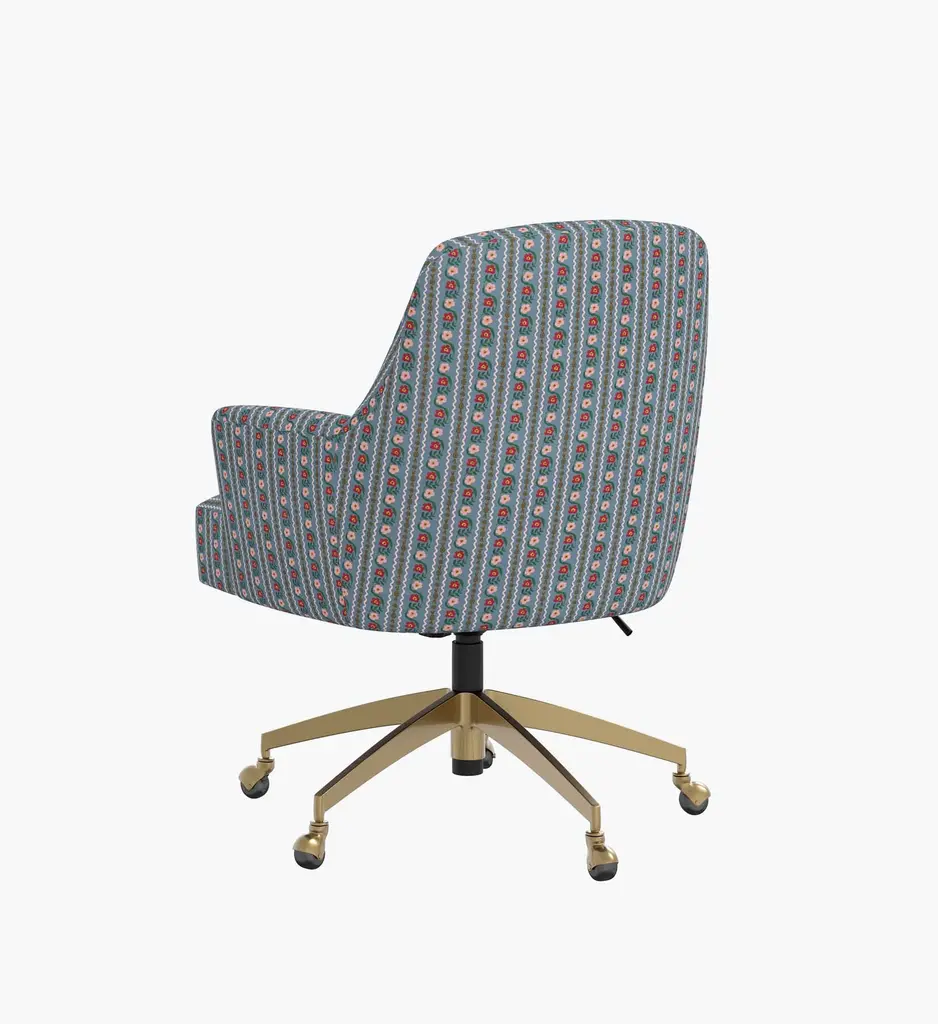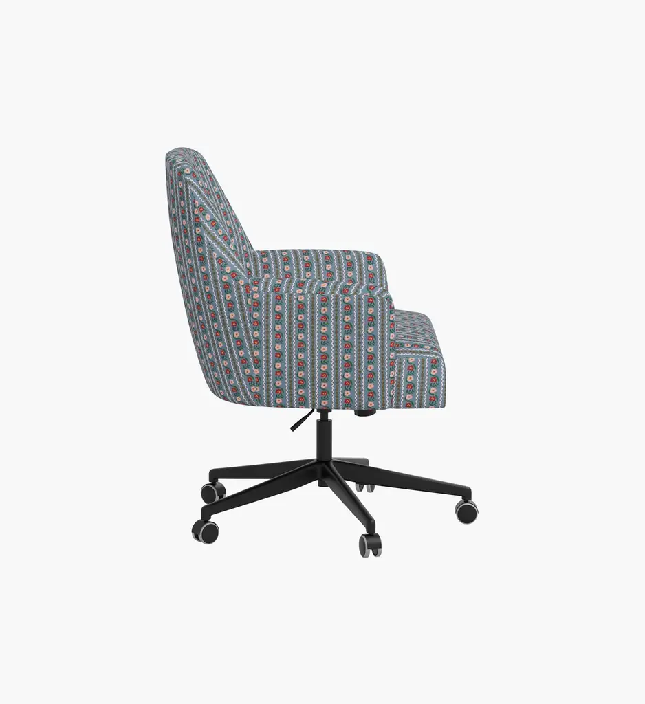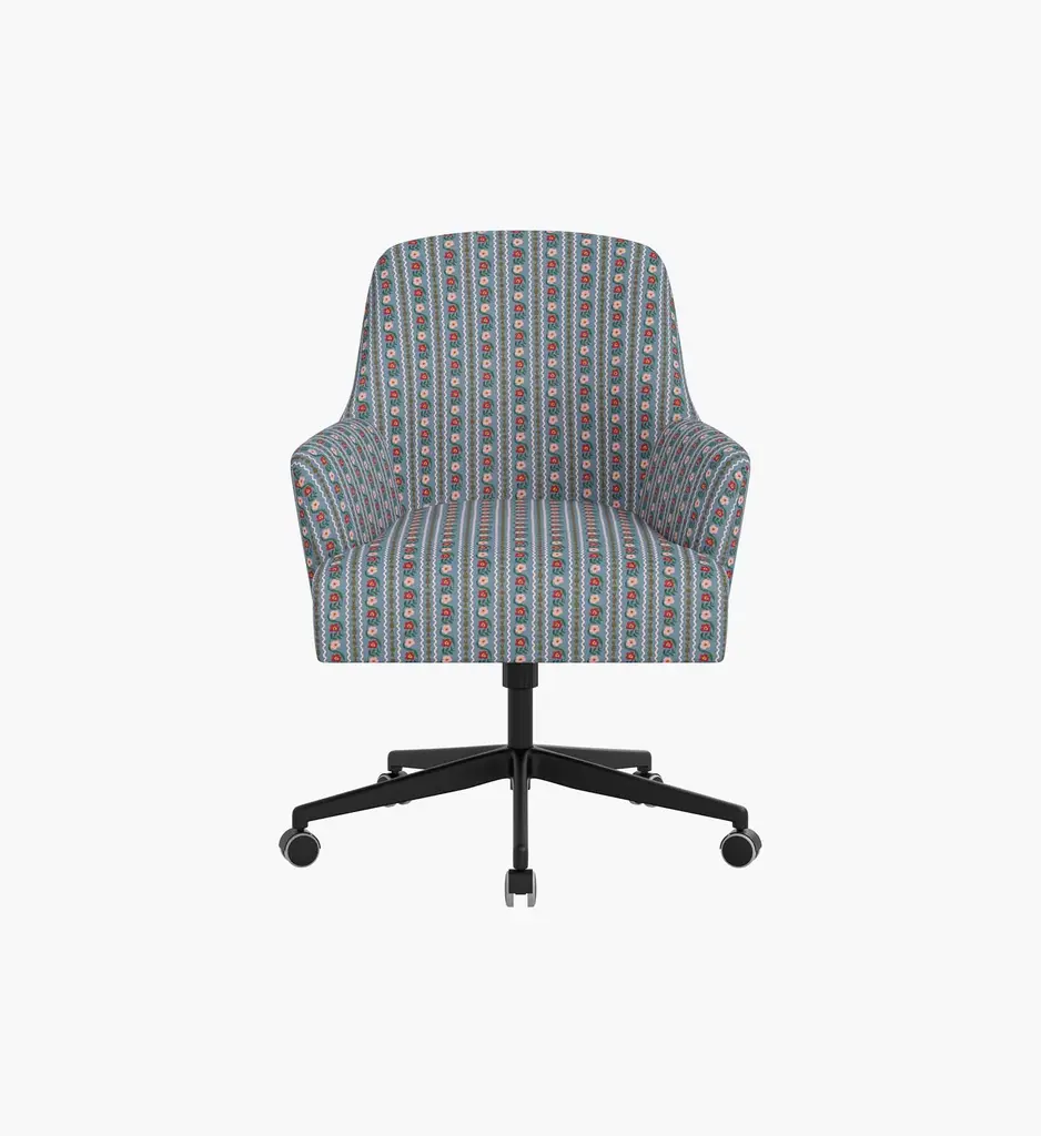 With low sloping arms for extra support, the Cambridge Desk Chair is as stylish as it is functional. Select from 17 illustrated fabrics and two base colors for your made-to-order piece, crafted in Chicago by Cloth & Company.