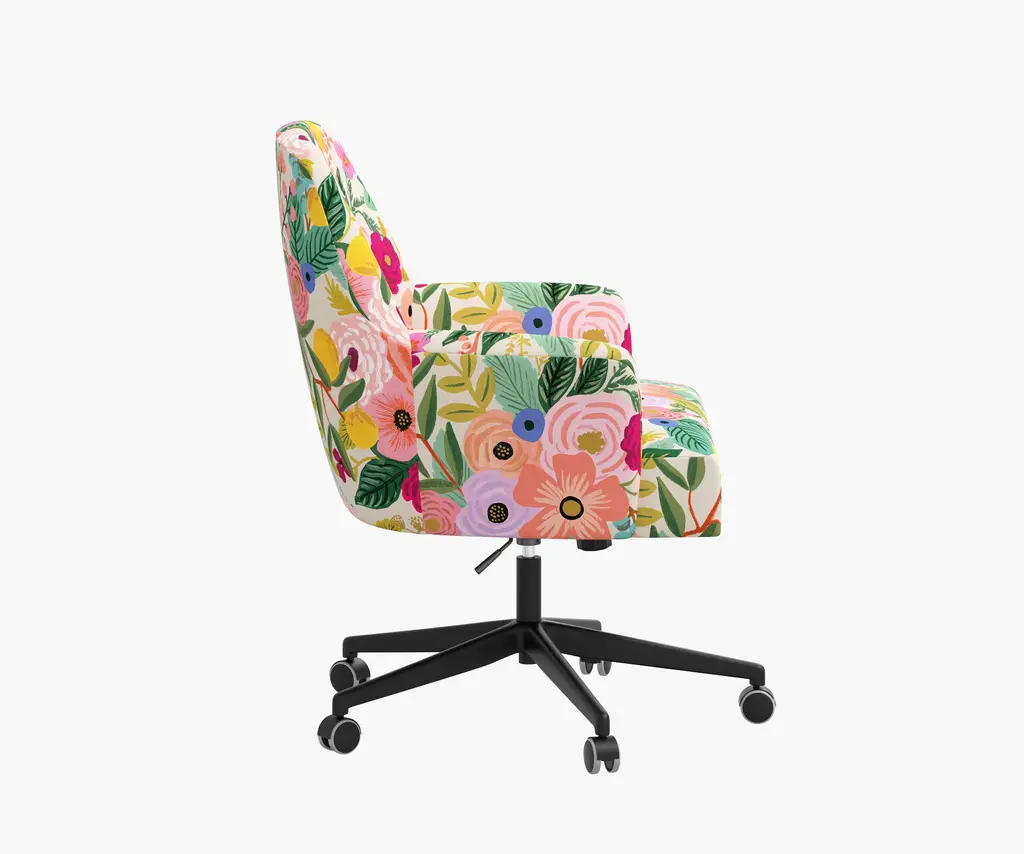 With low sloping arms for extra support, the Cambridge Desk Chair is as stylish as it is functional. Select from 17 illustrated fabrics and two base colors for your made-to-order piece, crafted in Chicago by Cloth & Company.