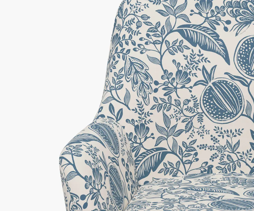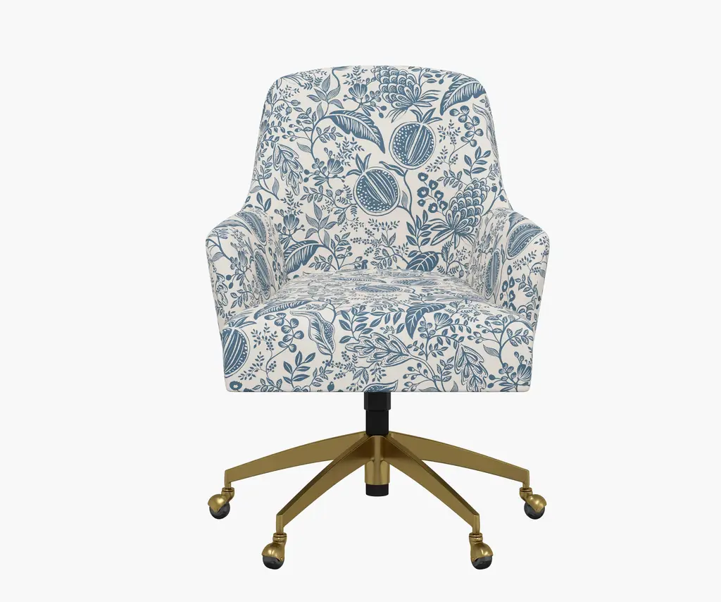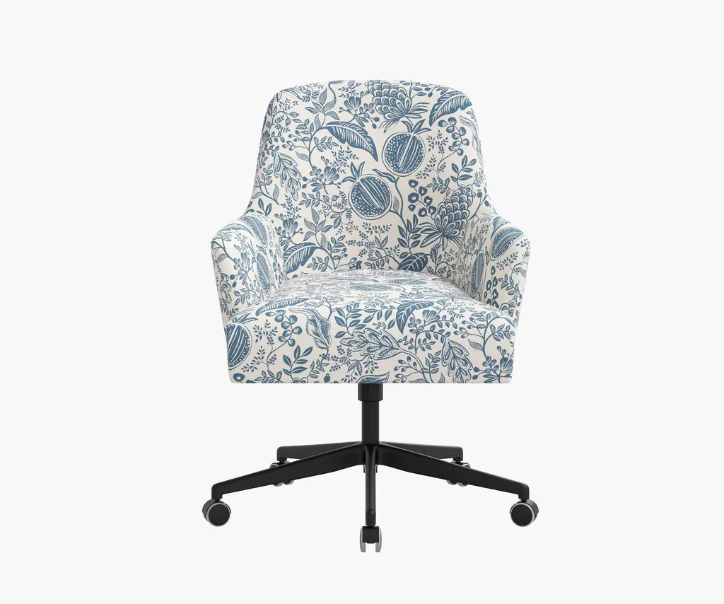 With low sloping arms for extra support, the Cambridge Desk Chair is as stylish as it is functional. Select from 17 illustrated fabrics and two base colors for your made-to-order piece, crafted in Chicago by Cloth & Company.