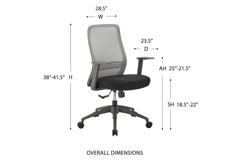 Caspar Modern Black Gray Grey Mesh Office Chair With Wheels | Ergonomic | Adjustable