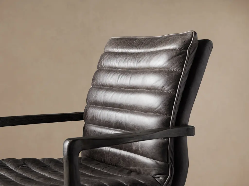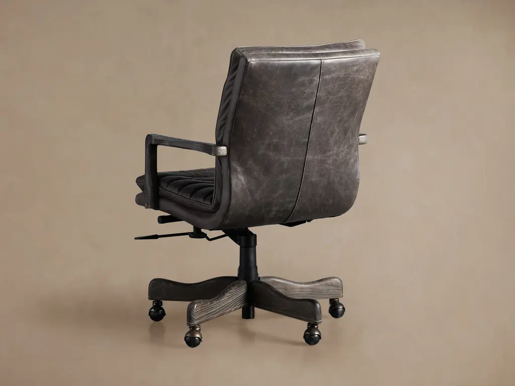 Luxuriously rustic comfort - Strong in both style and artisan-crafted quality, our handsome Cedrick Desk Chair is masterfully designed to bring sophistication and richness to your workspace. Expertly upholstered in luxurious hand-finished leather, Cedrick’s channel-stitched seat is generously padded with dense foam and is sustained by a resilient, flexible suspension system designed for “sink-into” comfort and evenly dispersed support. The chair’s frame is craftsman-built from reinforced hardwood and sits on a pneumatic base and brass casters, which allow you to swivel, slide, adjust, and tilt yourself into an ideal position—perfect for hours of productivity.