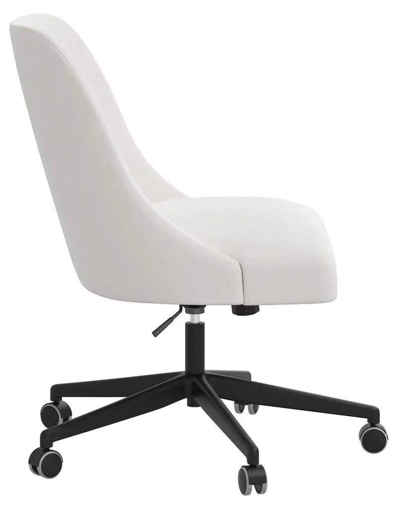 Made in the USA and upholstered in plush velvet, this desk chair has an adjustable swivel base and casters for easy mobility. Generous cushioning ensures optimal comfort no matter how long your workday.