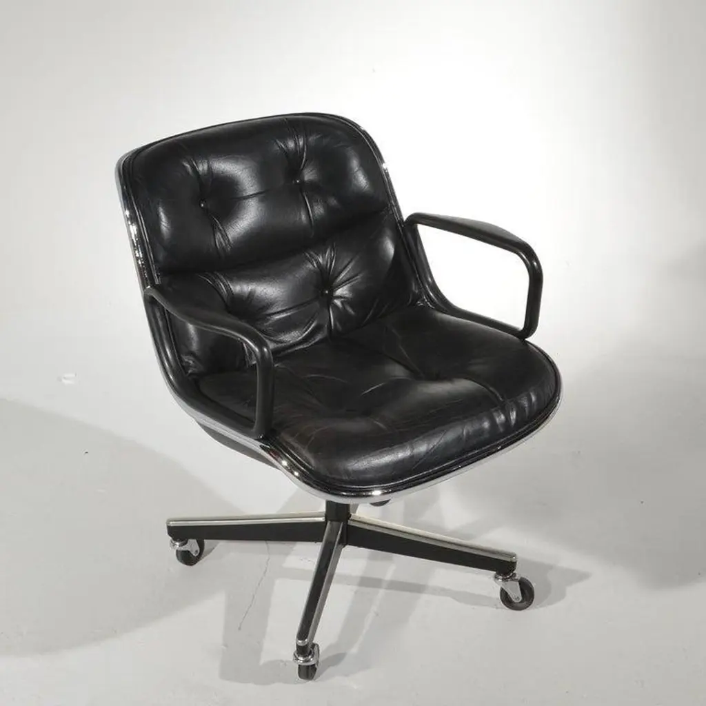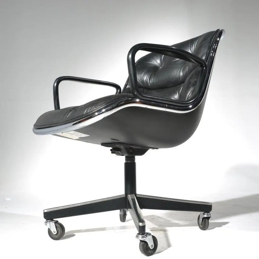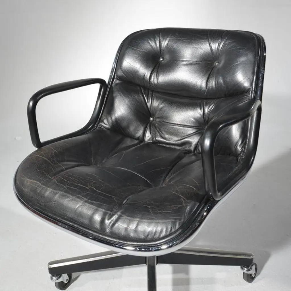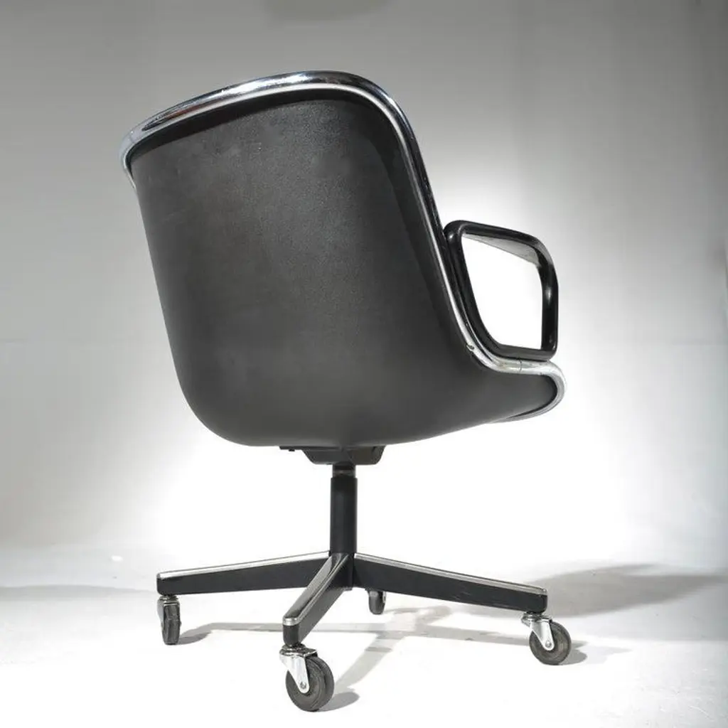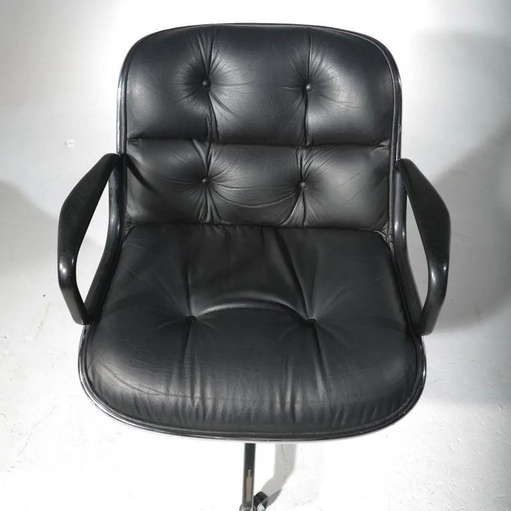 Set of 5 1980's vintage, Charles Pollock black executive desk chair for Knoll. The ultimate ergonomic, office desk chair designed by this George Nelson apprentice, Charles Pollock. Sold separately. Black leather with chrome details and all direction rolling wheels. This classic chair is designed for comfort and style.