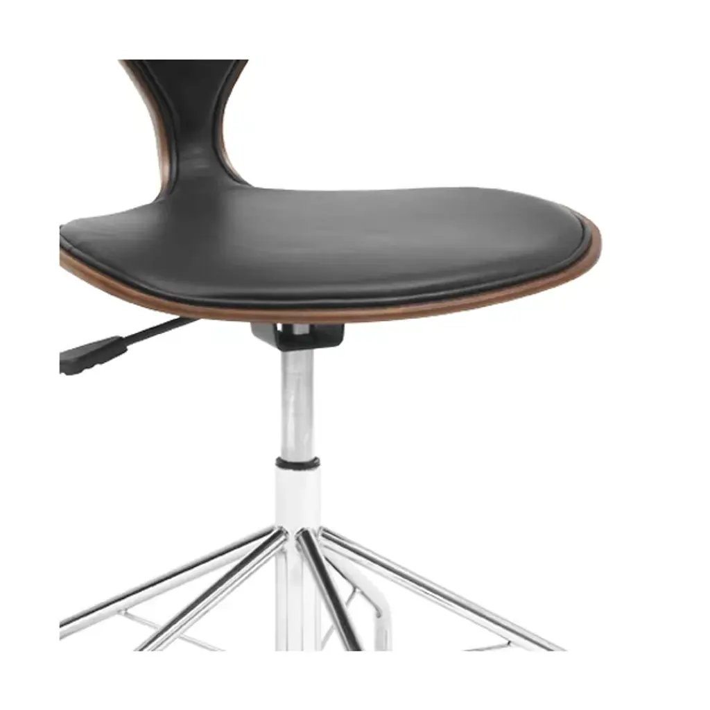 Glide through your workplace with elegance and ease. The Cherner Seat and Back Upholstered Task Chair by Cherner Chair Company keeps you comfortable all through the day. This upholstered desk chair is created by fabricating a molded plywood shell and a strong steel base with rolling casters. Mid-century modern furniture with minimal design, this task chair lasts for a long time, and its lightweight construction makes it easy to move around. It uses a completely water-based veneer finishing system, resulting in high color consistency and fewer VOCs.