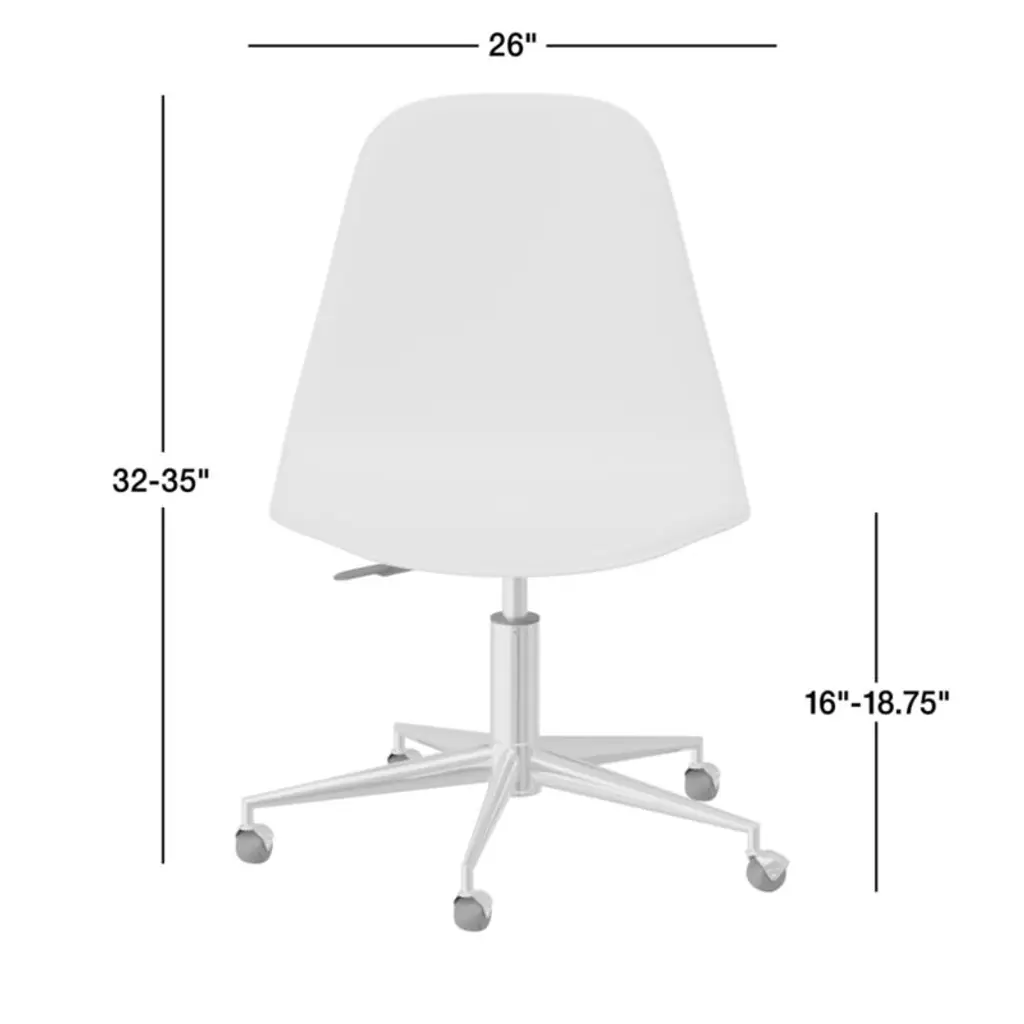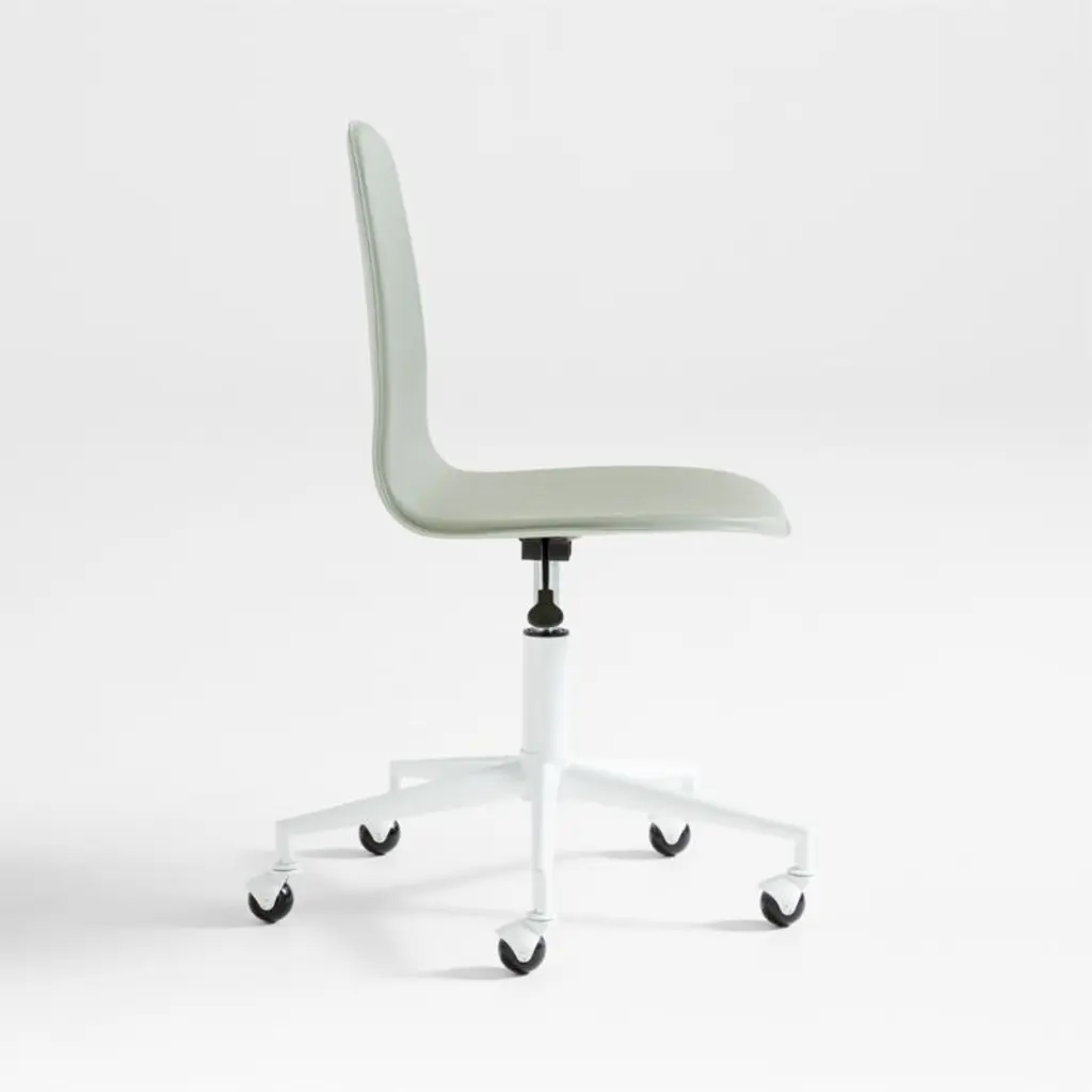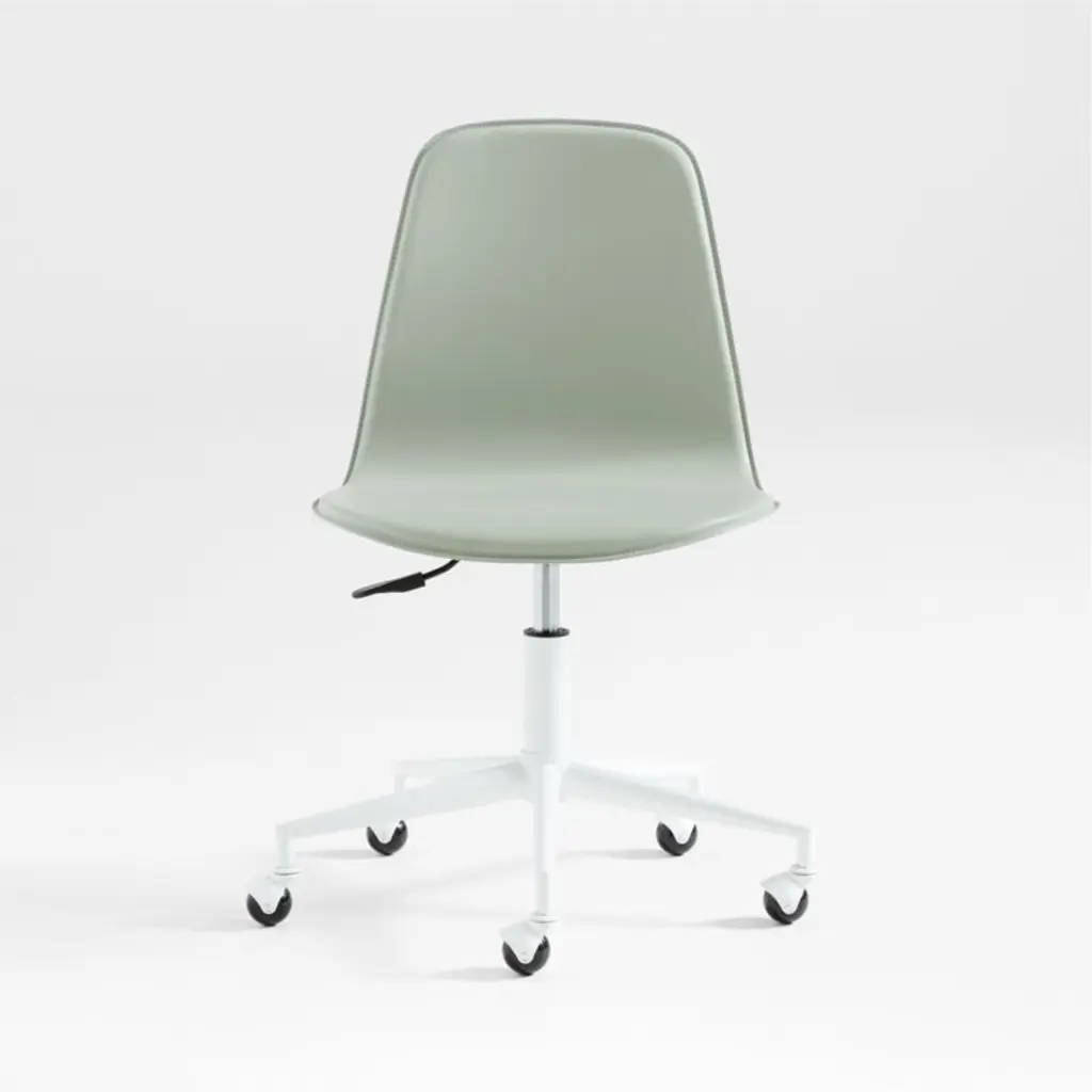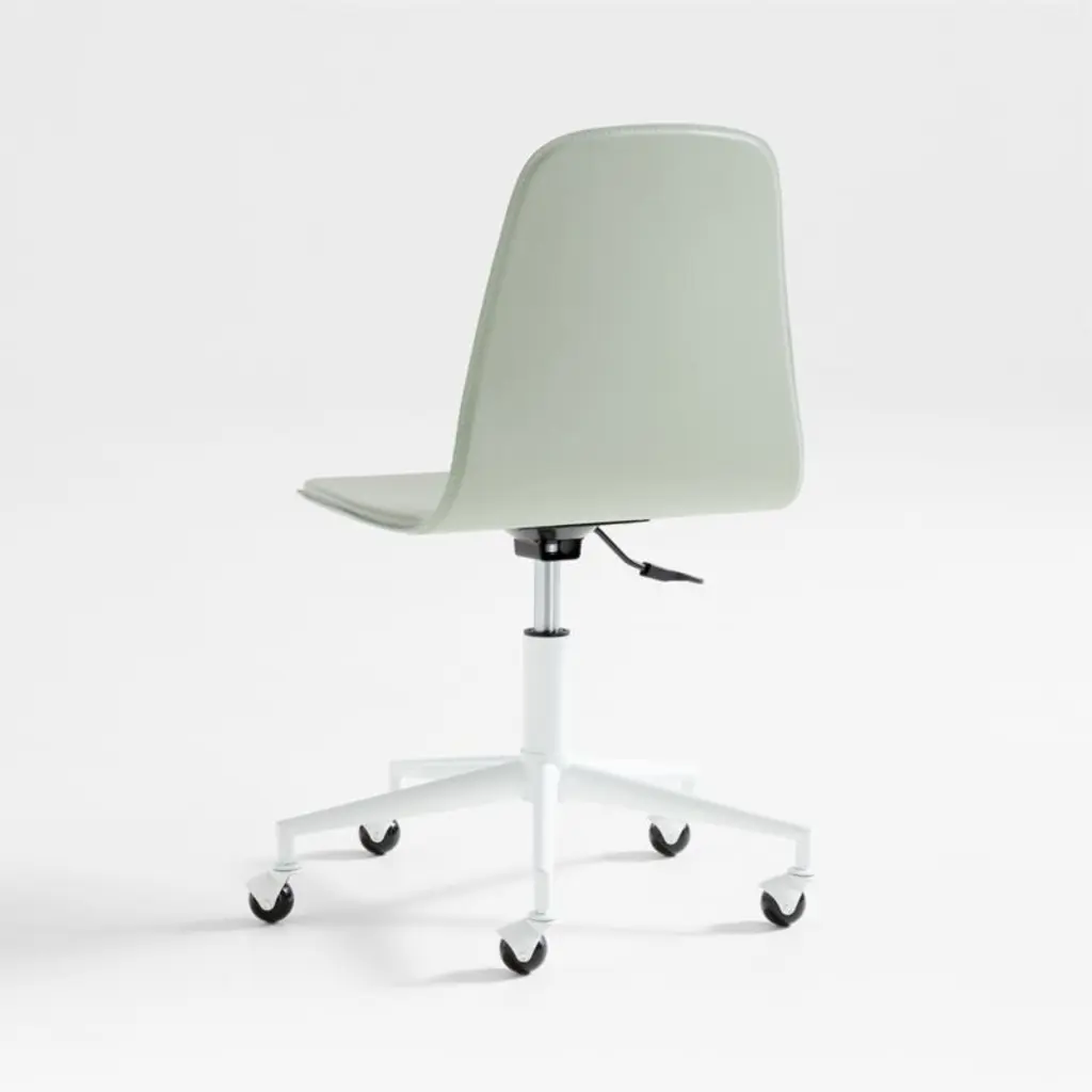 Our seamless, modern take on the classic desk chair, this supportive design lets the good times roll. Beauty meets functionality with a sleek, curved silhouette and 5-leg metal base in a bright white finish. The padded sage green seat swivels 360 degrees for easy maneuvering. Designed to grow with kids, this chair also adjusts up and down, and rolling caster wheels travel smoothly over wood, carpet or area rug.