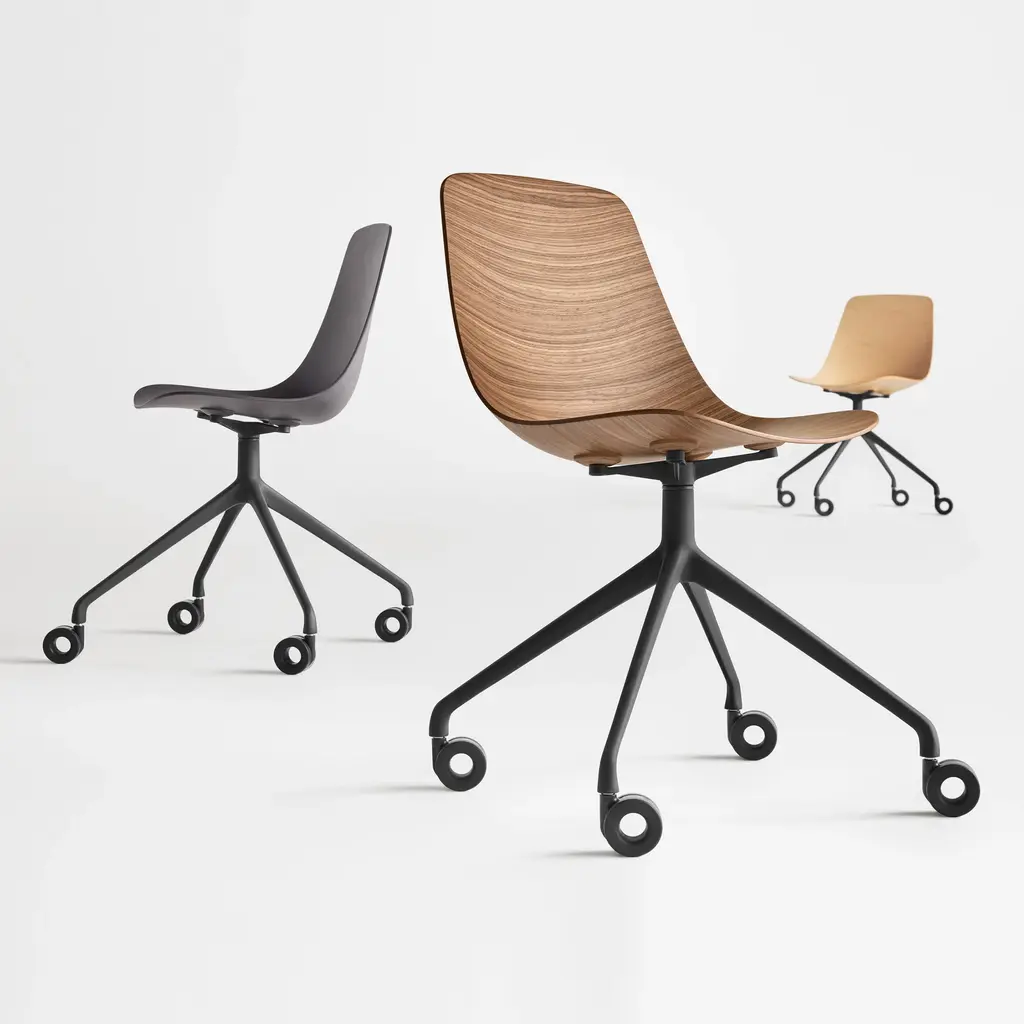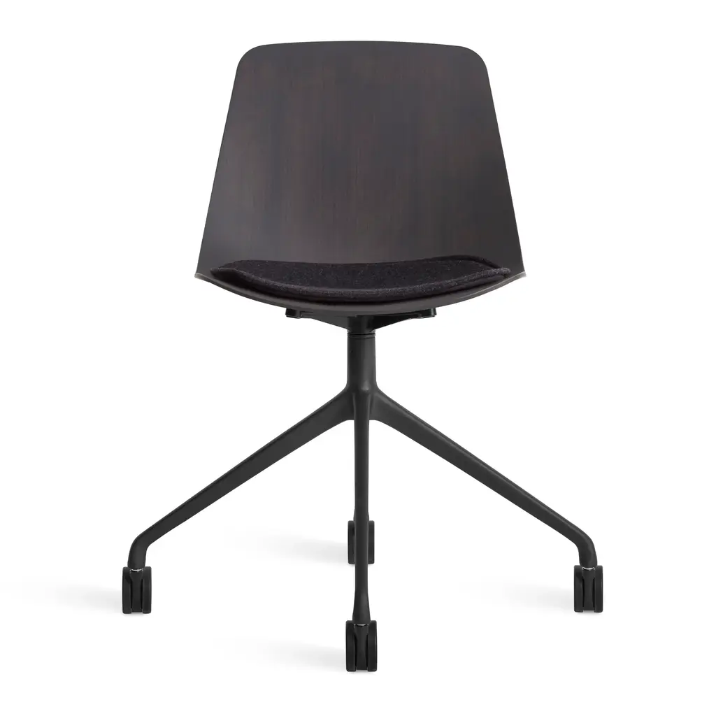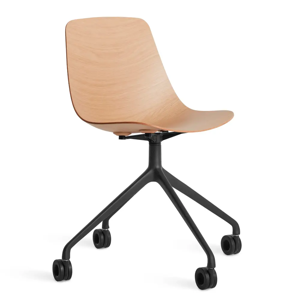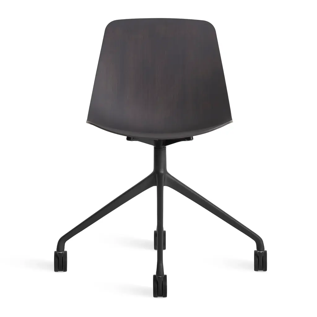 A perfectly curved and stunningly finished seat for your favorite work area or office space, the Clean Cut Task Chair from Blu Dot offers straightforward style worthy of any well-appointed home. Showcasing a bent wood seat crafted from wood veneer sitting atop a powder-coated aluminum base, this chair features a caster design to allow you to effortlessly move about your space as needed. A fabulous contemporary design, pair this task chair with a simple, straightforward desk for a cohesive workspace and top with a striking task lamp and organization pieces to craft the ideal work from home space or office atmosphere. Highlights