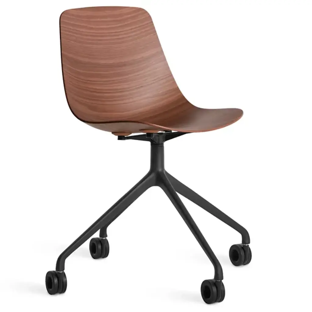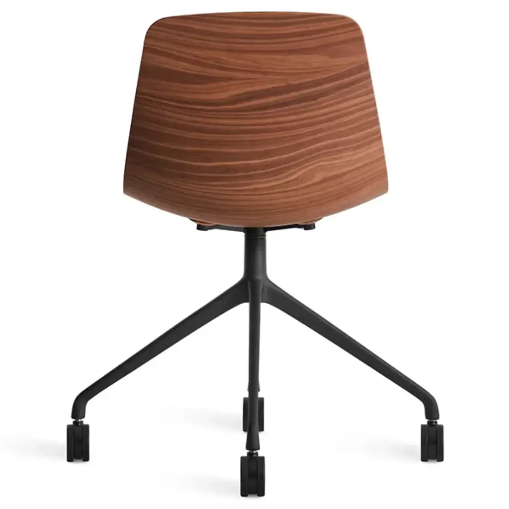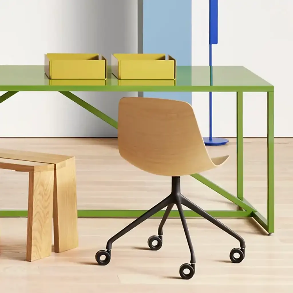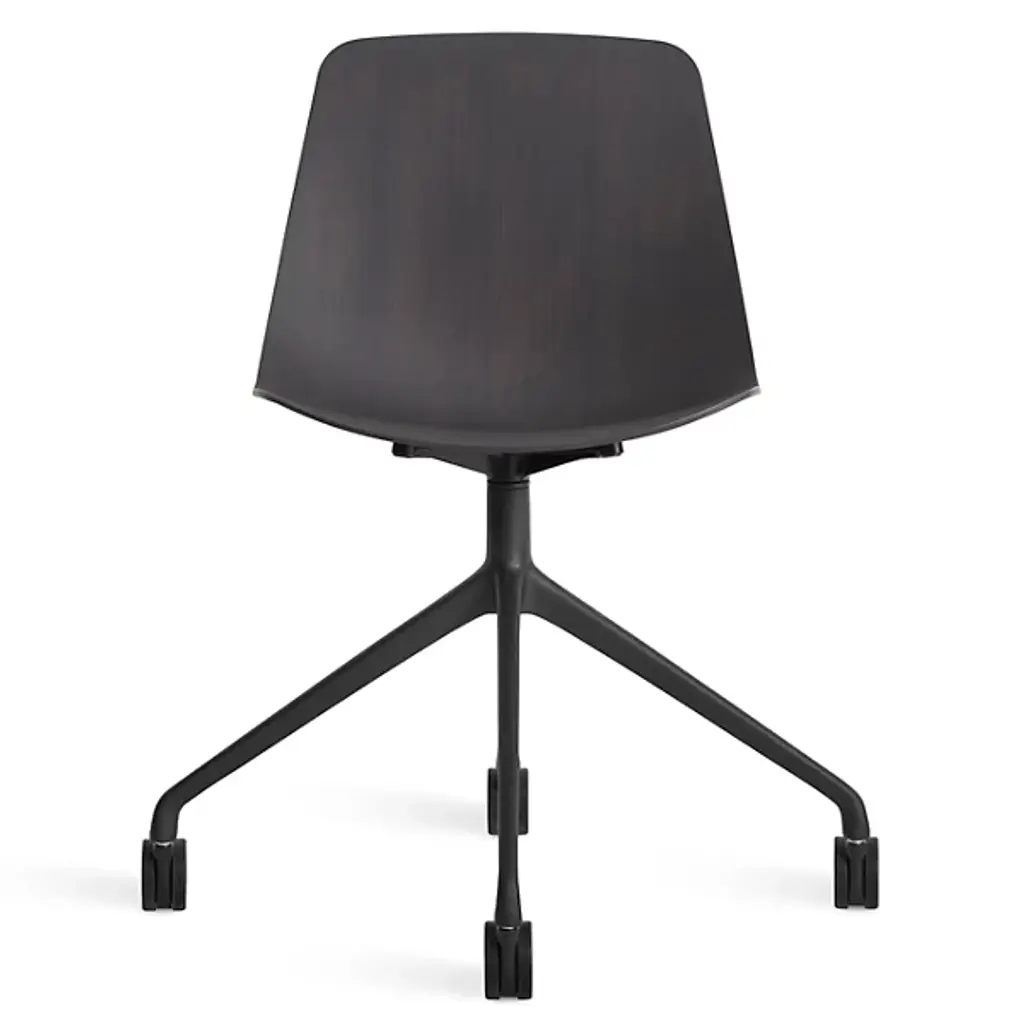 The Clean Cut Task Chair from Blu Dot is a timeless piece that commands attention with its sharp edges and sleek silhouette. Crafted with a 3D bent wood construction, it effortlessly combines comfort with modern aesthetics. The angular powder-coated aluminum frame set atop smooth wheels adds durability without compromising on style, and offering profound maneuverability. Resilient and smoothly adjustable, this chair is suitable for focused work or relaxed lounging, making it a perfect fit for contemporary living spaces seeking sophistication and functionality.