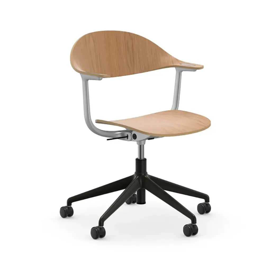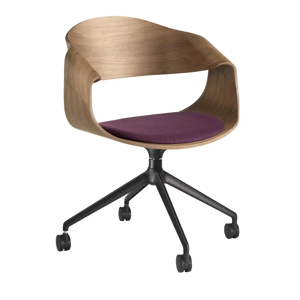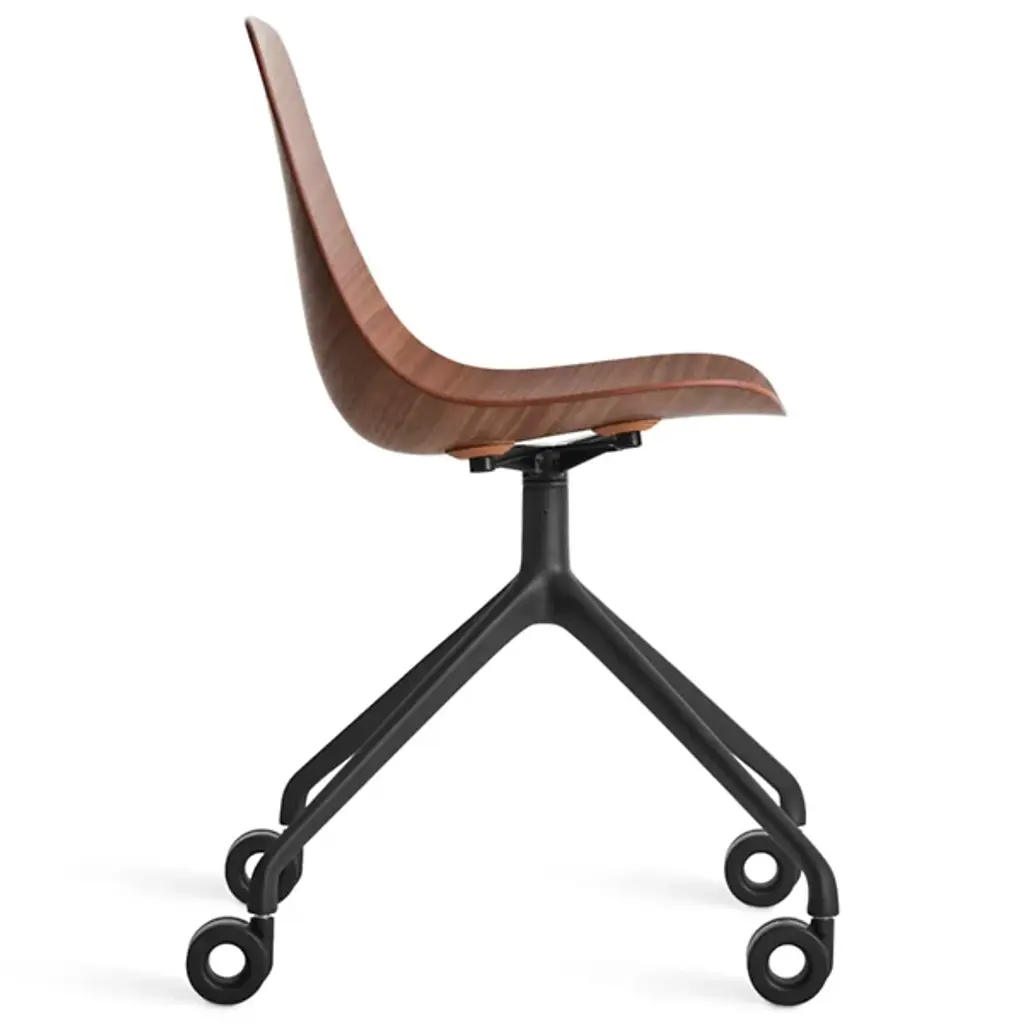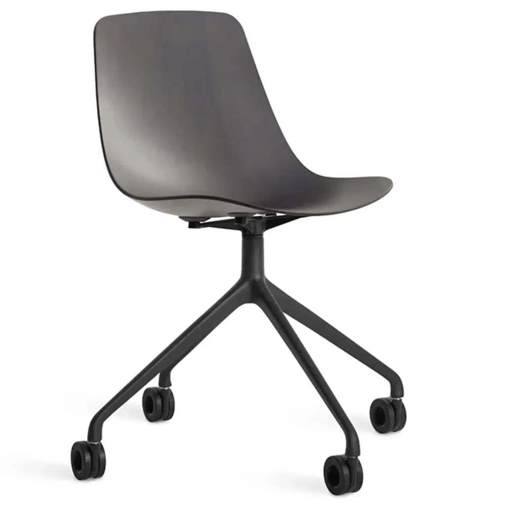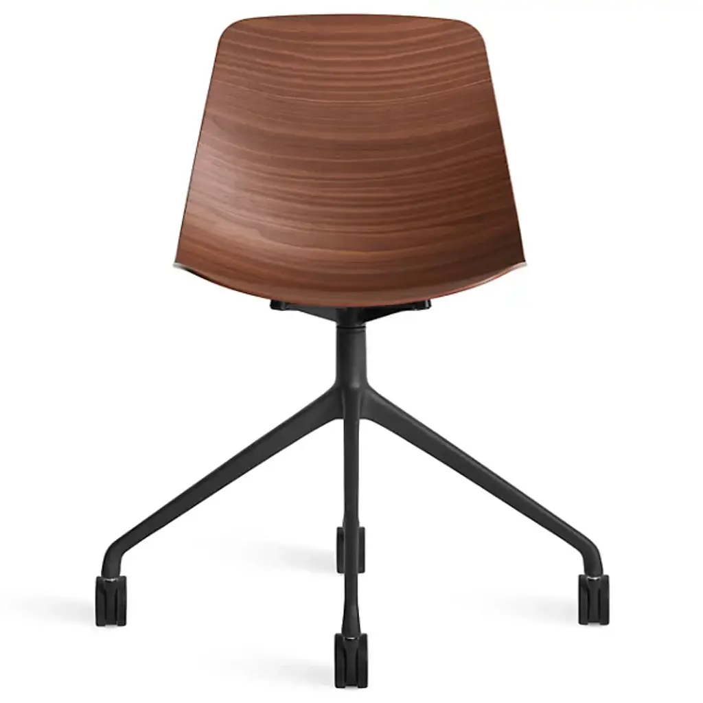 The Clean Cut Task Chair from Blu Dot is a timeless piece that commands attention with its sharp edges and sleek silhouette. Crafted with a 3D bent wood construction, it effortlessly combines comfort with modern aesthetics. The angular powder-coated aluminum frame set atop smooth wheels adds durability without compromising on style, and offering profound maneuverability. Resilient and smoothly adjustable, this chair is suitable for focused work or relaxed lounging, making it a perfect fit for contemporary living spaces seeking sophistication and functionality.