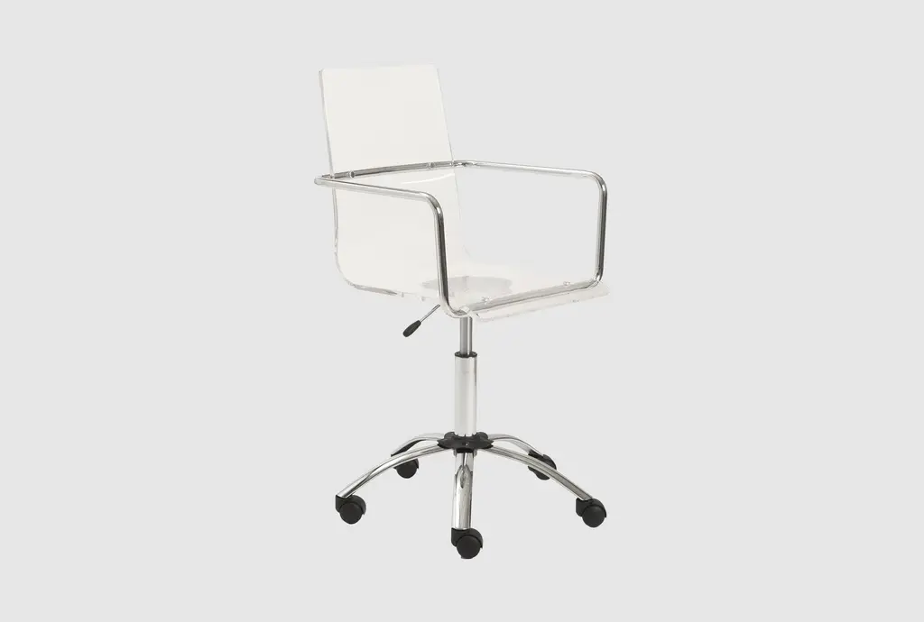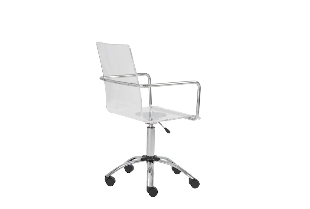 Clear Acrylic And Chrome Rolling Office Desk Chair | Ergonomic | Swivel | Adjustable
