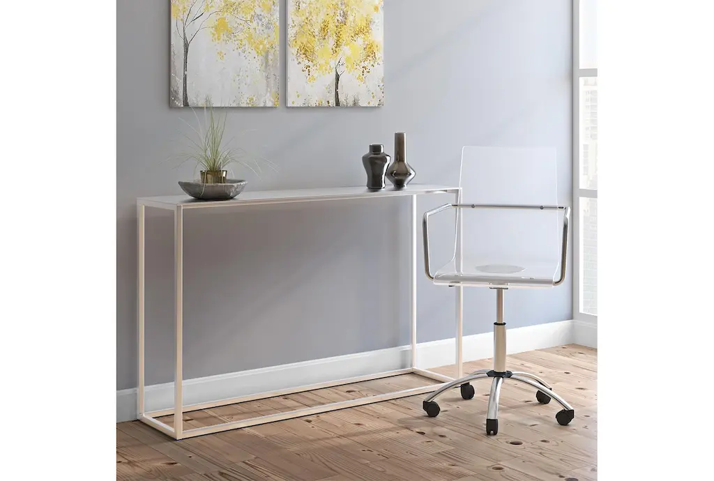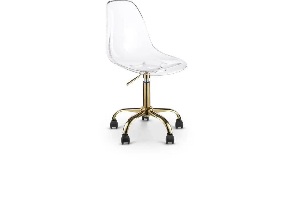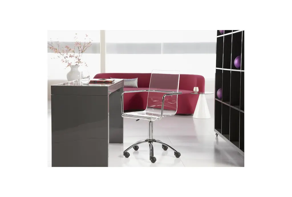 This Clear Acrylic and Chrome Desk Chair is a stunning addition to any contemporary office space, crafted from high-quality plastic with an eye-catching chrome finish. With its convenient wheels, comfortable armrests, and smooth swivel mechanism, this chair is the perfect blend of style and functionality.