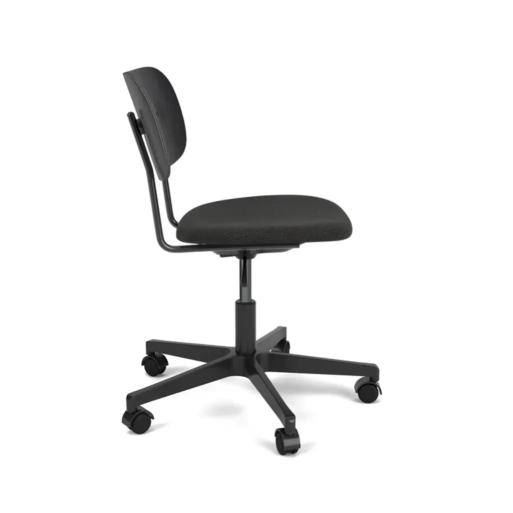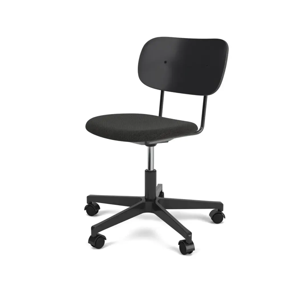 The Co task chair seamlessly integrates sitting comfort and flexible function into its minimalist expression. Designed for a wide range of work settings and set on a five-star swivel base with casters, a height-adjustable feature ensures adaptability to workspaces and user preferences, promoting ergonomic comfort for users of different heights. Together with supportive armrests and an upholstered seat, a flex tilt function enhances comfort, allowing for adjustment to the preferred seating position for optimal support during extended periods of use.