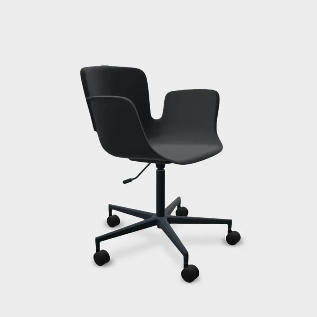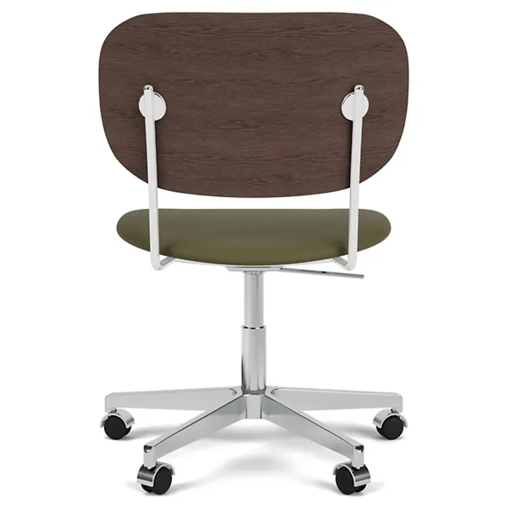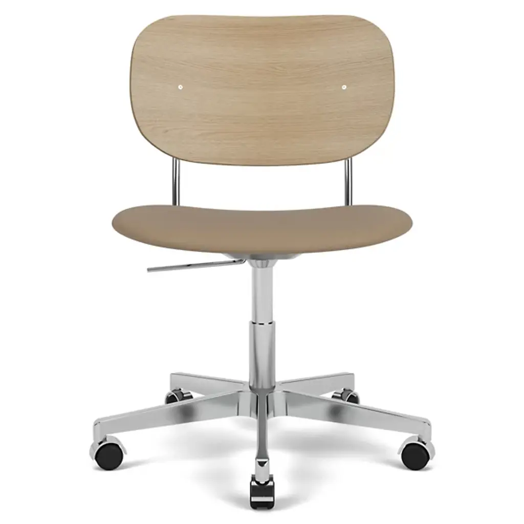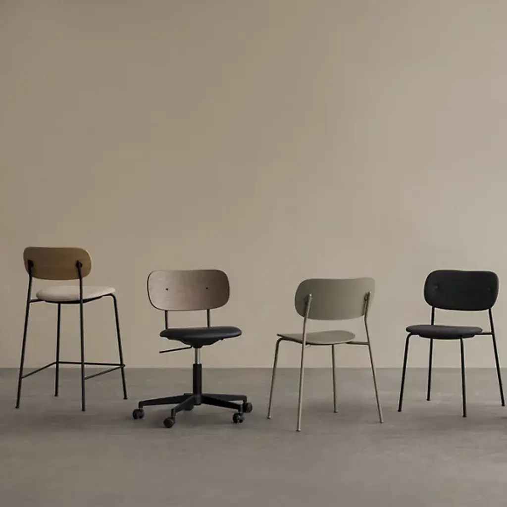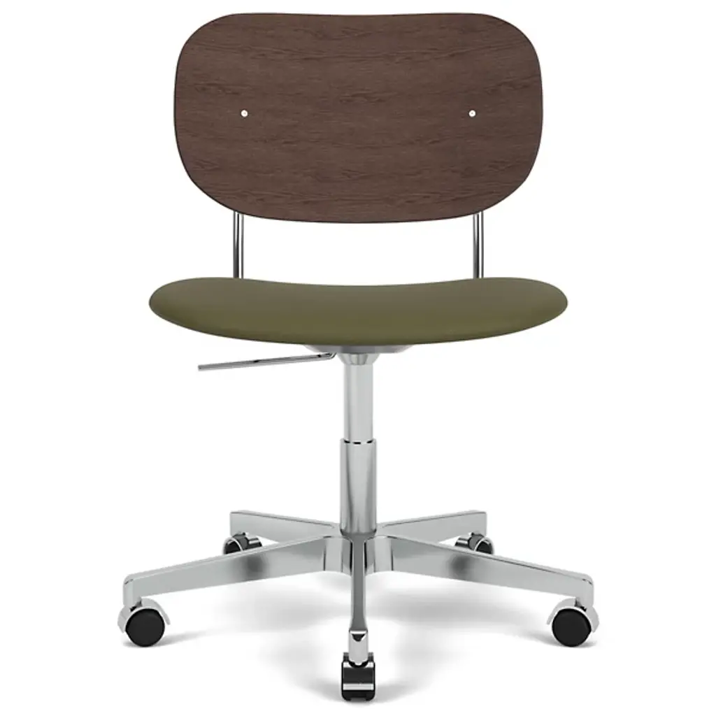 The Co Task Chair, Upholstered Seat from Audo Copenhagen helps you stay on track. It is designed by Norm Architects and Els van Hoorebeeck, who artfully blend contemporary and Scandinavian styles. This task chair caster wheels so you can move effortlessly. It is composed of oak for durability and a natural look. Height adjustability and flex tilt capability allow you to customize your seating experience. Your task chair is foam-filled for comfort and is enhanced by aluminum and steel.