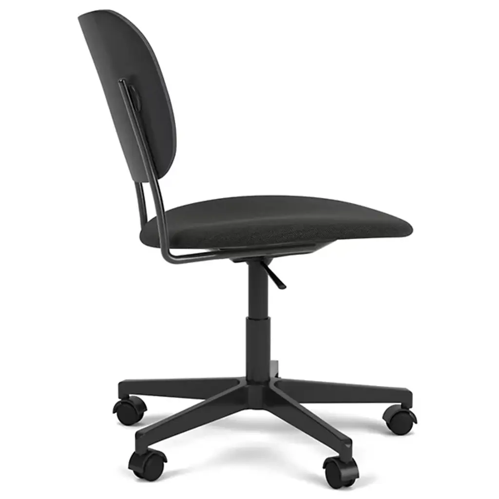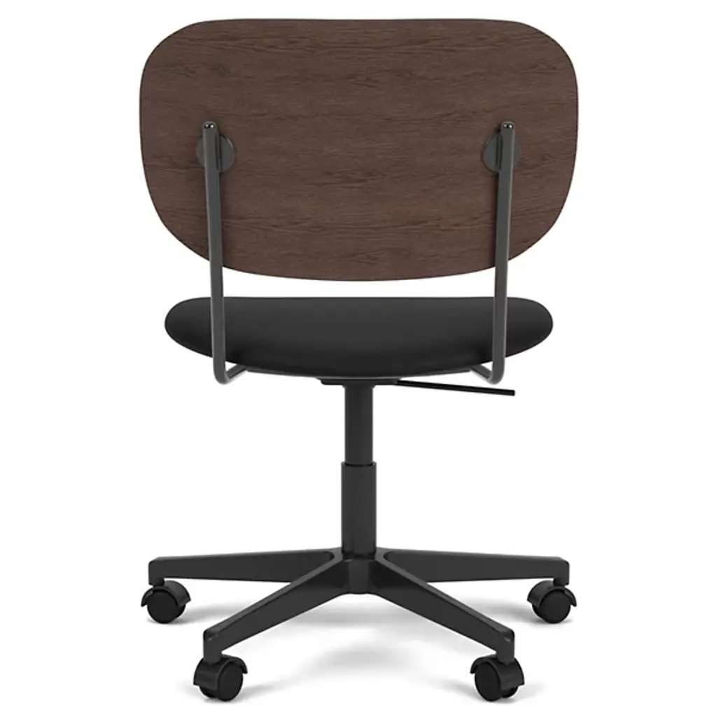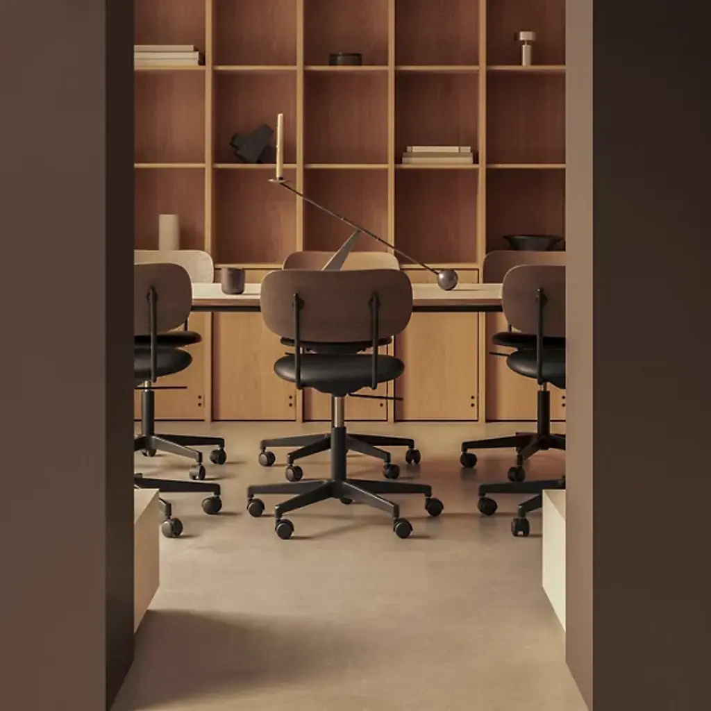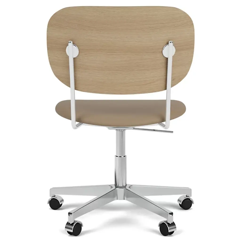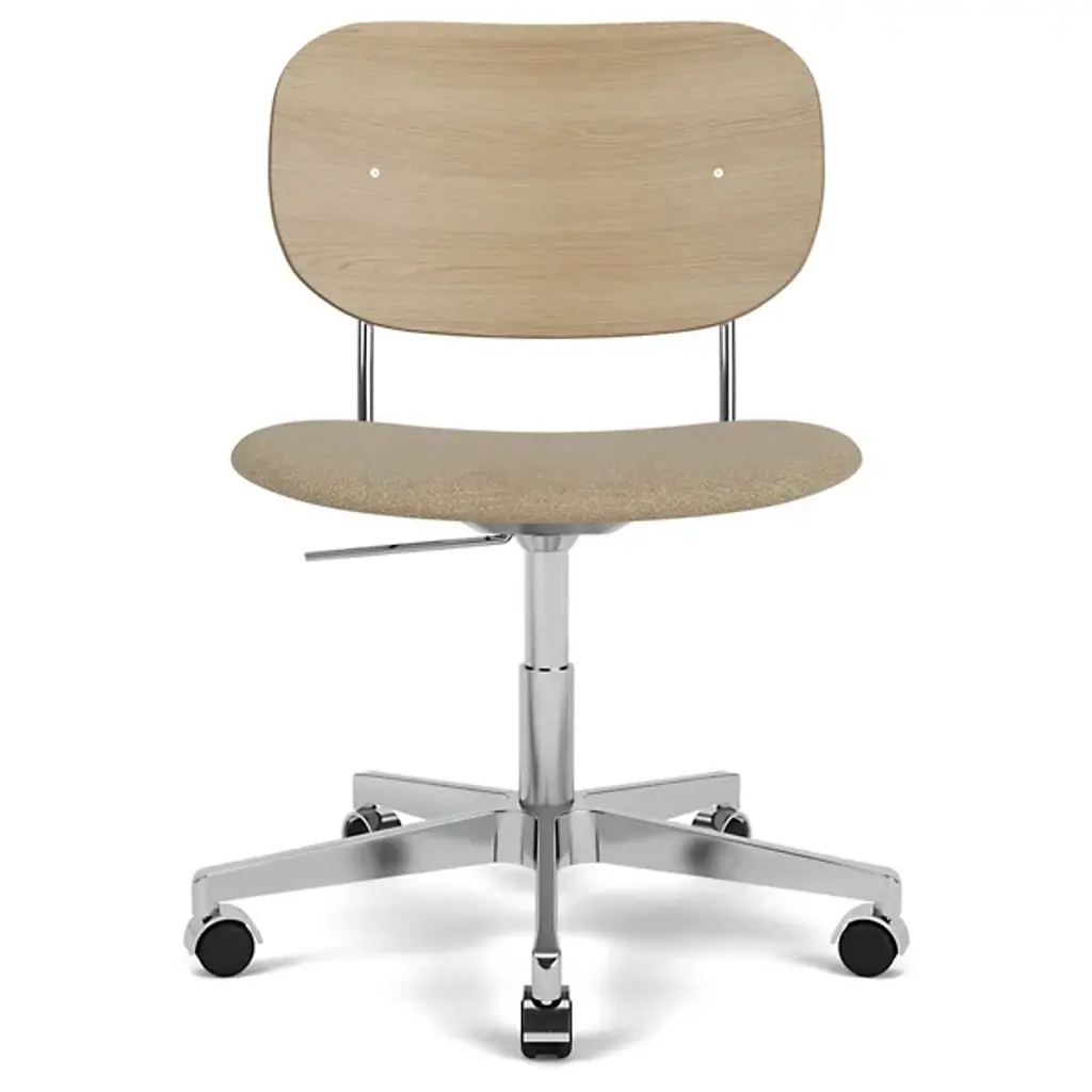 The Co Task Chair, Upholstered Seat from Audo Copenhagen helps you stay on track. It is designed by Norm Architects and Els van Hoorebeeck, who artfully blend contemporary and Scandinavian styles. This task chair caster wheels so you can move effortlessly. It is composed of oak for durability and a natural look. Height adjustability and flex tilt capability allow you to customize your seating experience. Your task chair is foam-filled for comfort and is enhanced by aluminum and steel.