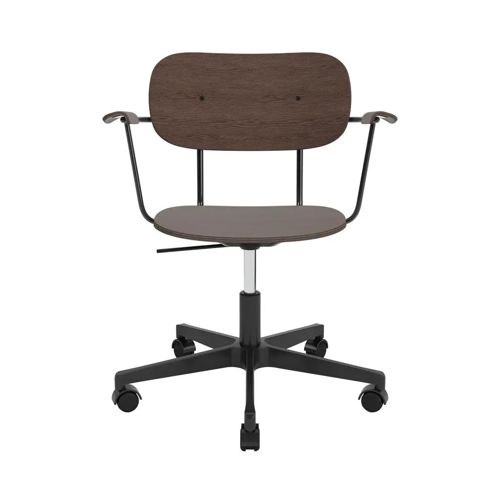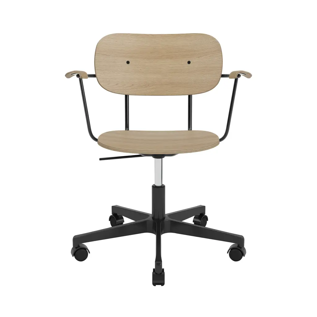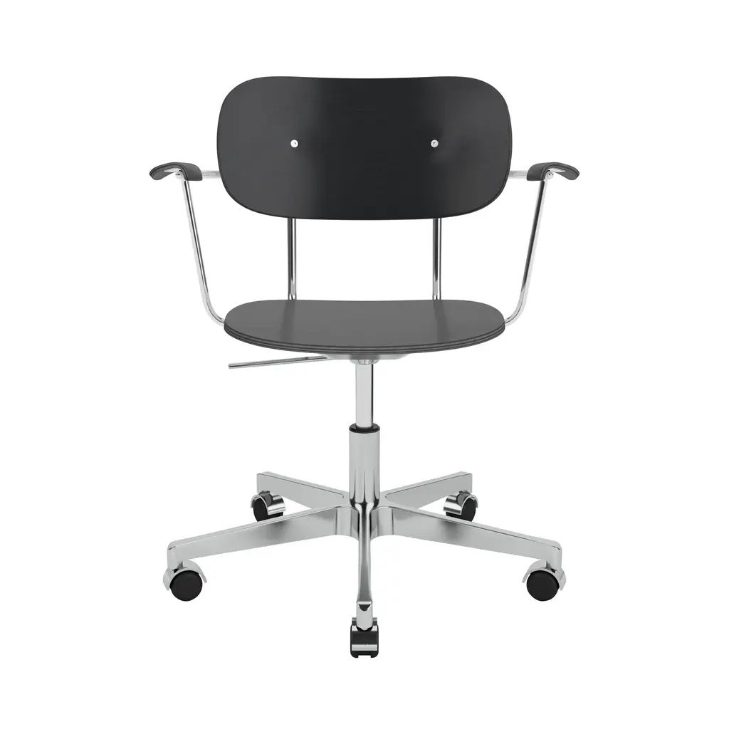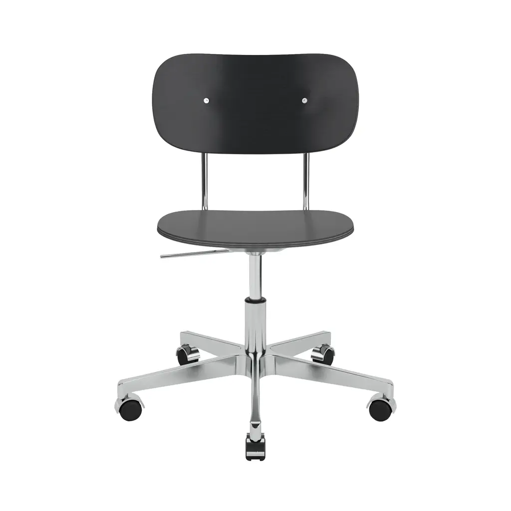 Set on a five-star swivel base with casters, this Co Task Chair variation allows for easy movement in different work environments. The chair includes a height-adjustable mechanism and a flex tilt function, enabling users to adjust their seating position for optimal support during long periods. The Co Task Chair is available with or without armrests.