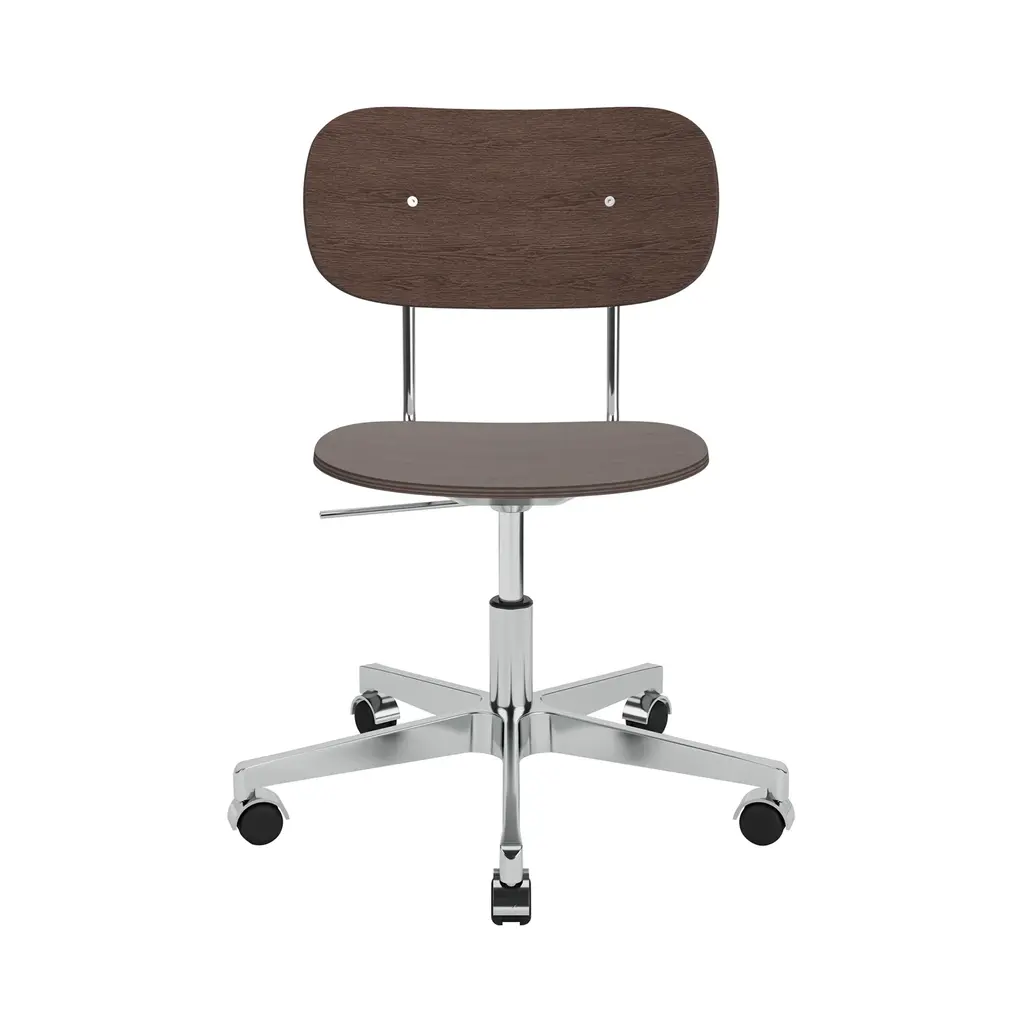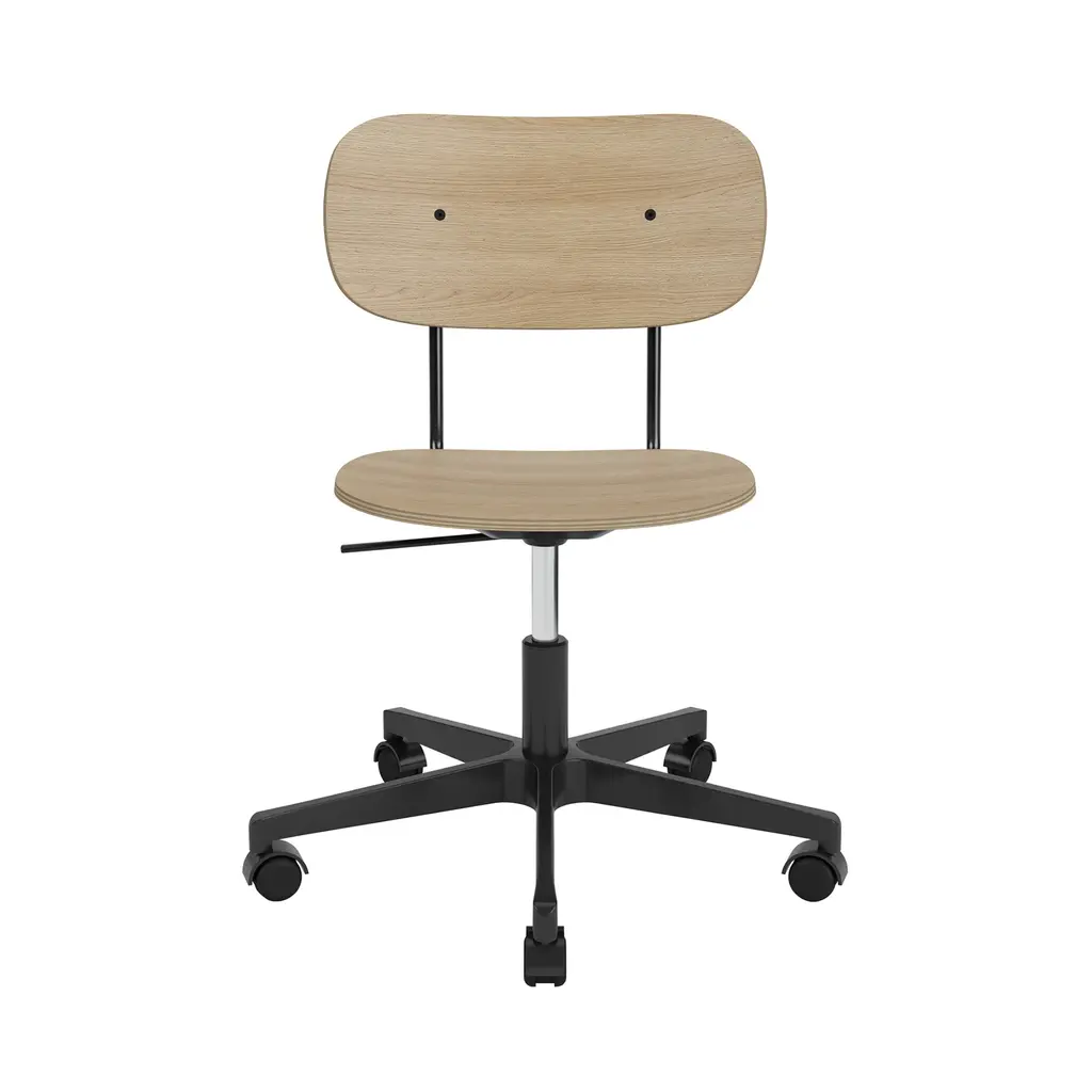 Set on a five-star swivel base with casters, this Co Task Chair variation allows for easy movement in different work environments. The chair includes a height-adjustable mechanism and a flex tilt function, enabling users to adjust their seating position for optimal support during long periods. The Co Task Chair is available with or without armrests.