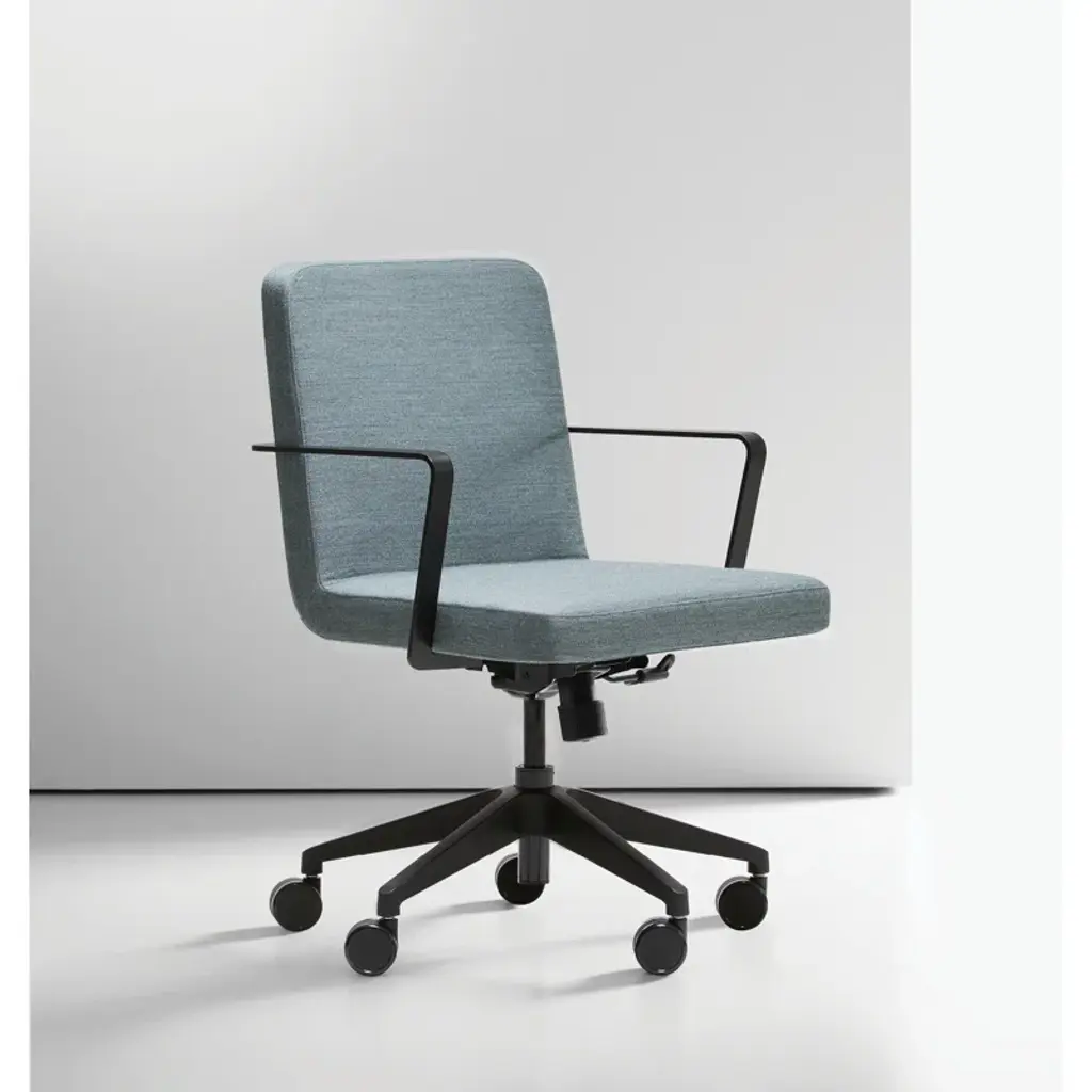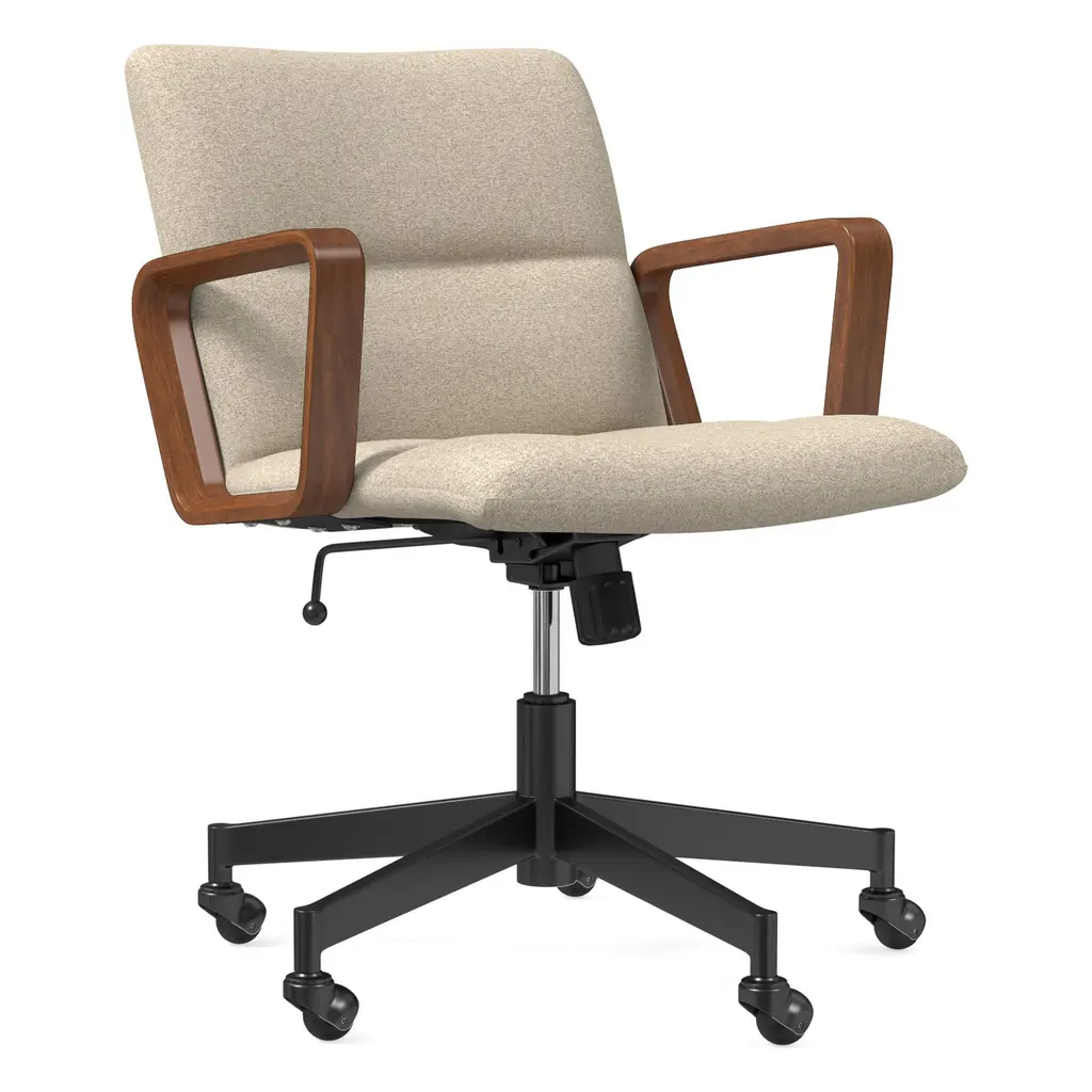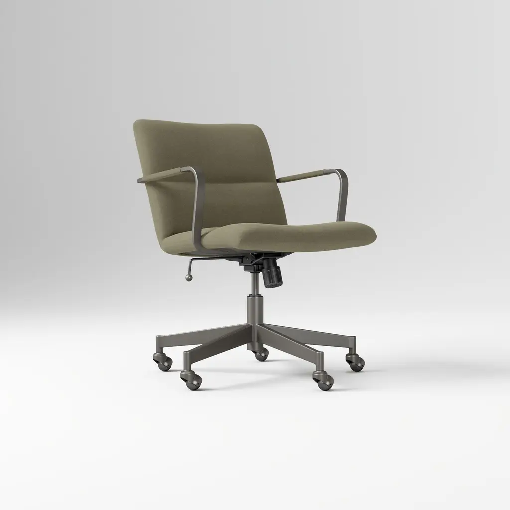Matches everyday comfort with vintage style. Covered in your choice of stylish fabrics. Smoothly glides on five caster wheels. Contract Grade, so you know it's built to last.