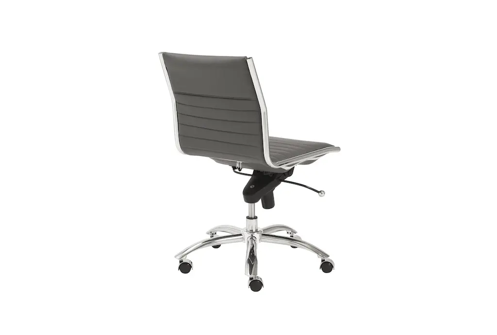 Copenhagen Natural Grey Faux Leather And Chrome Low Back Armless Rolling Office Desk Chair | Ergonomic | Swivel | Adjustable | Lumbar