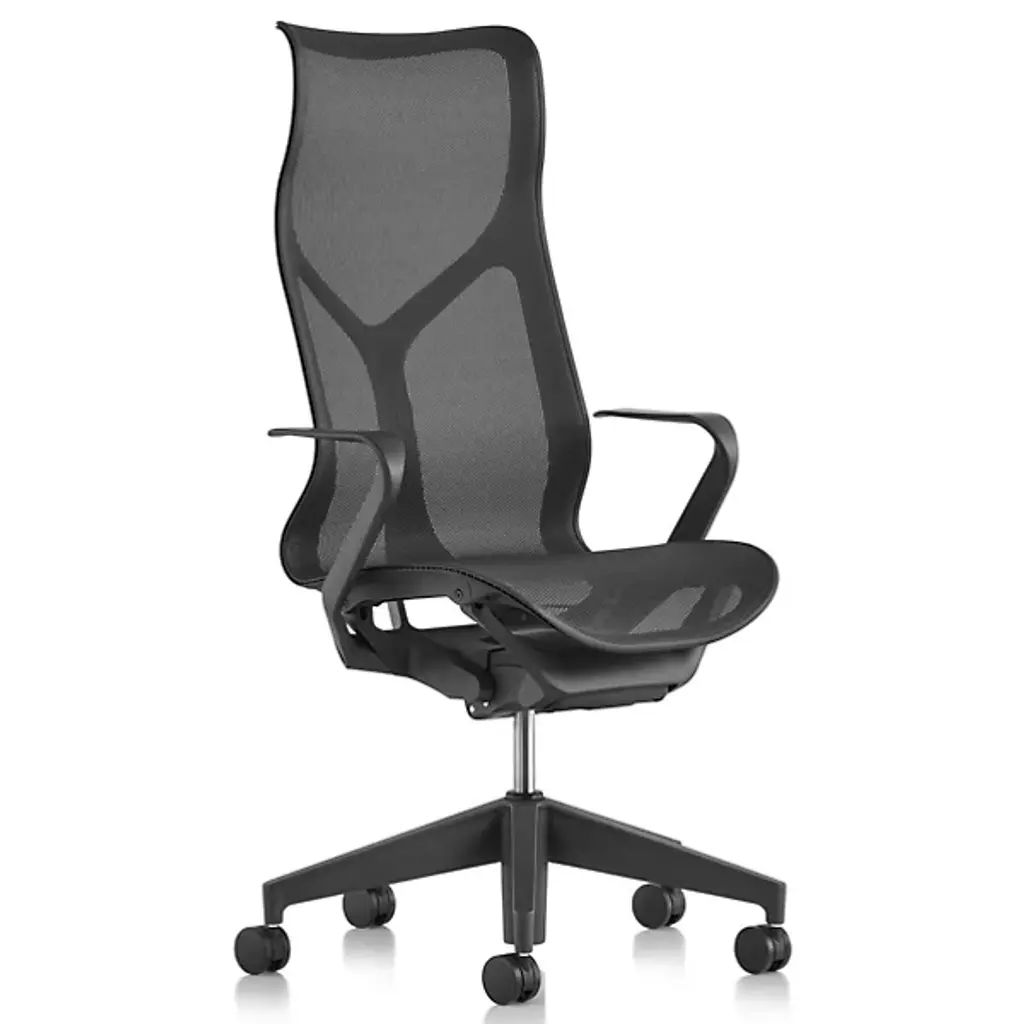 An innovated design fit for all users, the Cosm High Back Chair with Fixed Arms is a high-performance work chair. As soon as you’re seated, your body will form into the chair for total body support, designers at Studio 7.5 took hours of their time to design it’s form and engineer the Cosm Chair for the ultimate experience users can have in this ergonomic work chair. It features auto-harmonic tilt that gives overall balance and easy movement however you move and with its intercept suspension that provides a comfortable form and a bendable frame that cohesively works together in providing a breathable and airy feeling. The office chair has a high-back that forms to the body which allows upper-thoracic support for everyday tasks. Whether it be at home, an office, or workspace area, the Cosm High Back Chair with Fixed Arms will accommodate all modern environments.