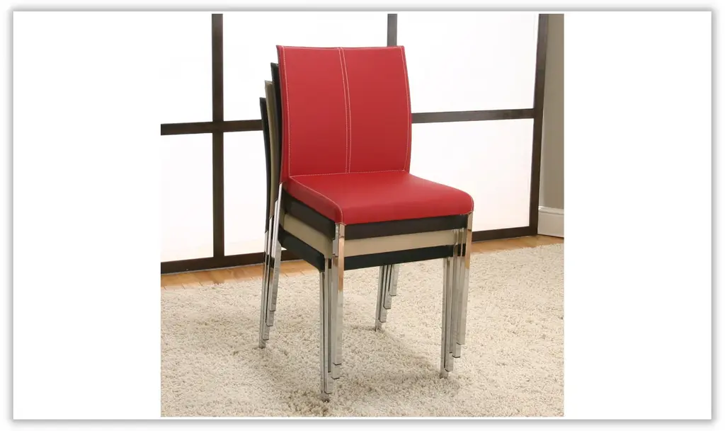 Introducing the Cramco Corona PU Chrome Stack Chairs – a versatile and practical addition to your home. These chairs are designed with a focus on functionality and style. The chrome legs provide durability and a modern touch, while the black, brown, beige, or red upholstery options allow you to match your chairs to your existing decor seamlessly. Crafted for commercial-grade use, these stack chairs are fully welded for stability, ensuring they stand up to daily wear and tear. The 100% Polyurethane fabric not only adds a layer of comfort but also enhances the overall durability of the chairs. In a sleek and contemporary style, these stackable chairs effortlessly blend into any room in your home. Whether you need extra seating in the dining area, the living room, or even stylish office chairs, these stack chairs offer a lot to like. Elevate your space with the practicality and chic design of the Cramco Corona PU Chrome Stack Chairs.Note:Chair will sold in Pair of two