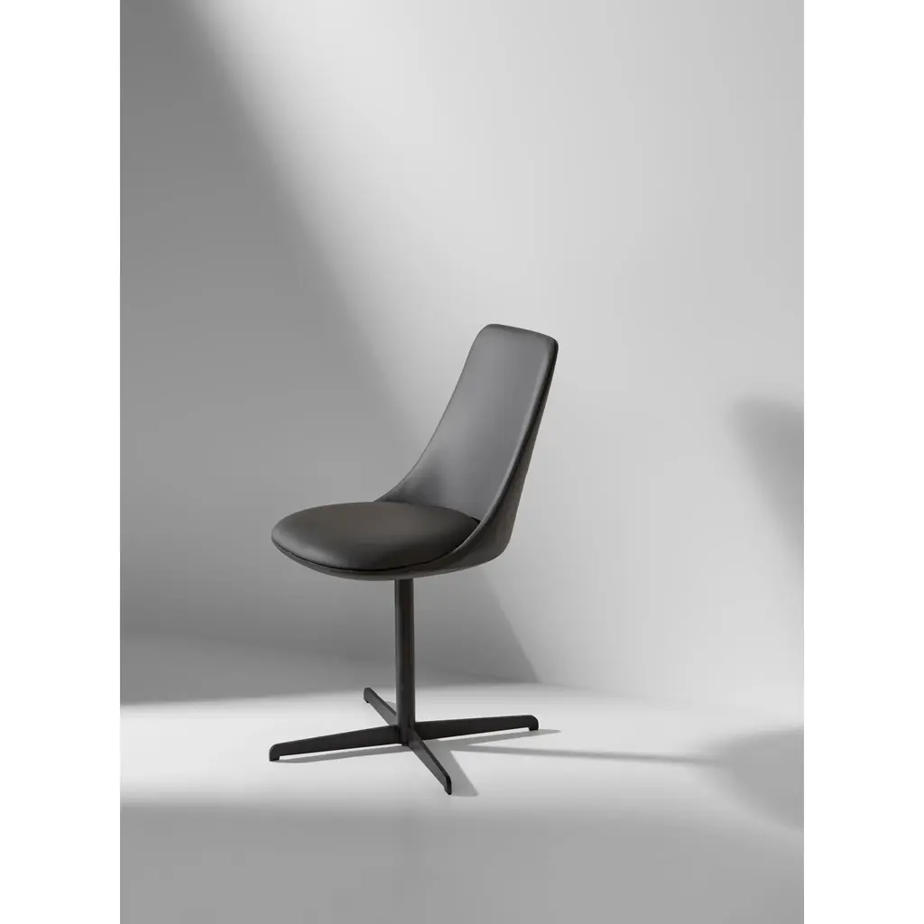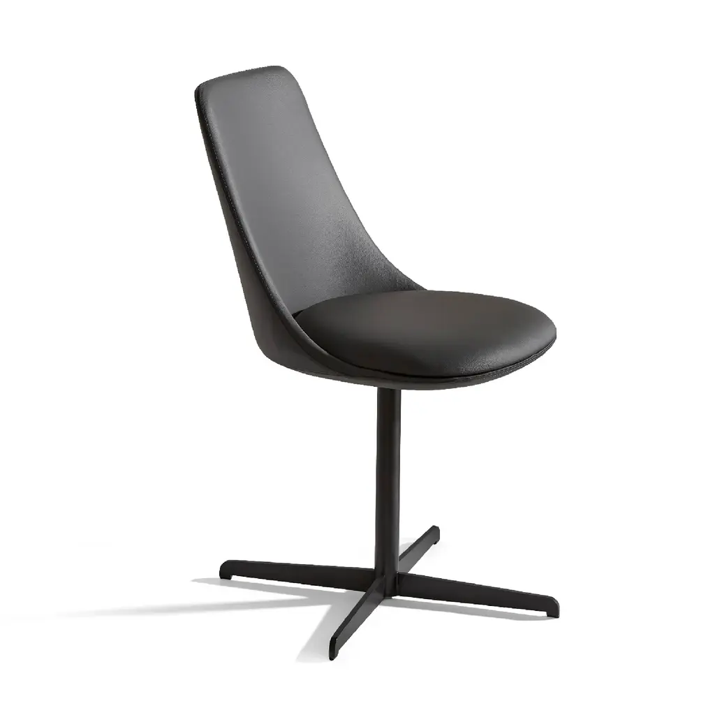 The elegant office version of the Itala chair is striking on account of the proportions between the swivel base and the seat/backrest unit. The slight tapering of the latter is calculated to optimize the ergonomic performance and comfort of the seat, which is significantly improved. This is an essential quality for prolonged use of the chair in the workplace. The Itala Office is available with a swiveling metal base and with armrests in the Miss Itala Office version.