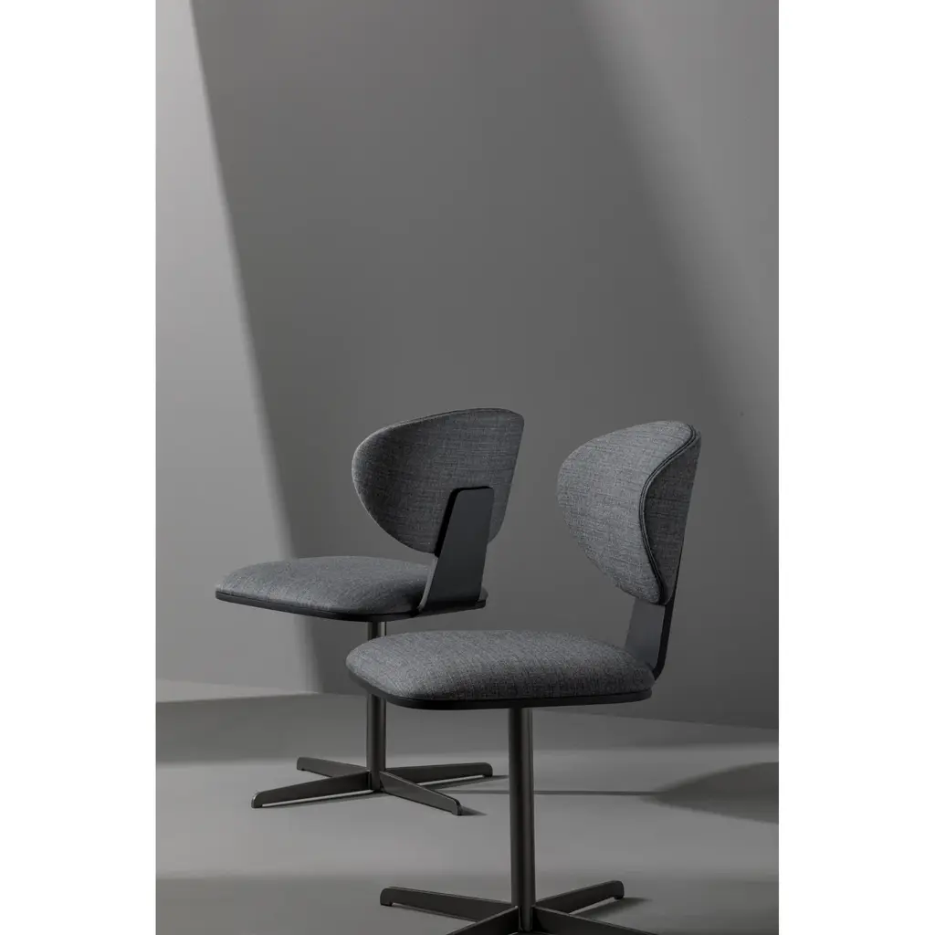 The Olos Office chair, with a cross-shaped metal base and swivel seat, is characterized by its sinuous and essential design. The harmoniously curved laminated wood shell and ergonomically molded polyurethane seat combine comfort of form and balance of proportions. Inspired by Nordic design, Olos Office has a refined and versatile style, allowing it to be placed in home or office settings.