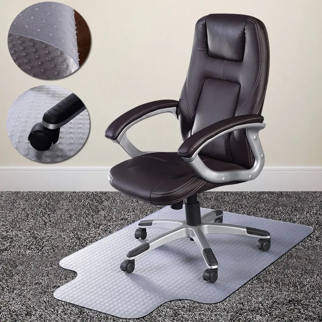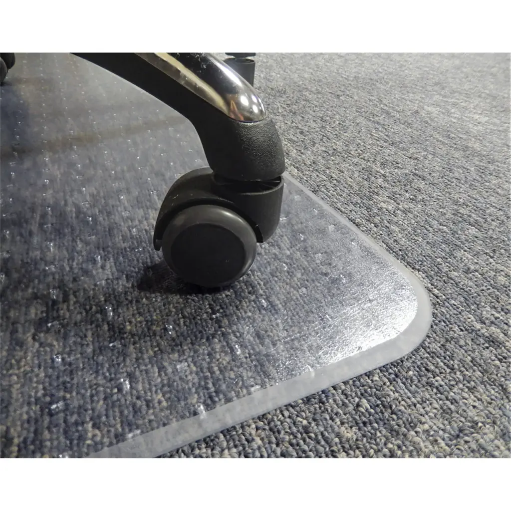 Protect your carpet and add extra convenience to your home office with this work chair mat. The mat is crafted from durable PVC and features a studded back that grips your carpet without damaging it. The convex chair mat features a lip to help keep your office chair on the mat.Features: