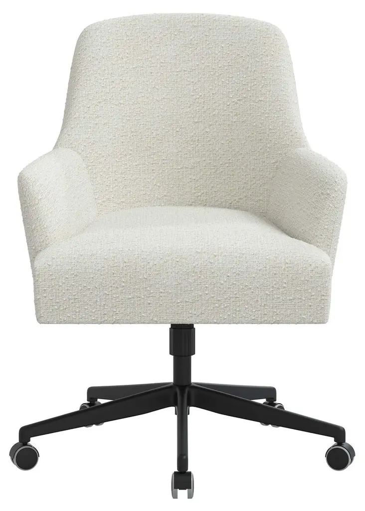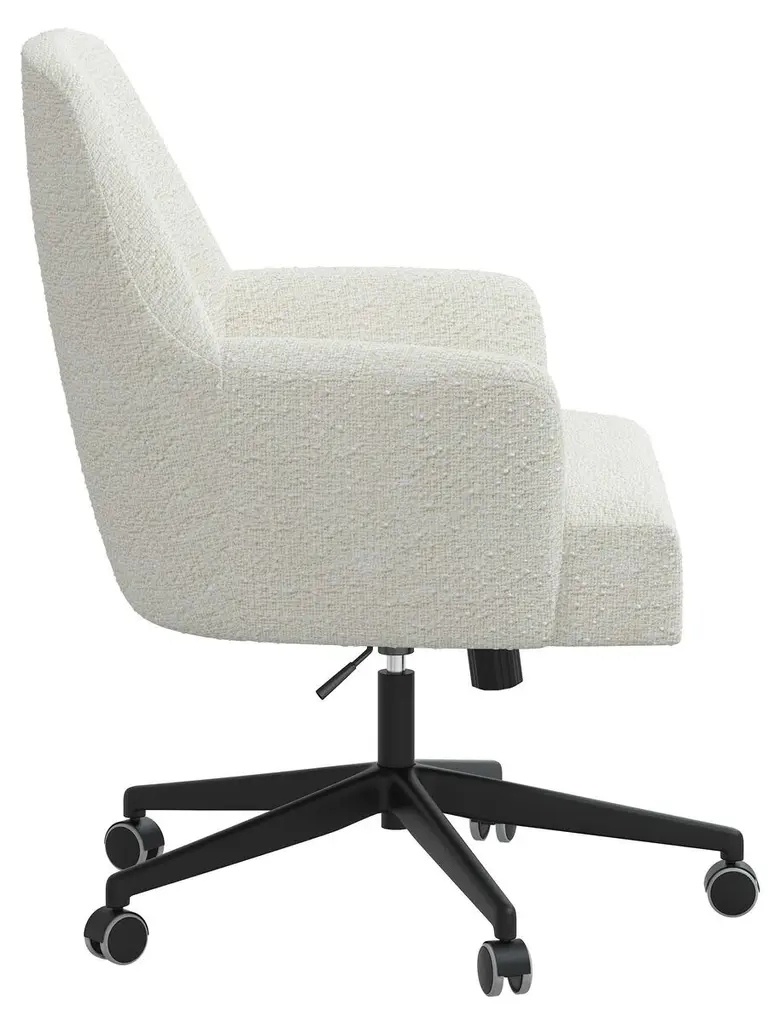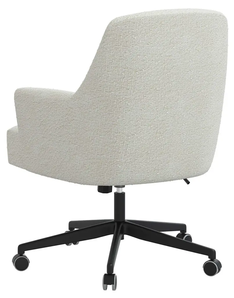 Made in the USA and upholstered in plush bouclé-like fabric, this desk chair has an adjustable swivel base and casters for easy mobility. Generous cushioning ensures optimal comfort no matter how long your workday.