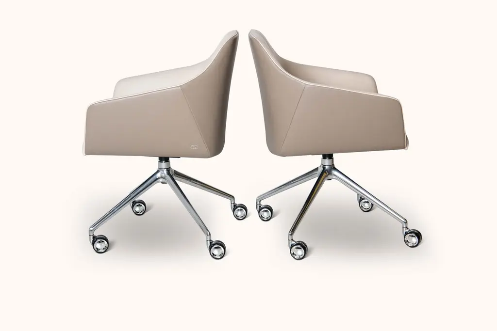 A relaxing miracle for all desires. Low- or high-backed chairs with a slender star base, as dining chairs or lounge chairs, for uplifting seating comfort with the highest esthetic standards. Formally exciting transition between the seat and back shell as a characteristic feature. Different leather qualities and colors available for the outer and inner shell. Thanks to the newly added, stylish wooden frame of the DS-278, it succeeds in adding a particularly warm, appealing note to any cozy atmosphere, definitely inviting you to linger. With the addition of a four-star base on castors, the relaxation wonder DS-279 achieves a move into a sculpture-inspired office and work atmosphere.It is their lightness and the special quality of being unique and flexible at the same time that set DS-278 and DS-279 apart from the rest. The chairs form a consistent continuation of Christian Werner’s family of armchairs and his partnership with De Sede, which already brought forth the DS-277 relax armchair. The three models can be combined harmoniously and offer appealing seating comfort for every need. With DS-279, the different base frames meet all the requirements – from the elegant wooden leg to the stylish four-star swivel base. In leather or fabric, in an exciting combination of materials or with colored contrasting seams: the variety of possible designs underscores the individuality of this shell chair. In its Minimalist contours, it is subdued in form and at the same time impresses with the outstanding craftsmanship of its details. Inspired by the different versions of the DS-278 and DS-279 chair families, the De Sede design team expanded the range of bases. The new wooden frame of the DS-278 is light and inviting for any reception or waiting area and at the same time cozy for the home. With the four-star base of the DS-279, on the other hand, the meeting room or office can easily be transformed into an artistic, inspiring seating miracle. Both chair variants open up even wider use and, thanks to their versatility, adapt easily and stylishly to any living or working dimension.Additional information:Material: LeatherCategory: Select - PerlaType: Nappa leather, lighty pigmentedThickness: 1.2 to 1.4 mmCharacteristics: Elegant in appearance, particularly durable, less sensitive to humidity, spots and light exposure thanks to an easy-care finish. Living unites practical considerations with a high aesthetic.Dimensions: 61 W x 61 D x 84 H cmSeat height: 48 cmArmrest height: 68 cmAvailable in other upholstery options: Living, touch, natural, coloral, craft, velourAvailable in other structural version: DS-279/01, DS-279/51, DS-279/201, DS-279/101, DS-279/301, DS-279/302.