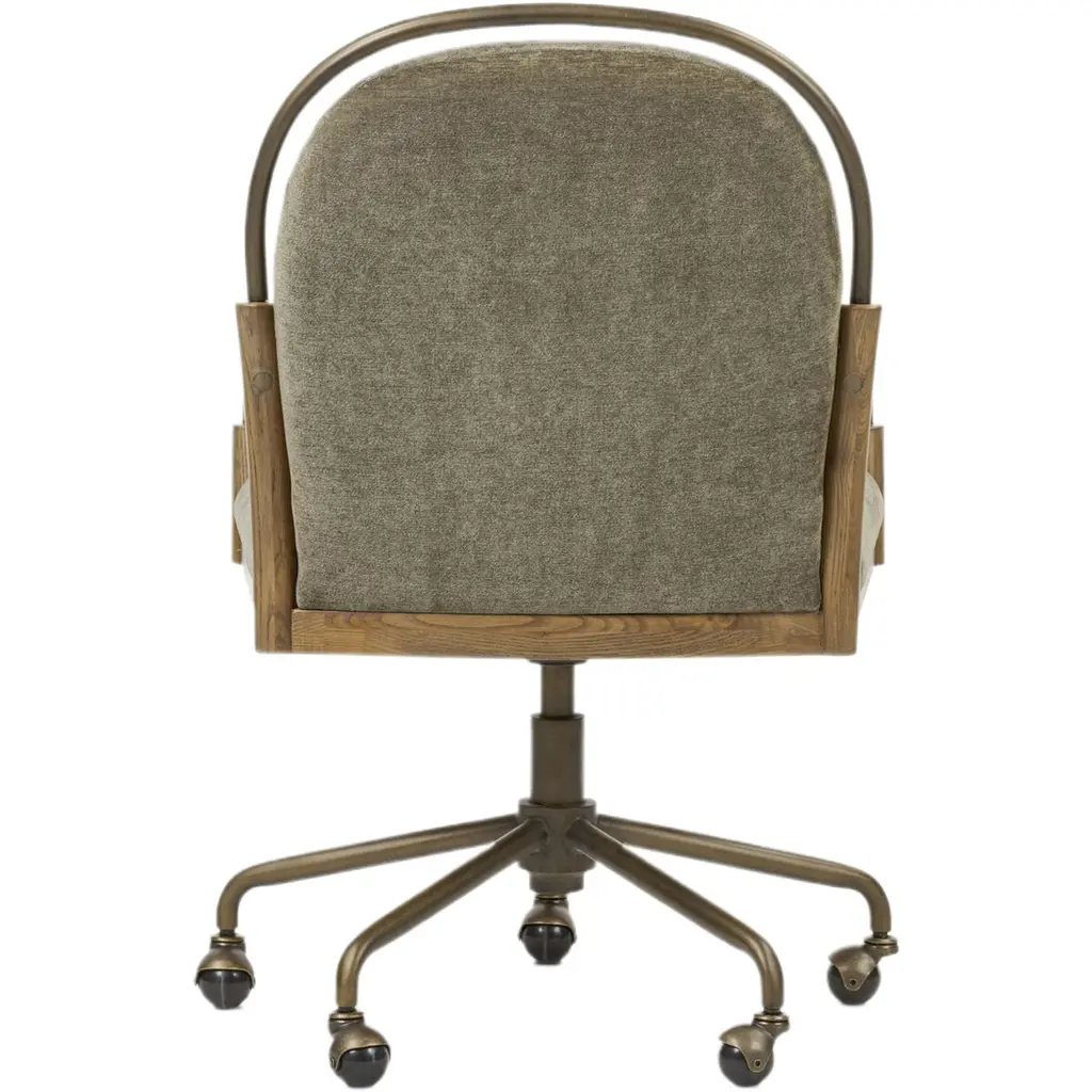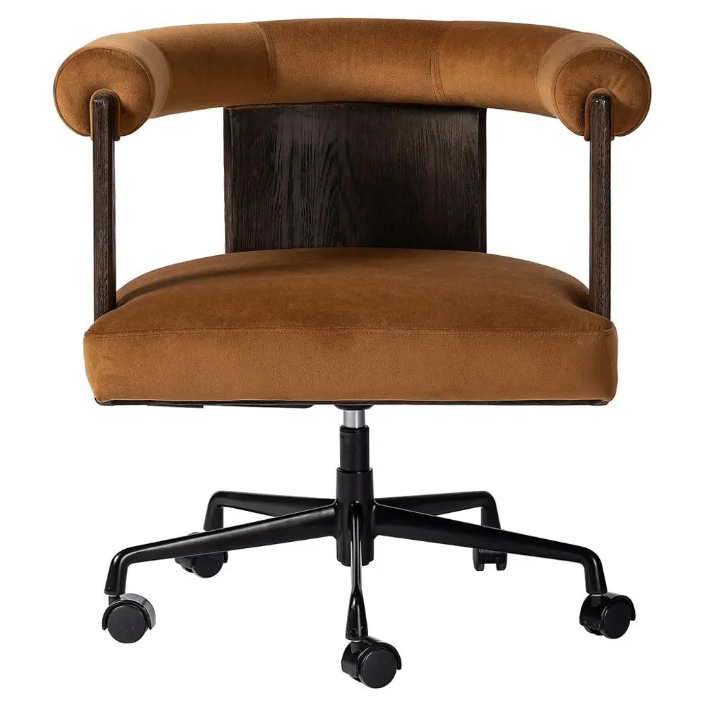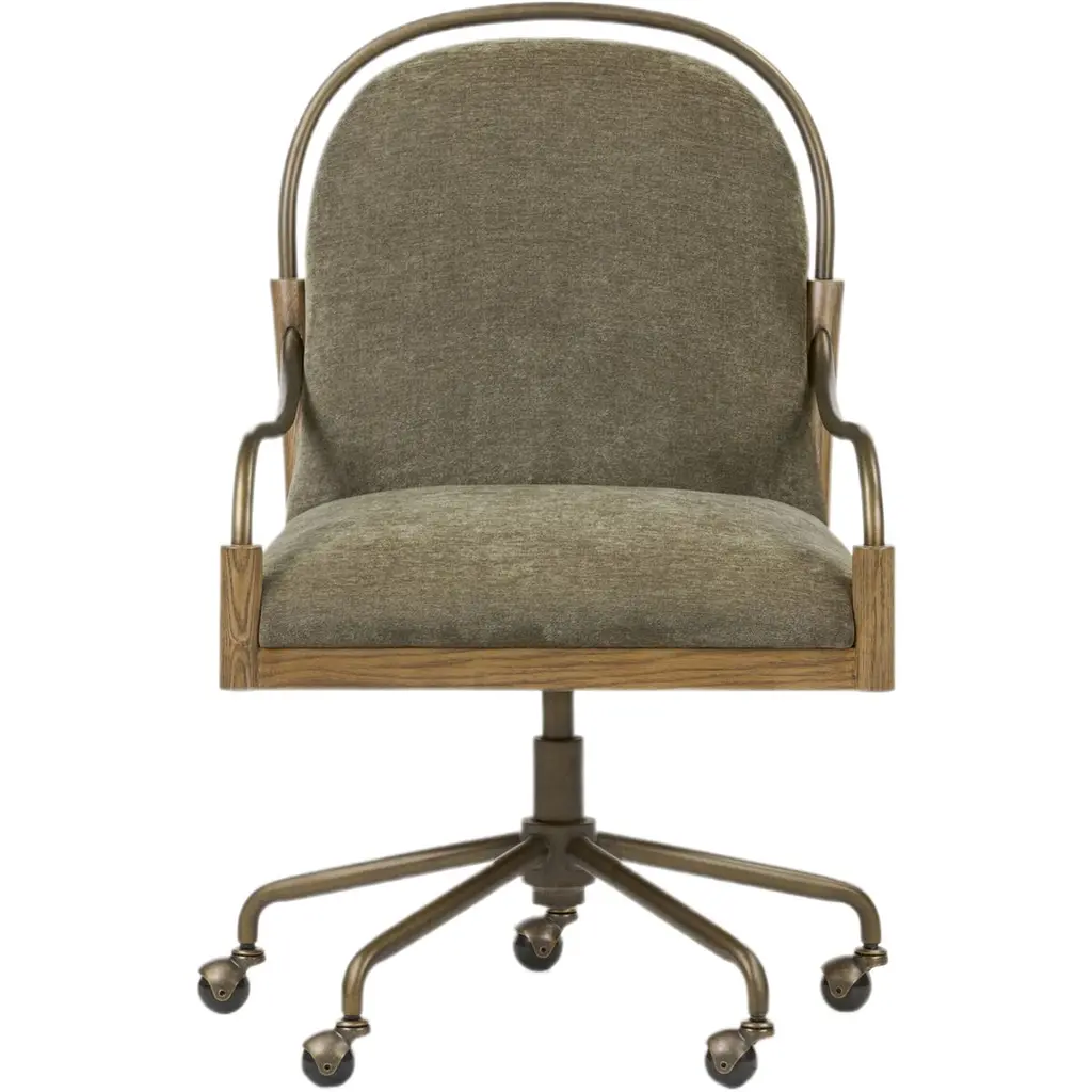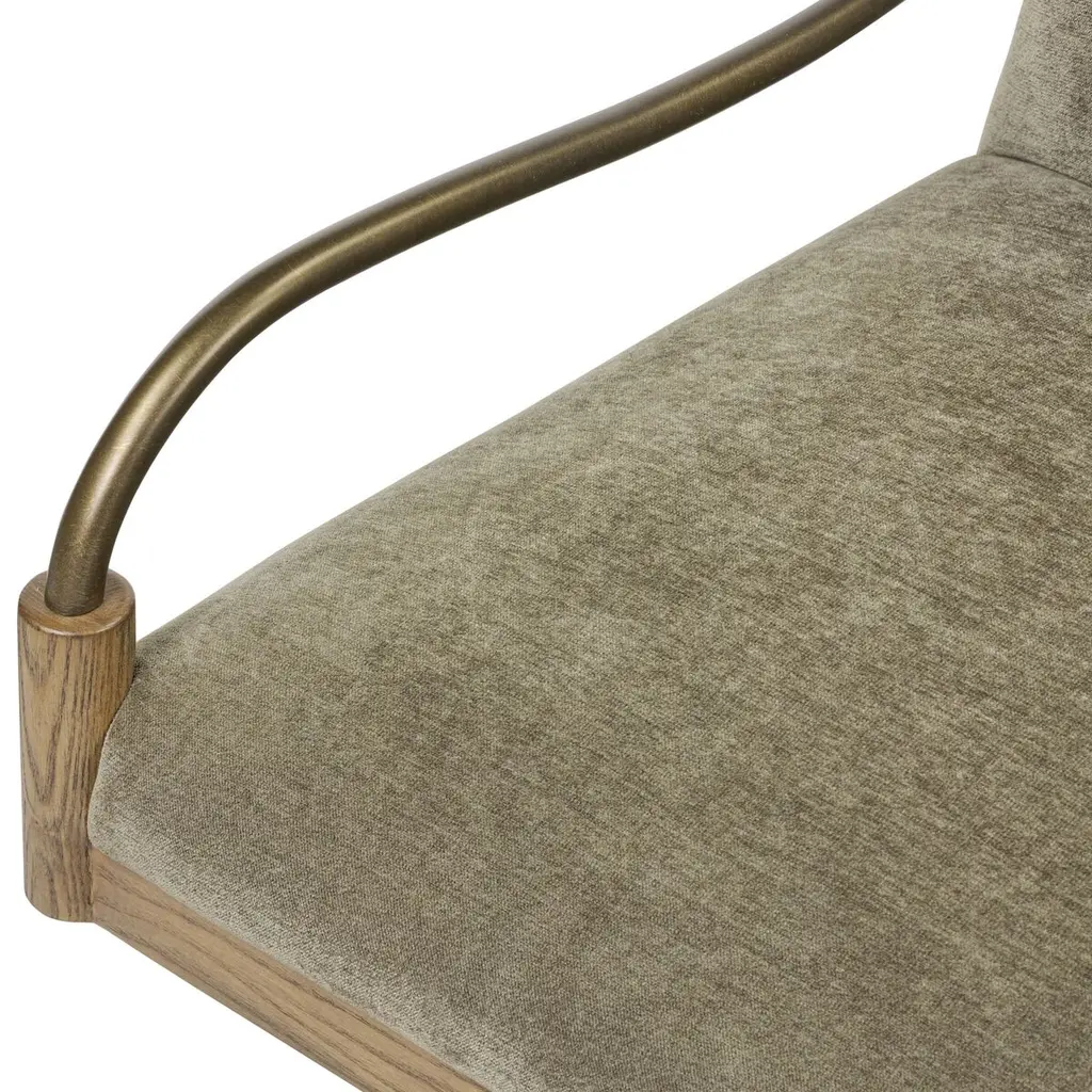 A tribute to traditional artistry and found pieces, this updated 360-degree swivel chair fluidly combines exquisite materials to frame a comfortable S-spring seat. Finished in heavy boucle-like upholstery for a luxe, inviting feel, with casters for ease. A design collaboration by Amber Lewis and Four Hands.