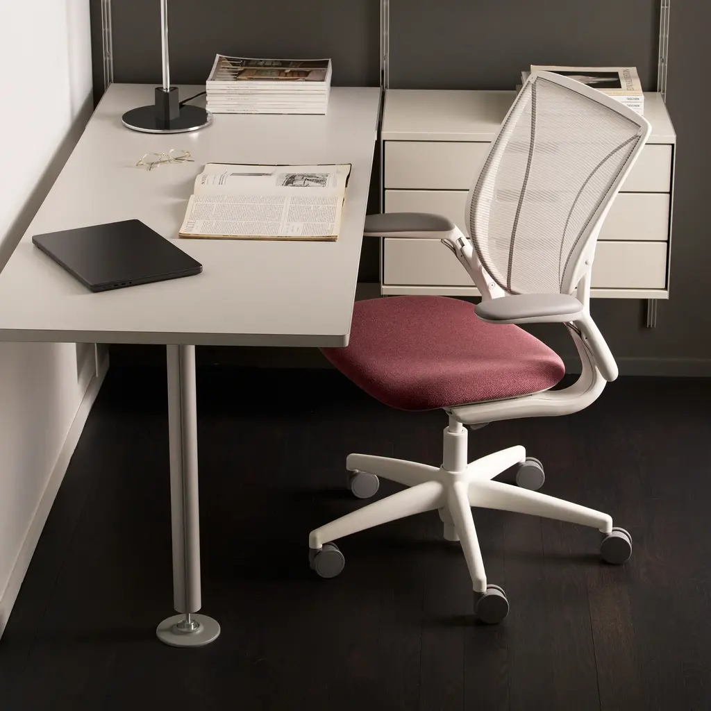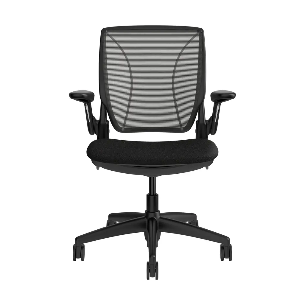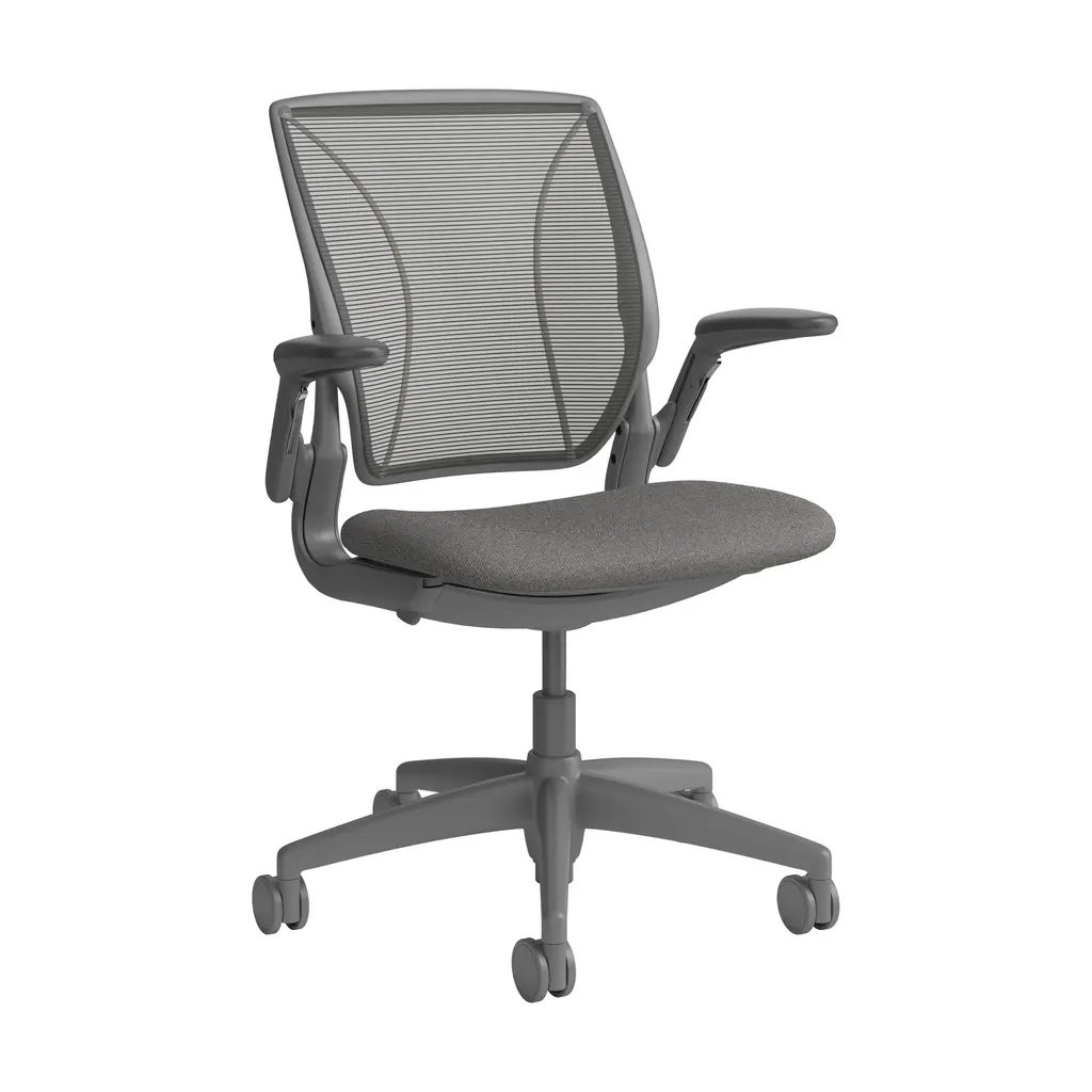 The Diffrient World Upholstered Task Chair from Humanscale exemplifies intelligent design through its self-adjusting weight-sensitive recline mechanism. Distinguished by armrests that articulate with the backrest, this chair delivers personalized ergonomic support for each individual. Its minimalist construction ensures both aesthetic longevity and environmental responsibility—as a Living Product Certified piece, it actively contributes to climate, water, and energy positivity, elevating both your workspace and environmental standards with sophisticated functionality. Highlights