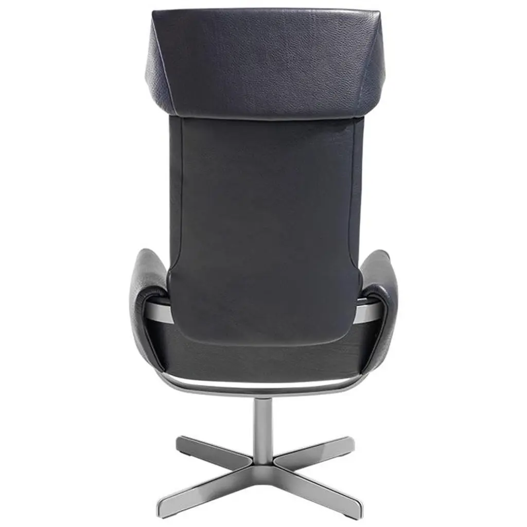 Downtown is a swivel leather office chair with 4-Spoke base with armrests by Poltrona Frau, design by Jean-Marie Massaud.DownTown is the armchair (ideal for working) specially dedicated to demanding decision-makers whose their choice depends on comfort and a refined elegance.A technical seat that look like a silhouette; handcrafted by Poltrona Frau assuring the highest quality.More than a sculpture, DownTown is a sensual and characteristic creation by Jean-Marie Massaud.Downtown is available in 5 versions: President, Executive, Managerial, Meeting and Visitor. The upholstery, embellished with tone-on-tone or contrast stitching, is made with Pelle Frau® leather from the Color System, and is also available in a version with micro-perforations on the inner surface of the backrest, armrests and cushion.In the President, Executive, Managerial and Meeting versions, the five-spoke resting base, available in either polished aluminium or with a black finish, is fitted with soft, self-blocking “W” type wheels that adapt to all types of flooring. The Visitor version has a 4-spoke base with swivel plastic glides that are, on request, also available for the other versions.The President, Executive and Managerial versions are height adjustable and rotate by pulling the lever beneath the seat on the right. The “Syncron” turning mechanism for the seat and backrest allows the armchair to easily accompany the body’s movements, thereby guaranteeing extraordinary comfort. The armchair’s mechanism allows it to be locked into 4 different positions.