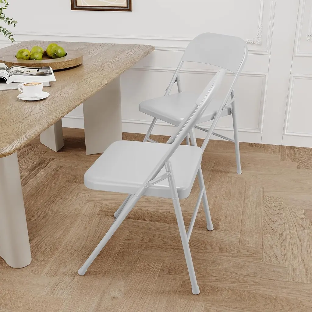 Effortless Folding Convenience: Enjoy the ease of this no-assembly-required folding design, allowing you to set up and pack away the chairs in seconds, making them perfect for home, office, or outdoor use. Ergonomic Comfort: Crafted with an ergonomic curved backrest, these chairs provide exceptional support and relaxation, ensuring a comfortable seating experience whether you're using them for long or short periods. Sturdy and Dependable: Featuring an innovative triangular structure, these folding chairs can support up to 350 pounds, making them durable and suitable for a wide range of occasions, from family gatherings to commercial events. Protective Floor Pads: Equipped with non-slip leg pads, these chairs effectively protect your floors from scratches and prevent any wobbling on uneven surfaces, ensuring the safety and stability of your seating experience. Multifunctional Versatility: Adaptable to various settings, these folding chairs can serve as dining chairs, office chairs, camping chairs, or reading chairs, making them the ideal choice for every household and a wide range of activities.
