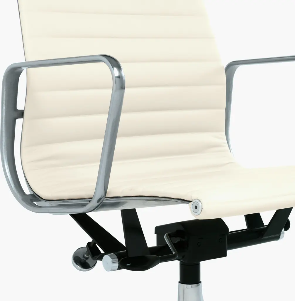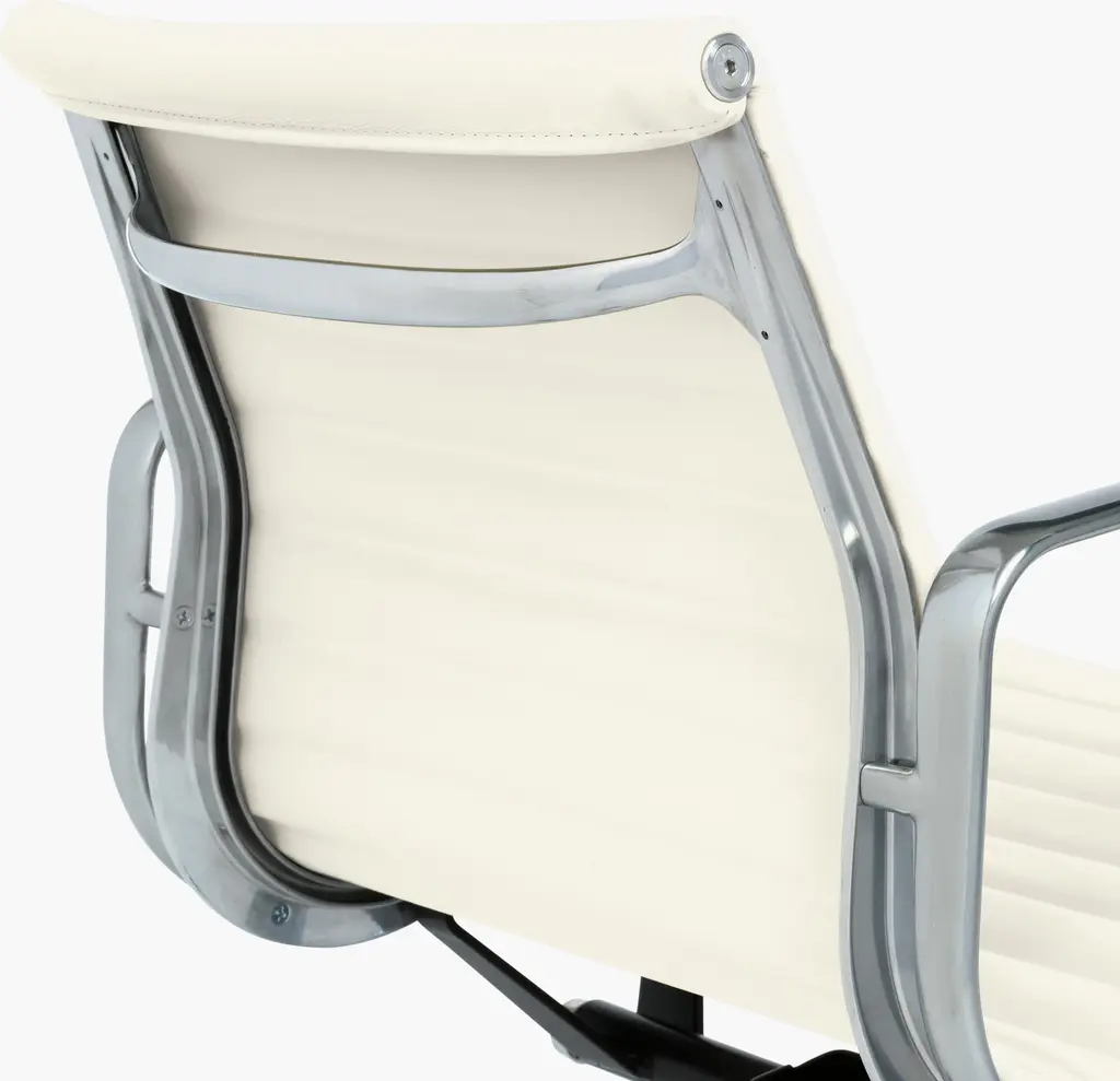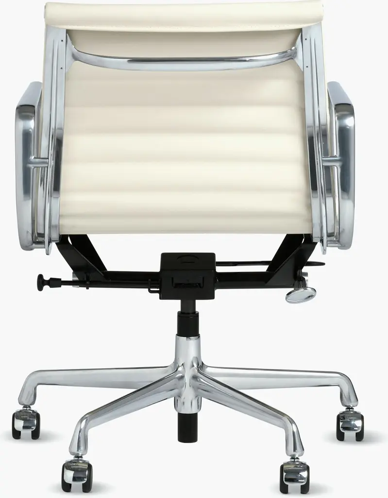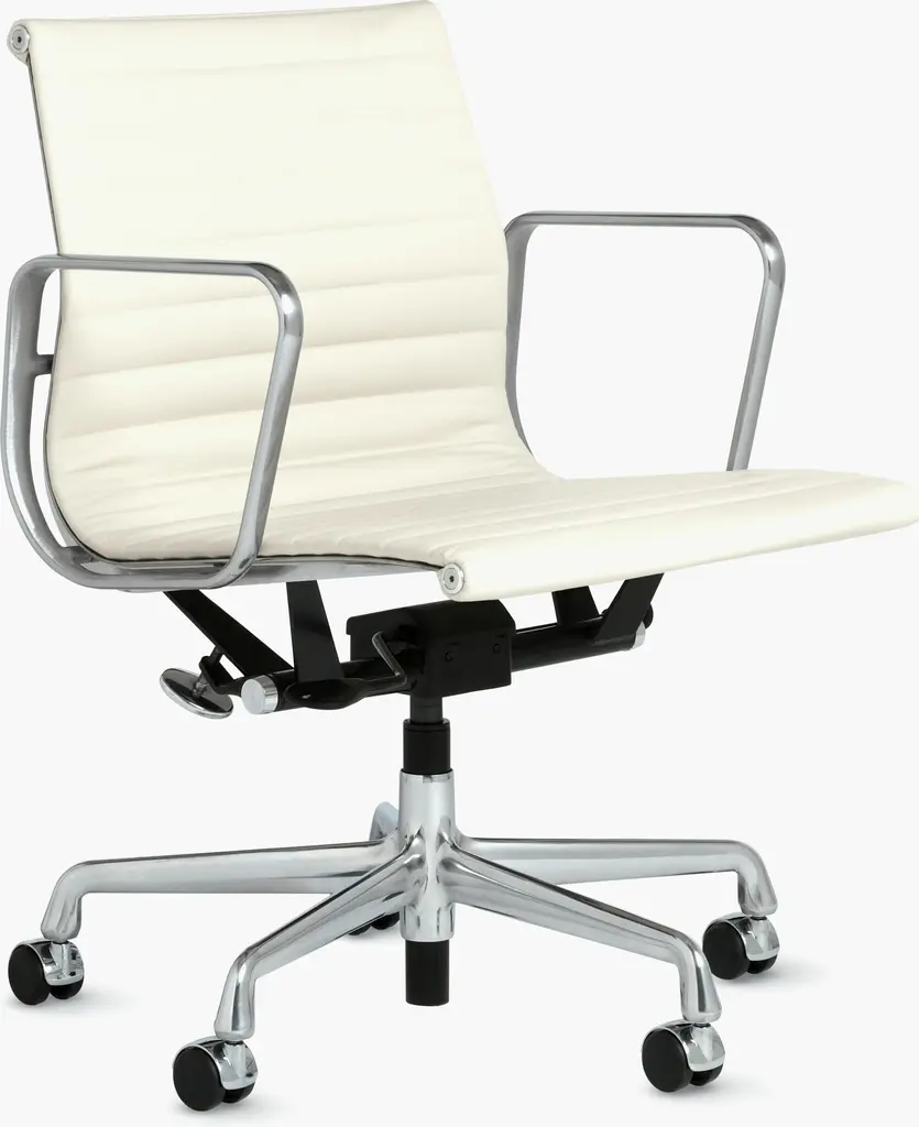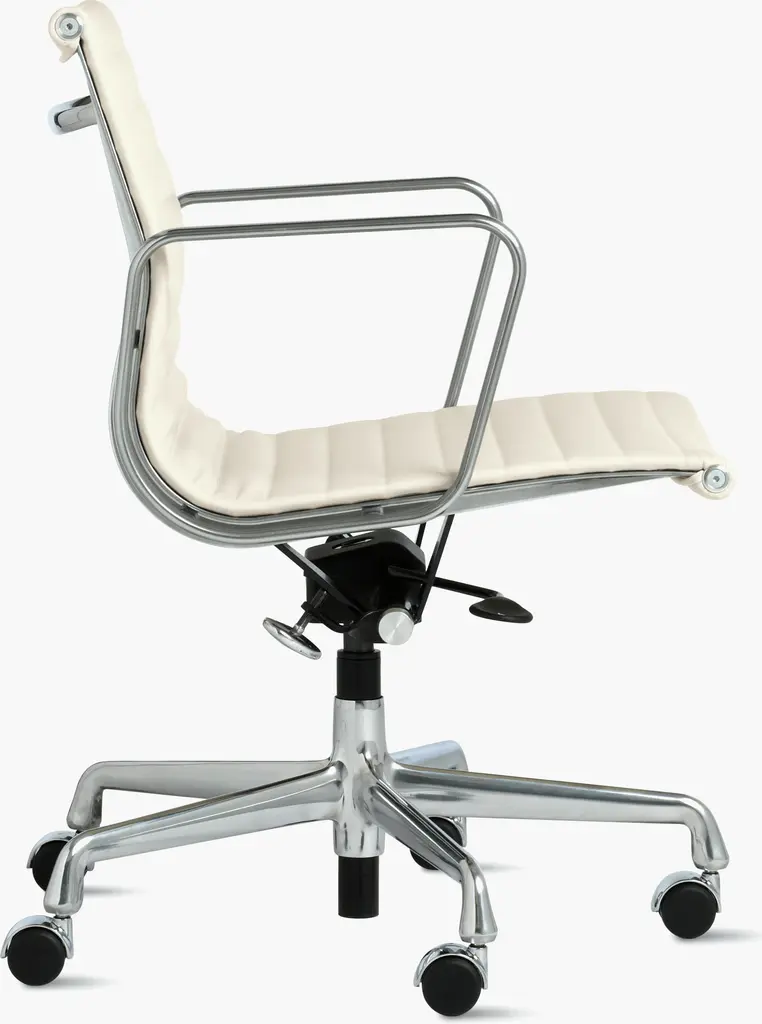 The Eames Aluminum Group Collection (1958) began as a special project for Eero Saarinen and Alexander Girard, who needed seating for a home they were designing for industrialist J. Irwin Miller in Columbus, Indiana. The pair asked the Eameses to design light, mobile leisure chairs. At the time, Charles and Ray were exploring ways to use aluminum, which had been strengthened, refined and made more affordable since WWII. So, they constructed a lightweight, die-cast aluminum frame and set a sling in it - a “sitting pocket," as they called it, which subtly conformed to the body's shape. This completely new type of seat marked a departure from the idea of a chair as solid shell. Constructed of 61% recycled materials, the Eames Aluminum Group Chair is backed by a 12-year manufacturer's warranty. It's also 88% recyclable at the end of its useful life. This is an authentic Eames chair by Herman Miller.
