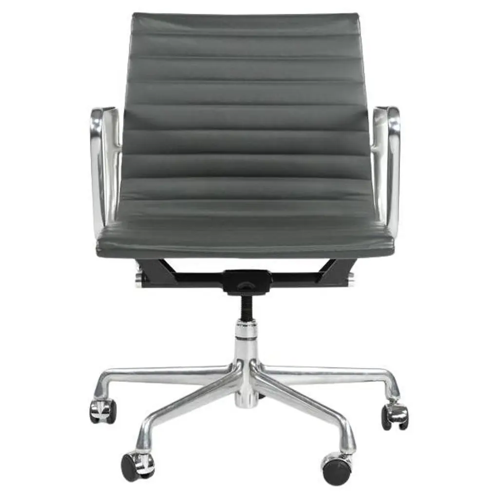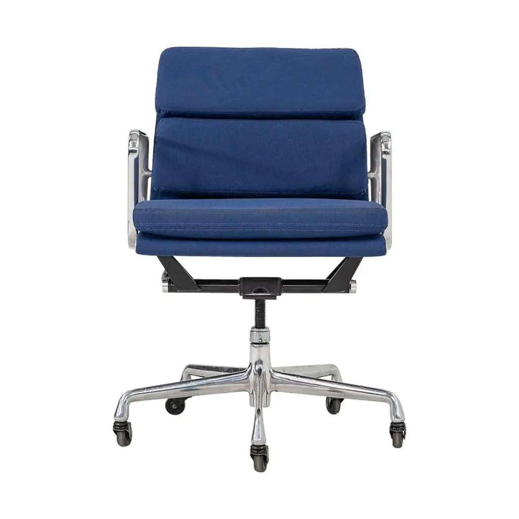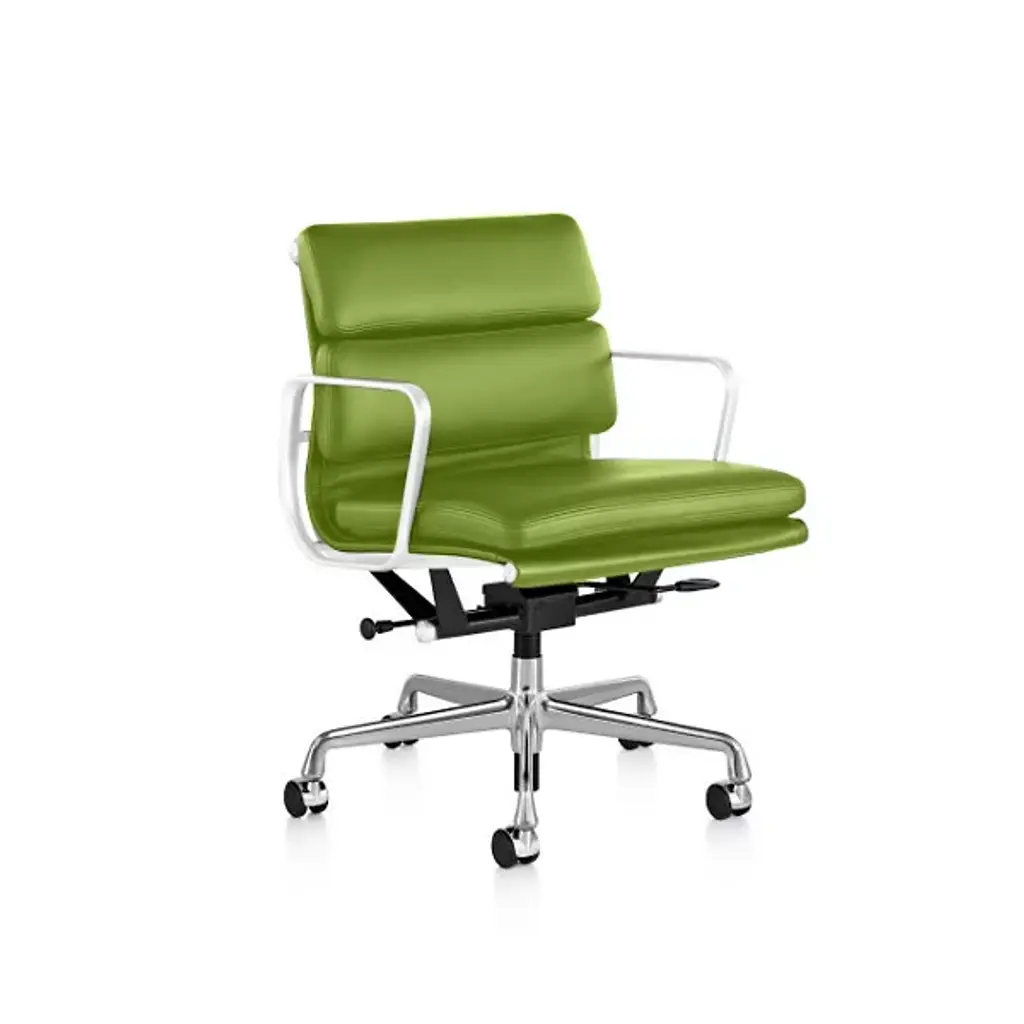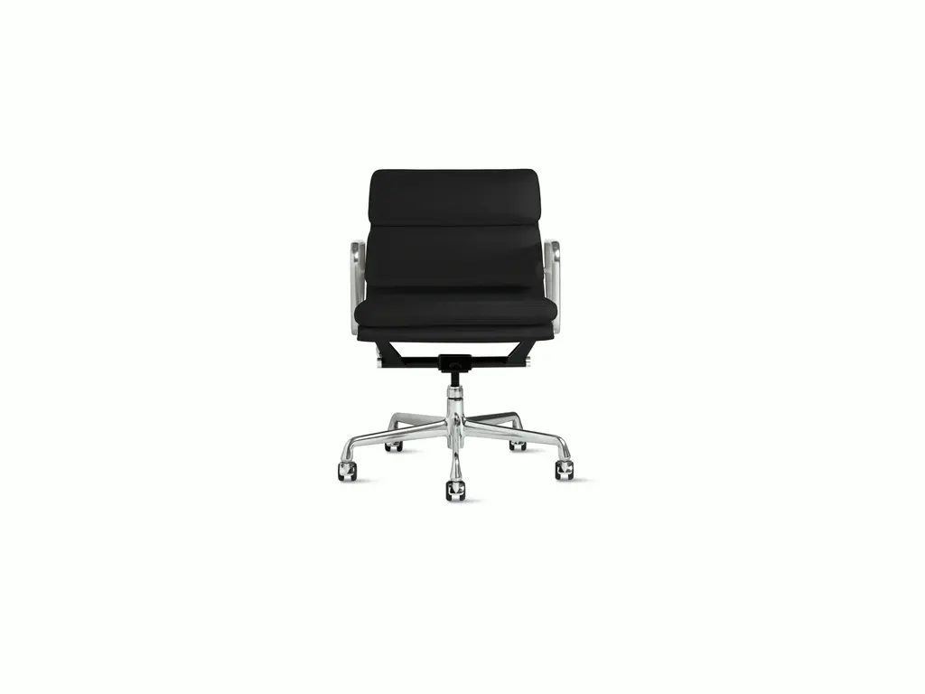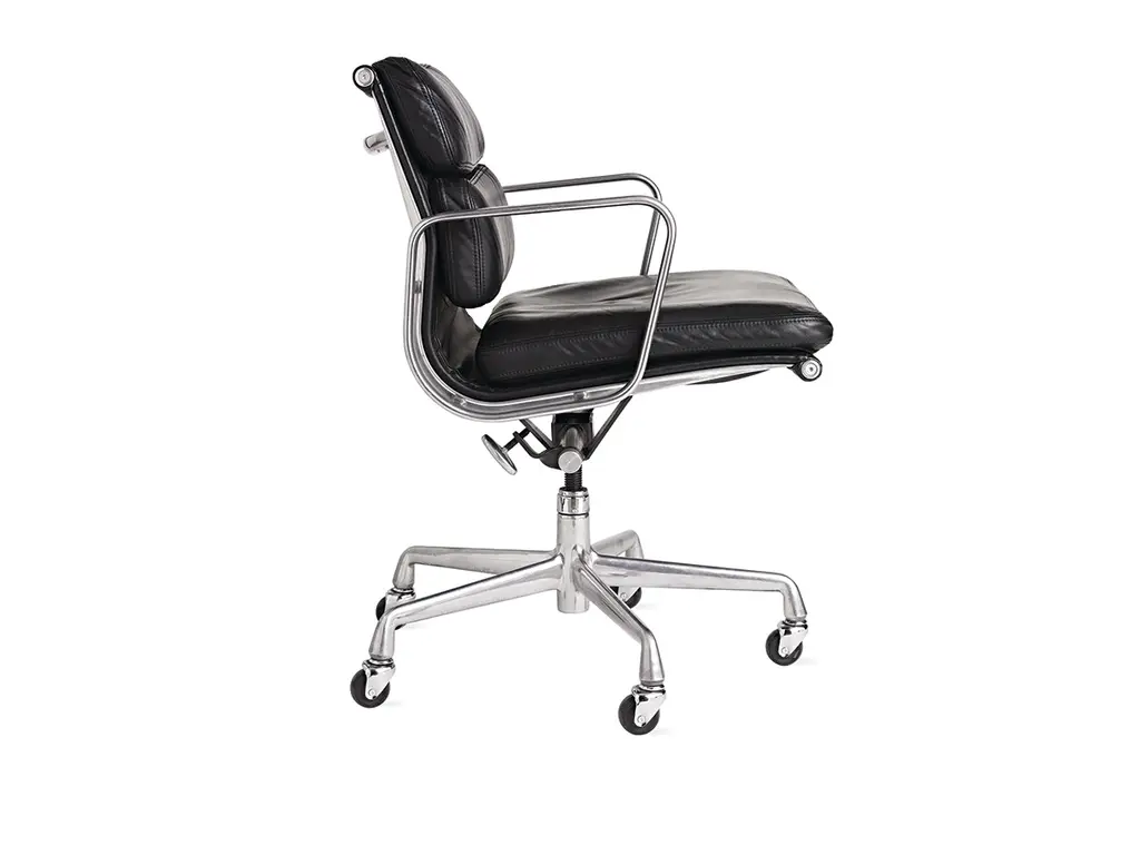 One look at the Eames soft pad office chair, and you'll see echoes of its predecessor, the iconic Aluminum Group Collection. A contoured aluminum frame bolsters plush, 2"-thick cushions that you'll sink right into and never want to leave. The height-adjustable frame on this soft cushion office chair has options for pneumatic or manual lift.