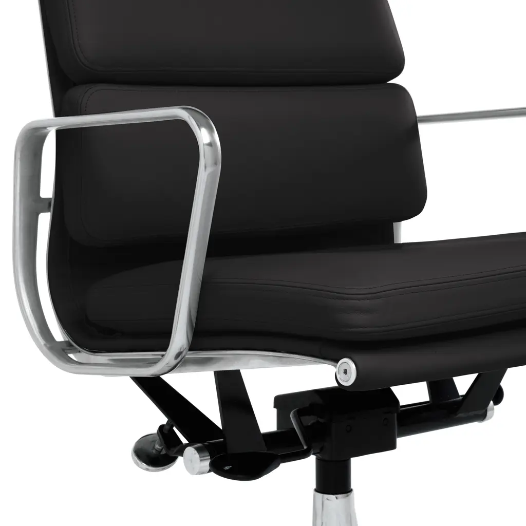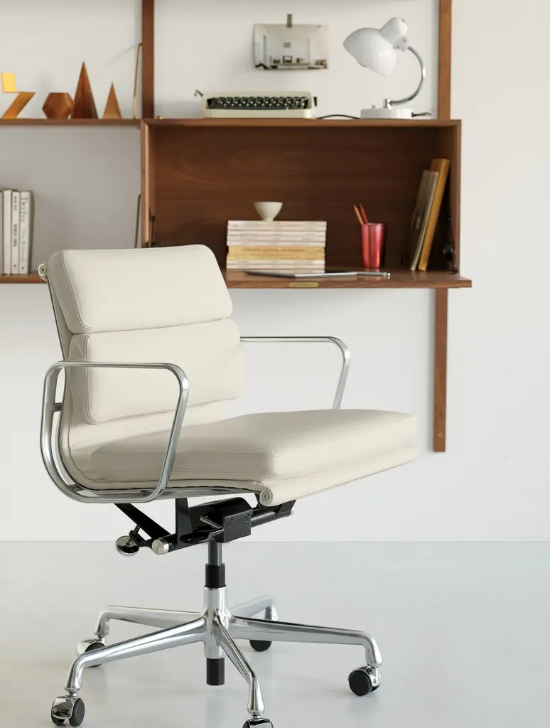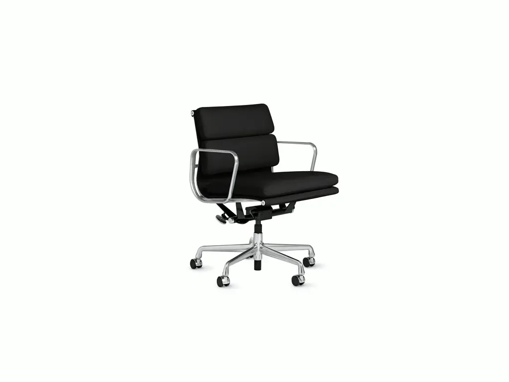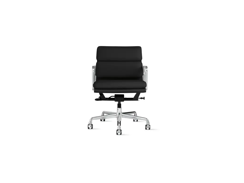 One look at the Eames soft pad office chair, and you'll see echoes of its predecessor, the iconic Aluminum Group Collection. A contoured aluminum frame bolsters plush, 2"-thick cushions that you'll sink right into and never want to leave. The height-adjustable frame on this soft cushion office chair has options for pneumatic or manual lift.