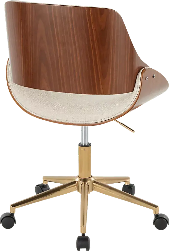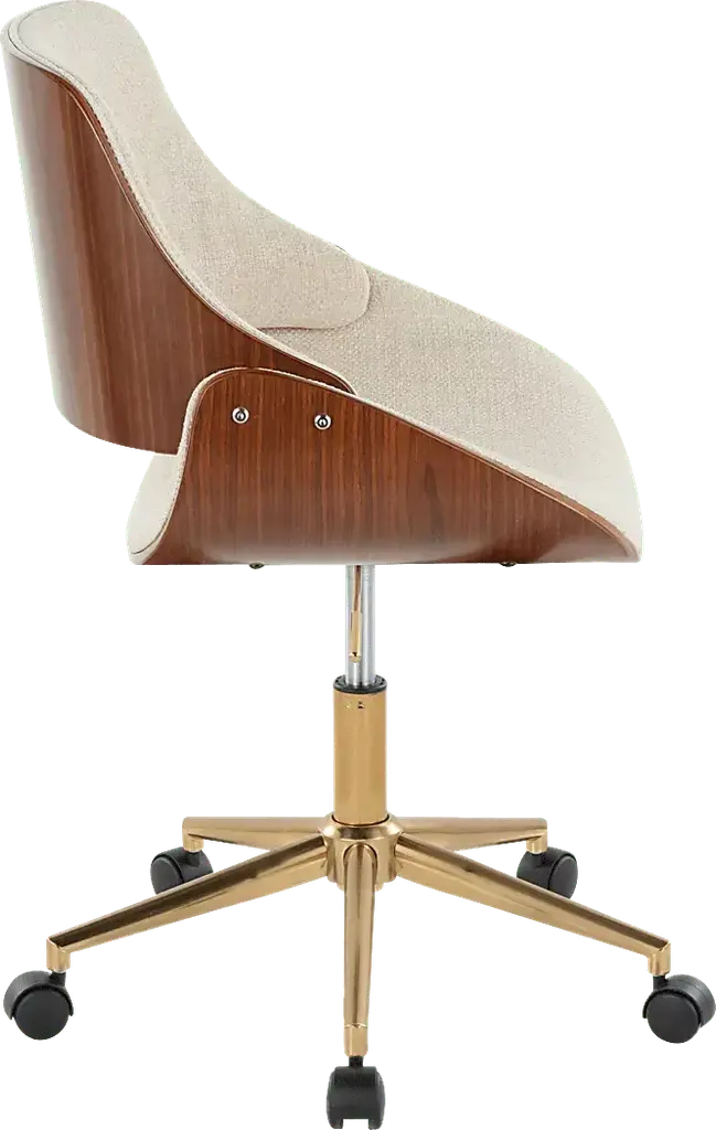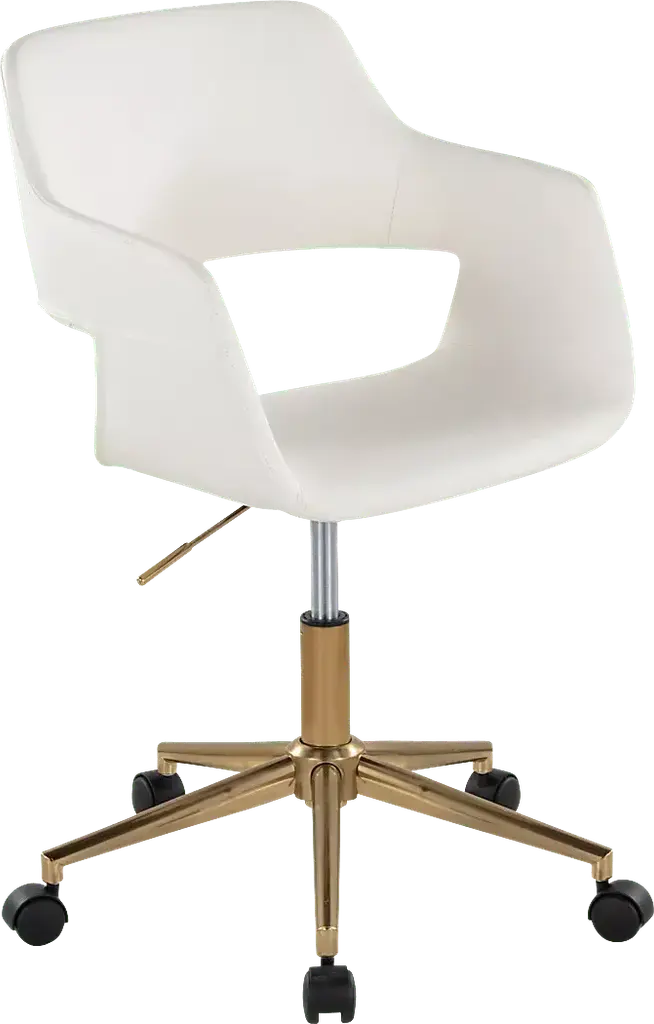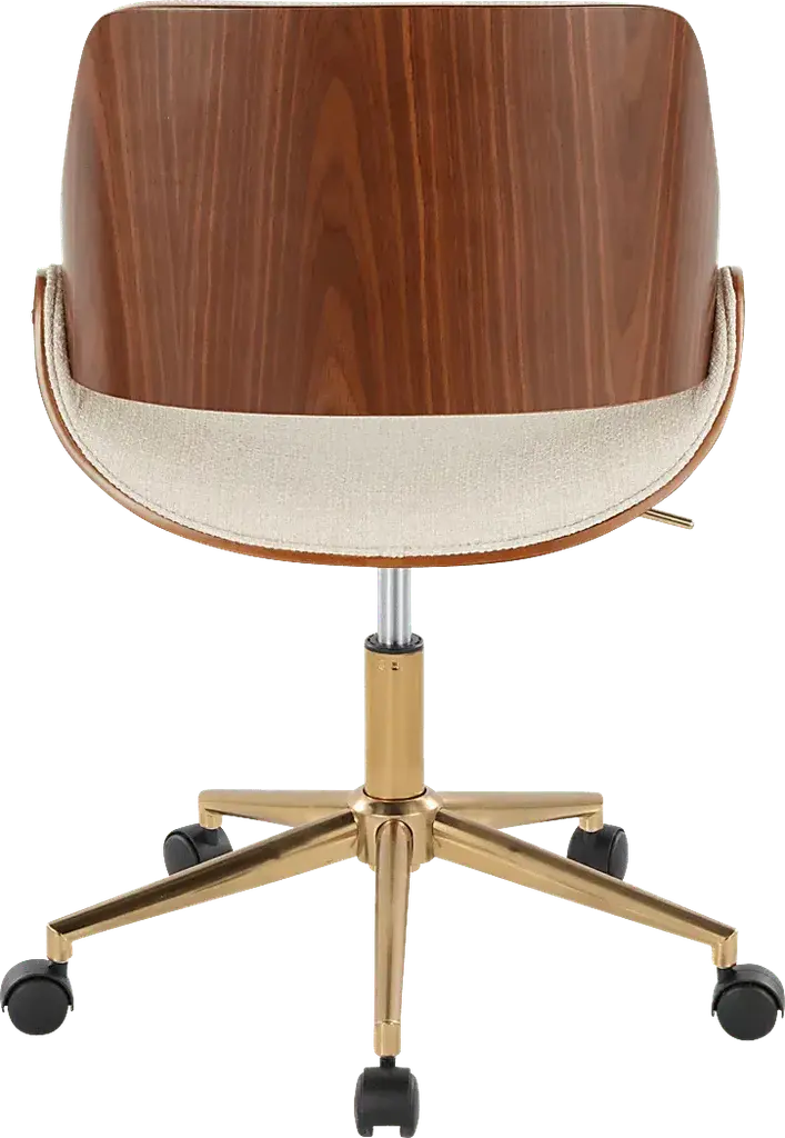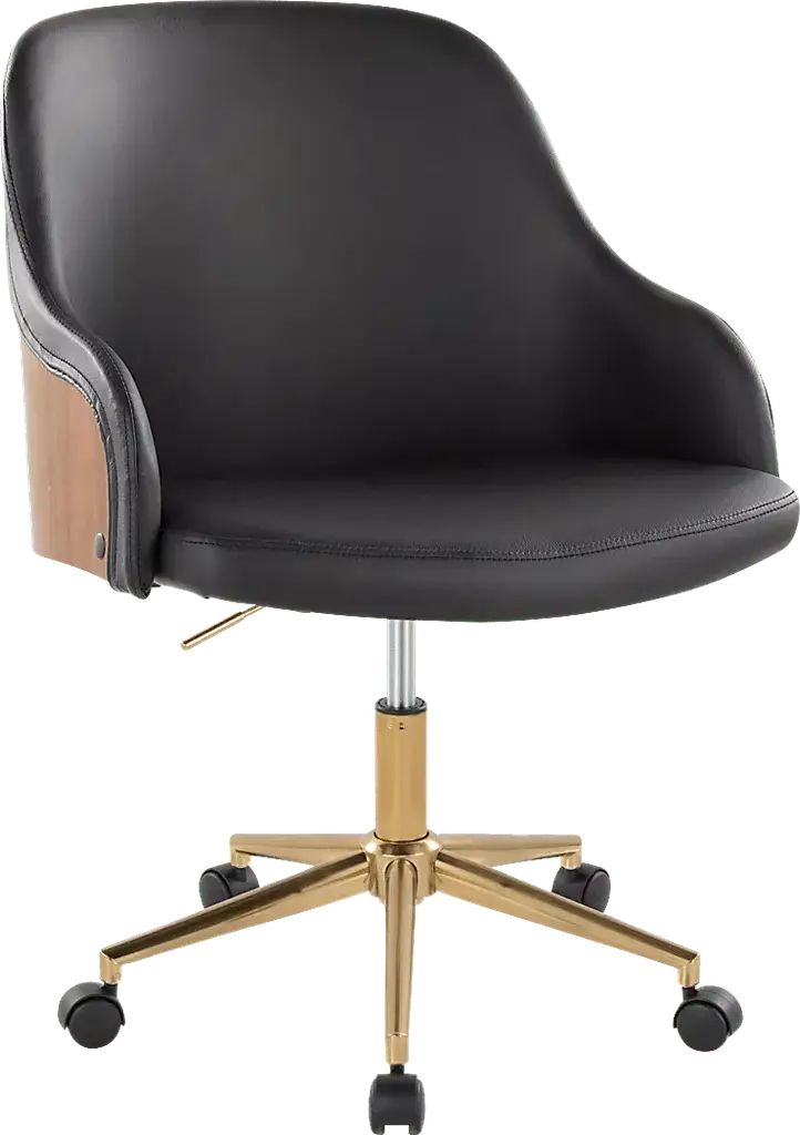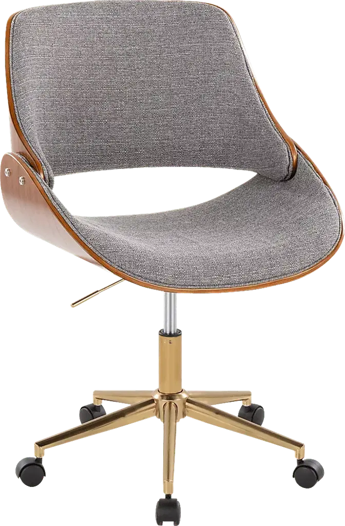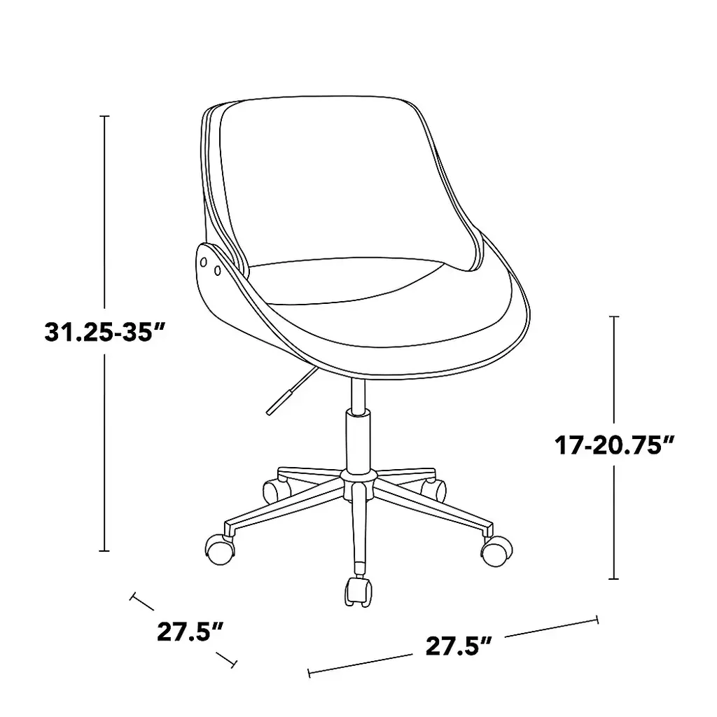 The wide welcoming seat of the Eilyn desk chair beckons for one to sit and unwind for a while. A scooped, contoured seat and curved back add to its modern yet chic design. With an adjustable swivel base and stylish upholstery, this is an ideal selection for kitchen seating or a home bar. Customer assembly required.